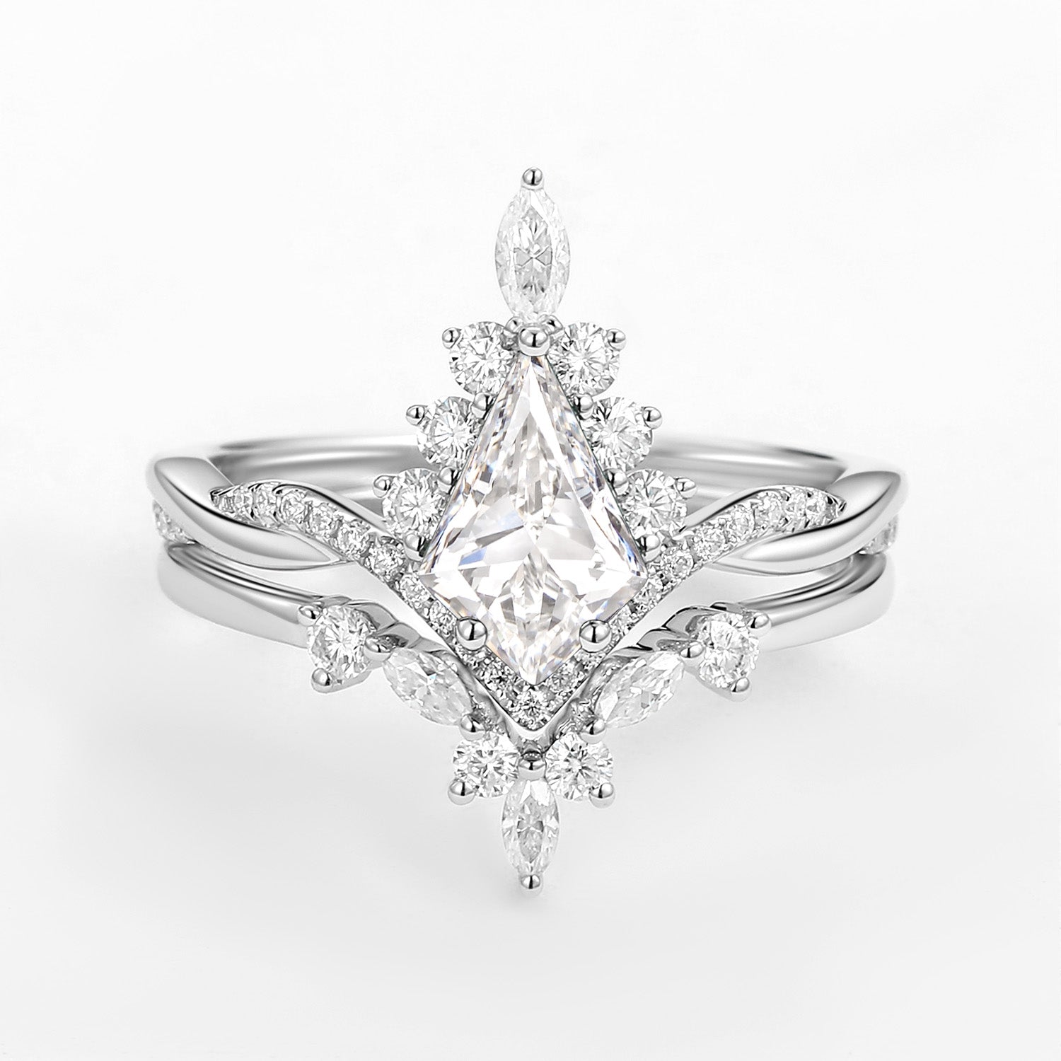 Unique Moissanite Kite Shape Engagement Ring Sets 2pcs