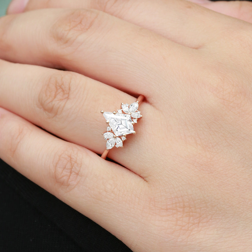Unique Rose Gold Moissanite Kite Cut Engagement Ring