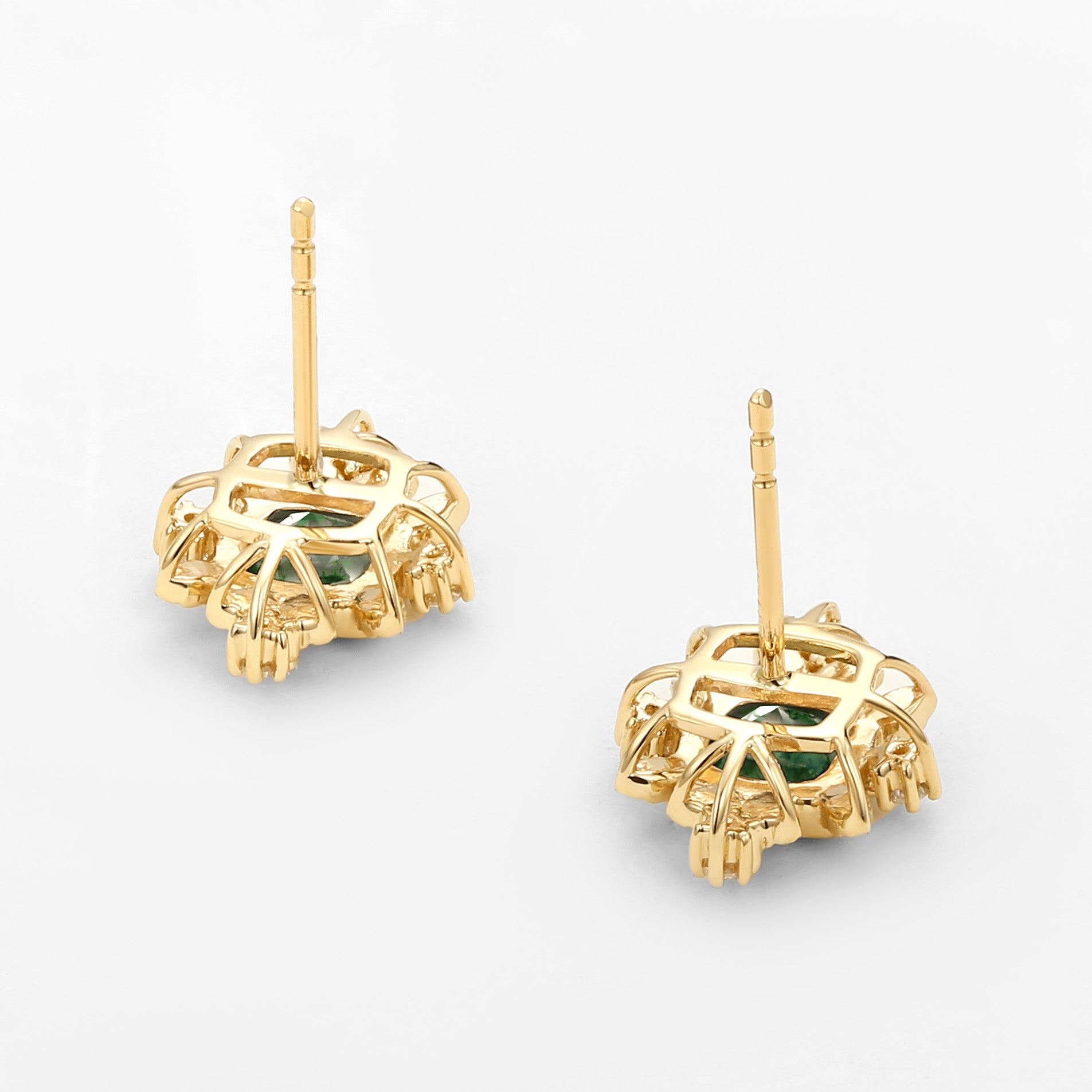 Felicegals Cushion Cut Moss Agate & Moissanite Leafy Studs Solid 9K Gold Solid 14K Gold Stud Earrings Engagement Wedding Bridal Jewelry