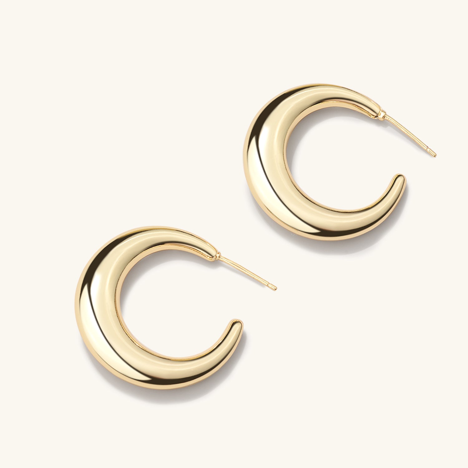 Felicegals Moon Luna Hoop Earrings Vintage Inspired Jewelry Sterling Silver Gold Vermeil Solid Gold