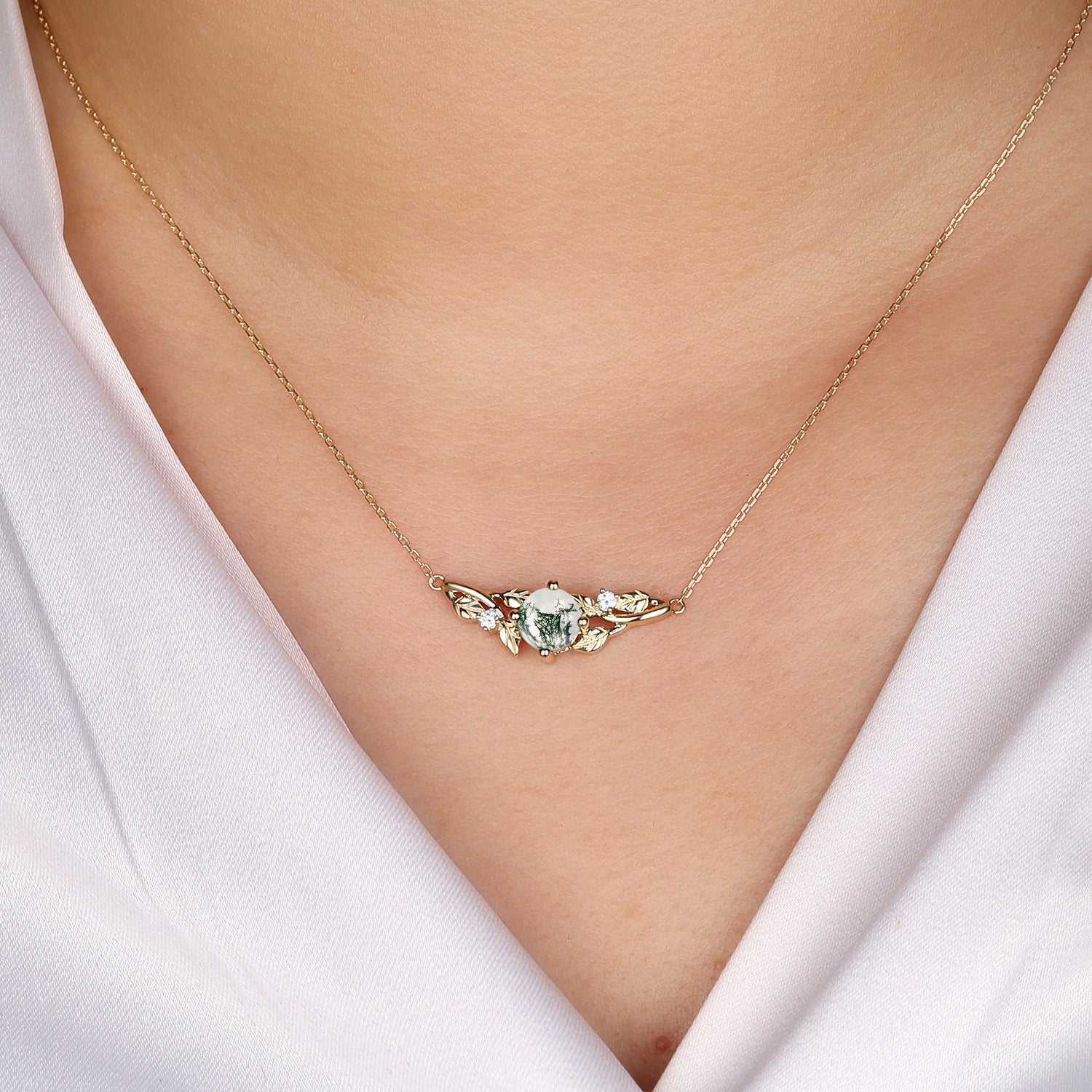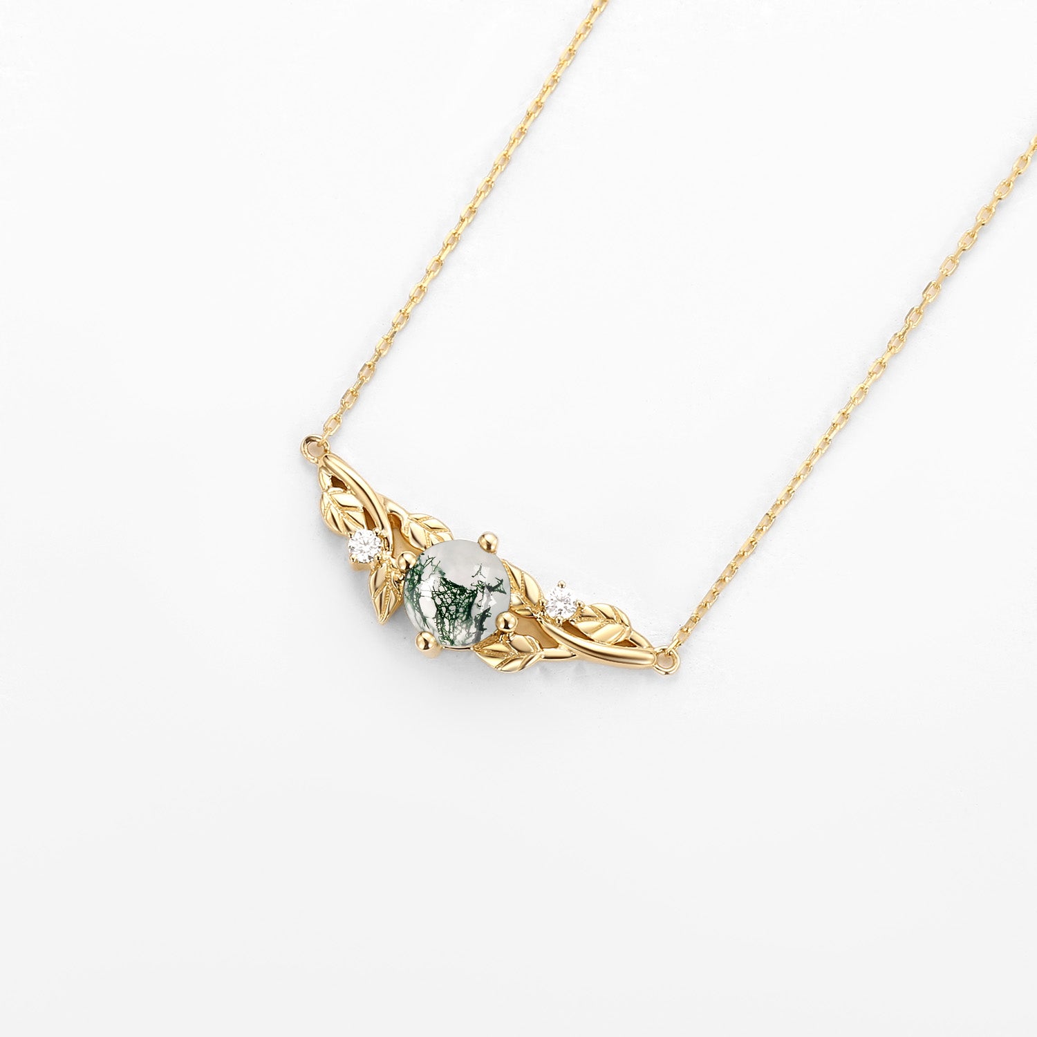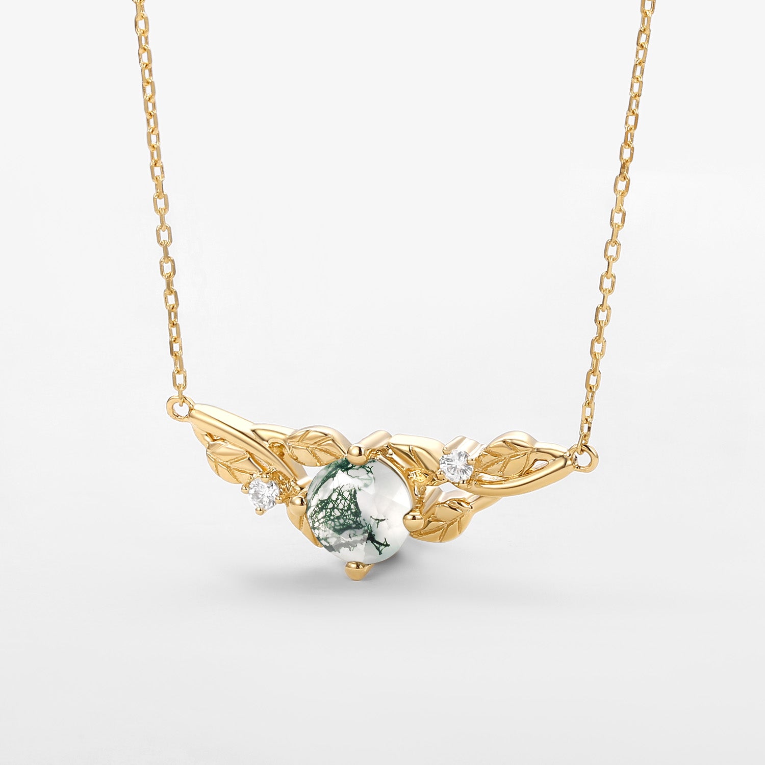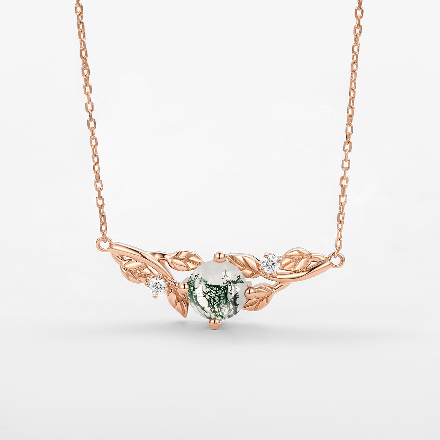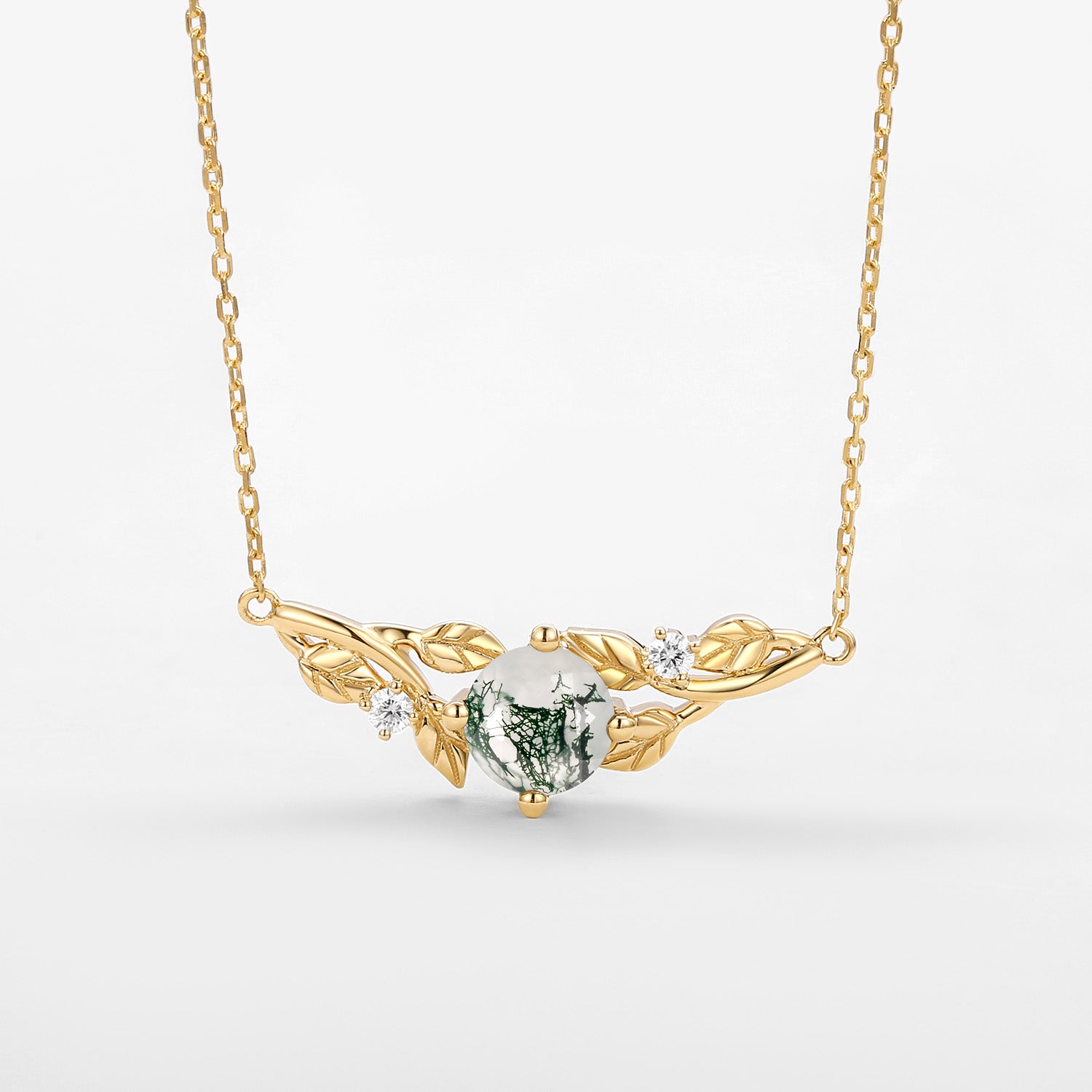 Round Cut Moss Agate Cute Leafy Necklace - Gardenia