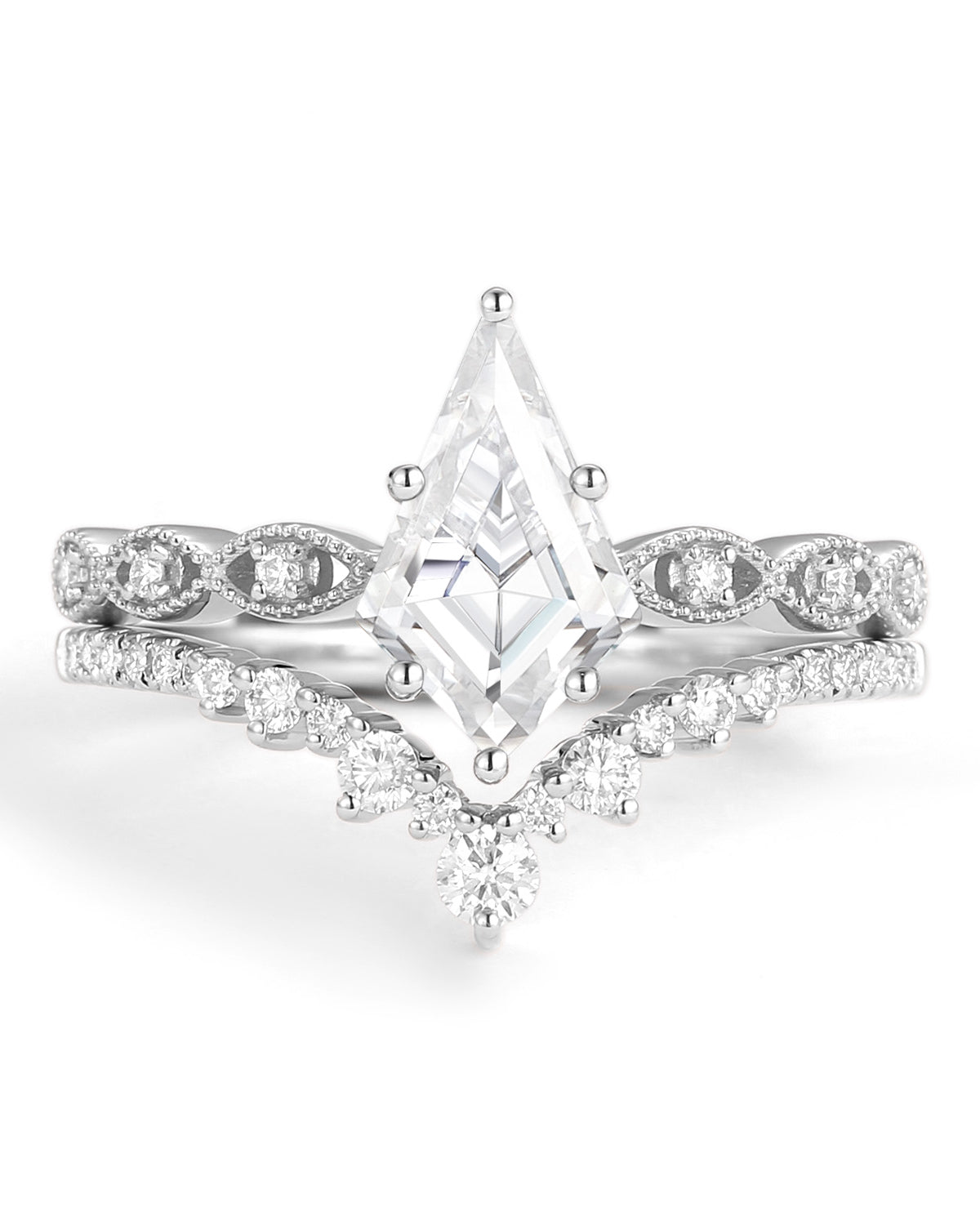 Kite cut engagement ring is a unique and captivating choice for those seeking a ring that stands out. The kite cut is a unique ring shape that is characterized by its elongated, kite-like appearance, with a larger surface area that maximizes the stone's brilliance and fire.