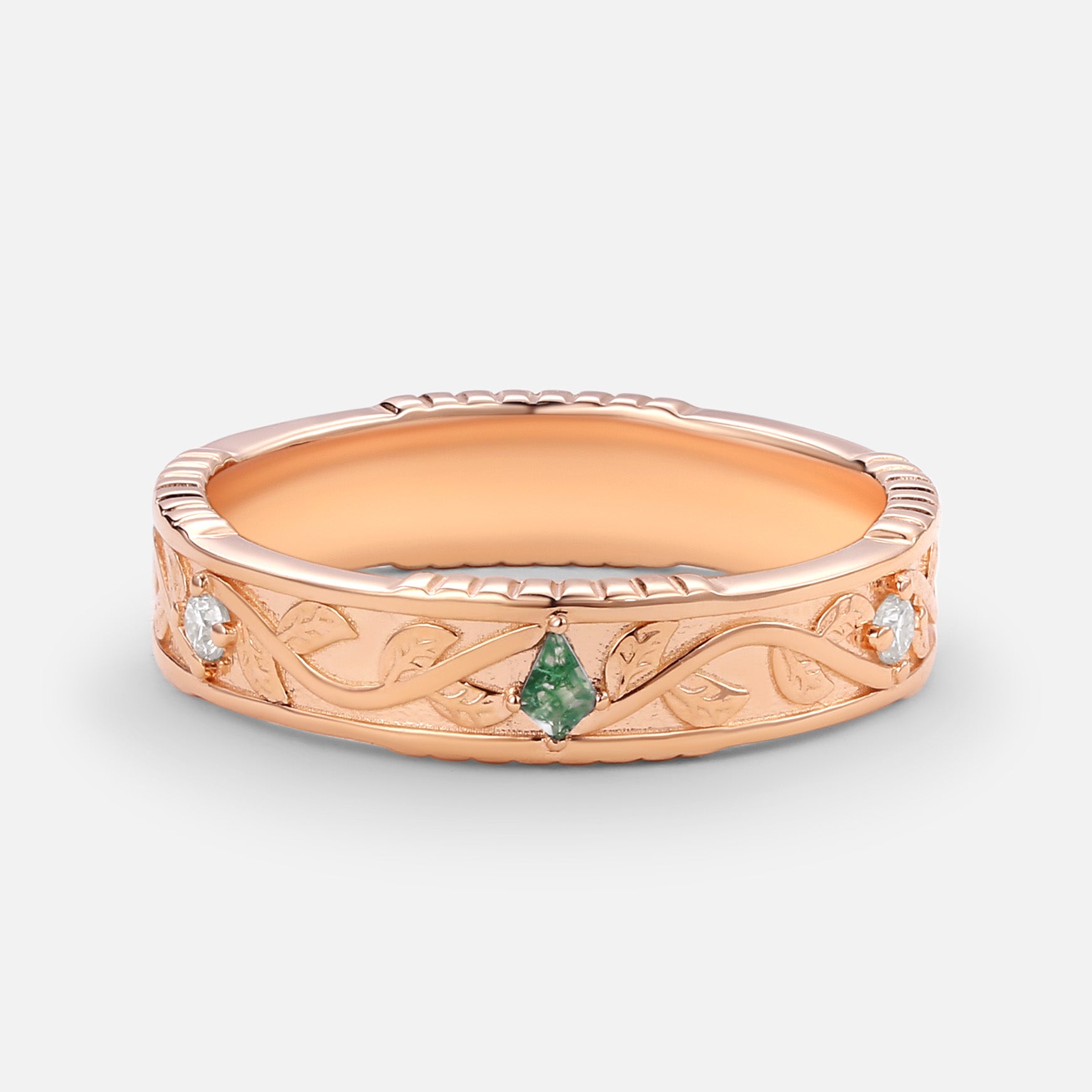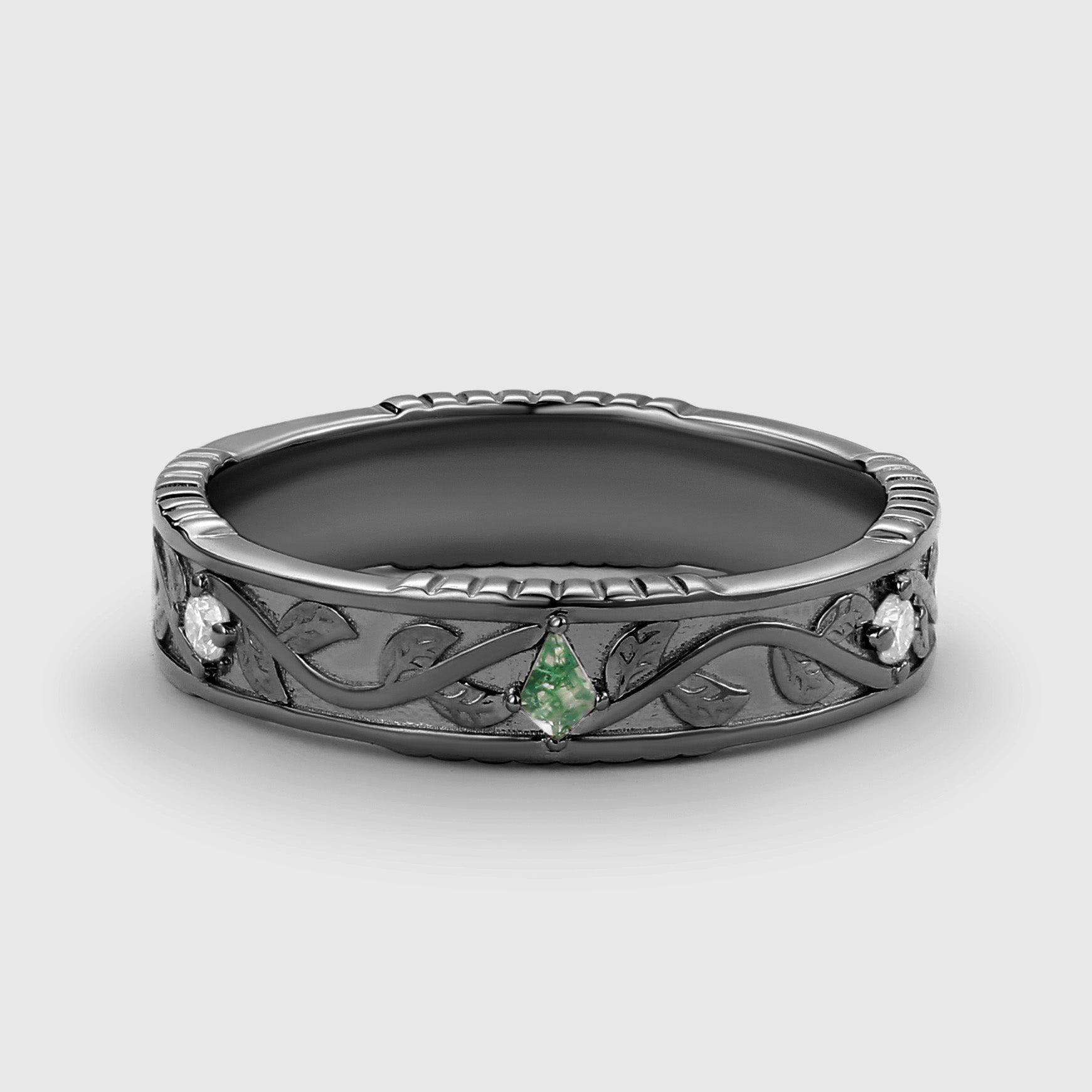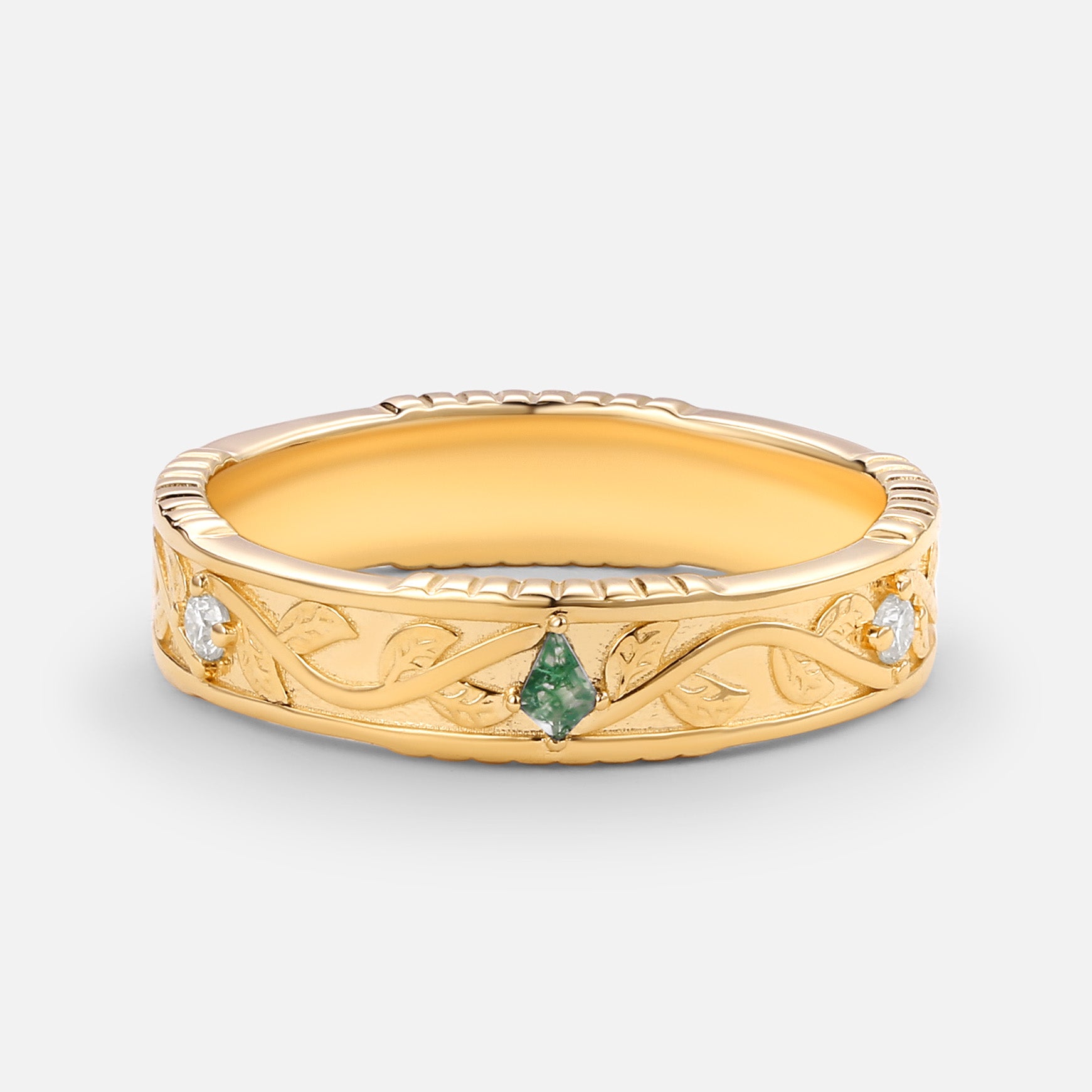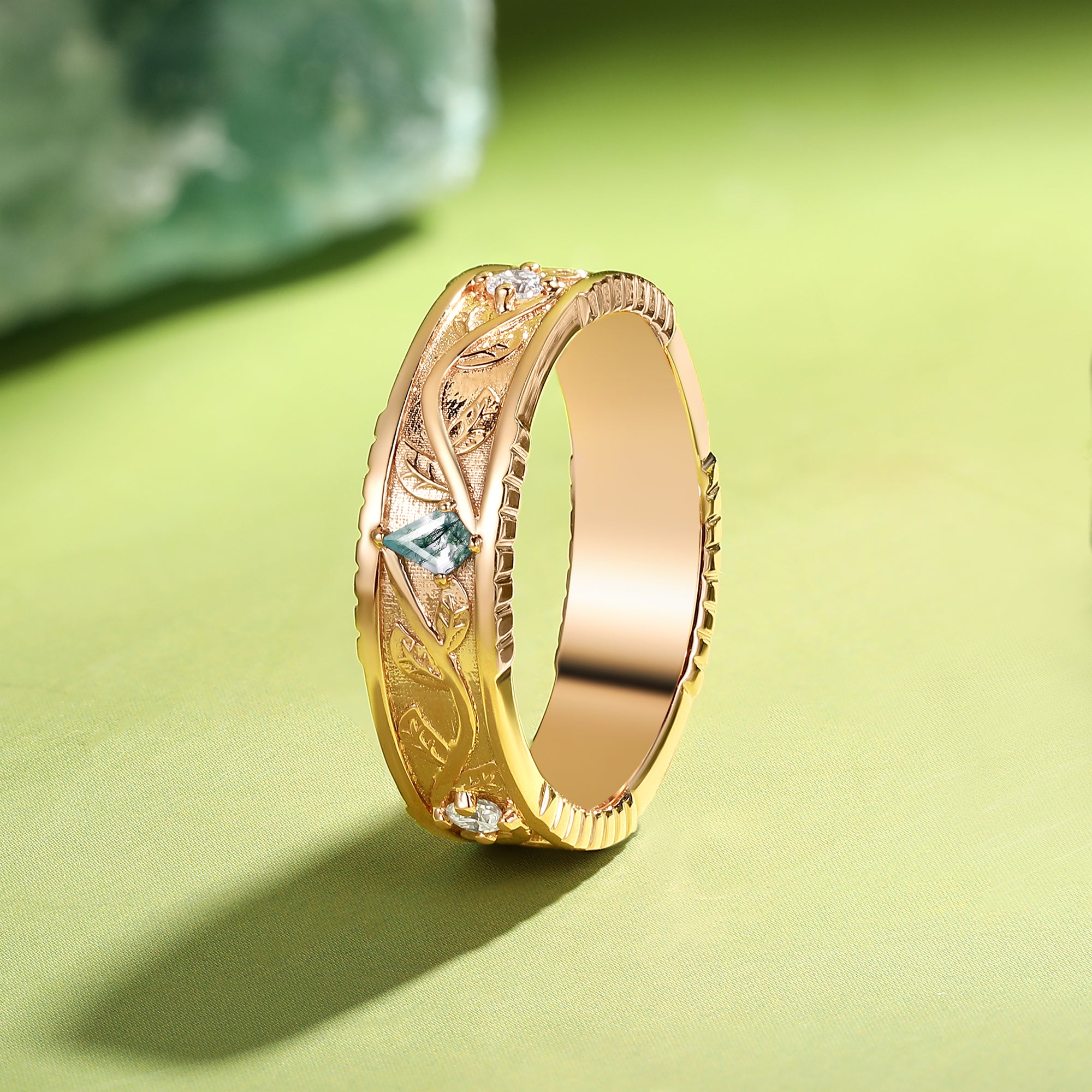 4.5mm Kite Moss Agate Leafy Men's Wedding Band