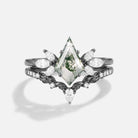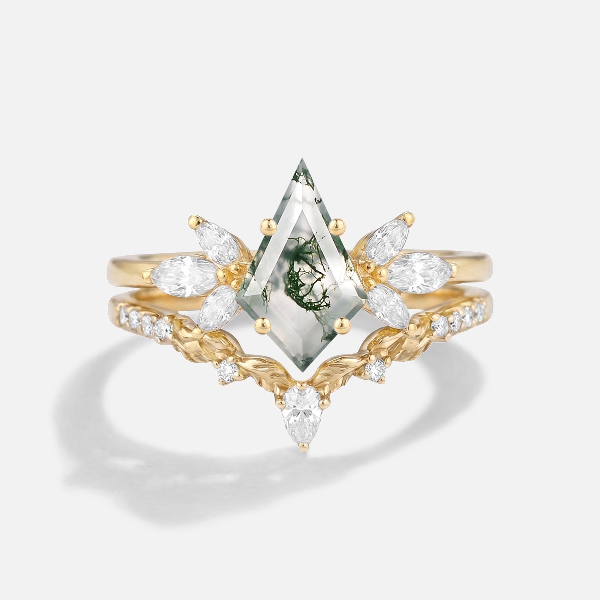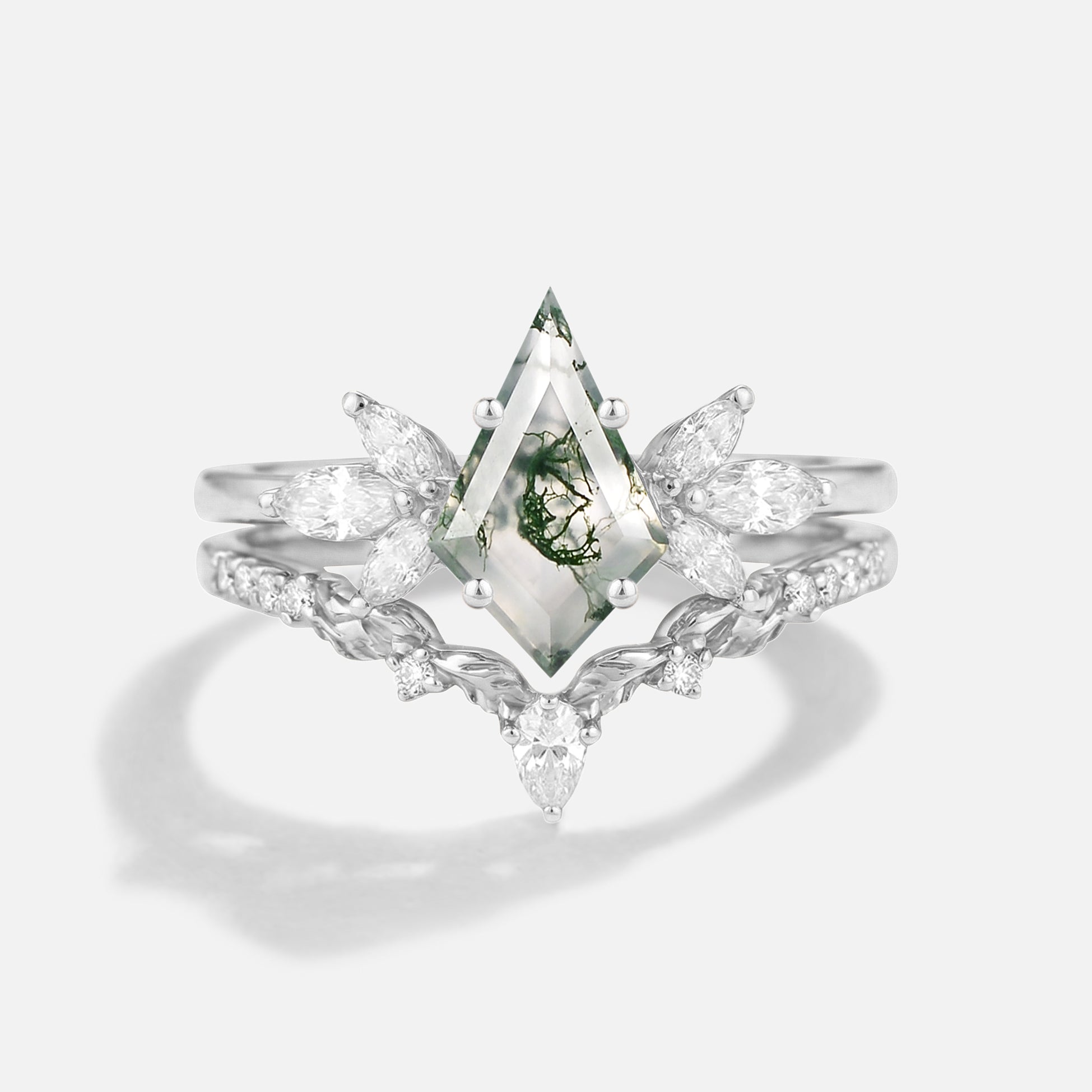 Kite Cut Moss Agate Fairy Engagement Ring Set 2pcs - Fiora