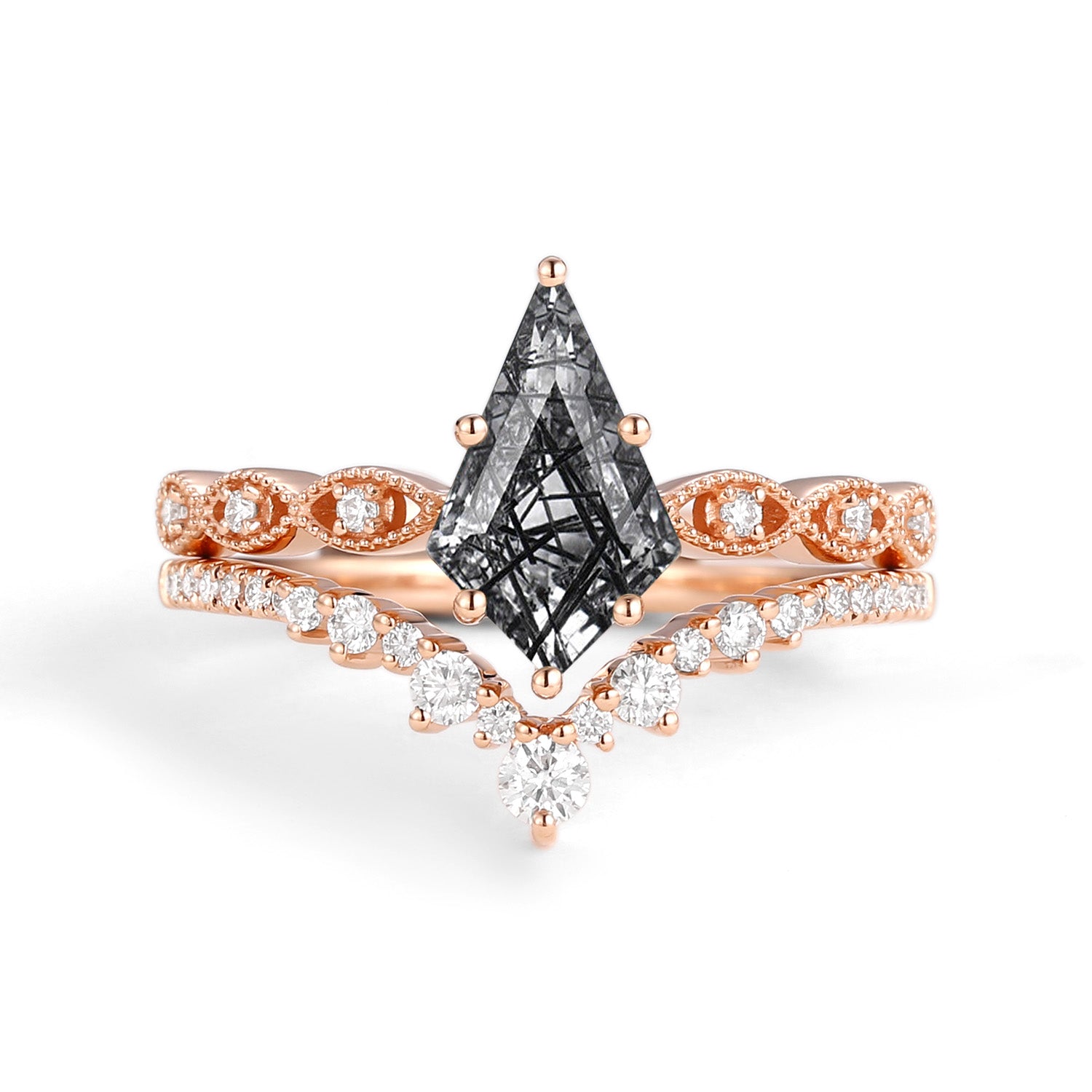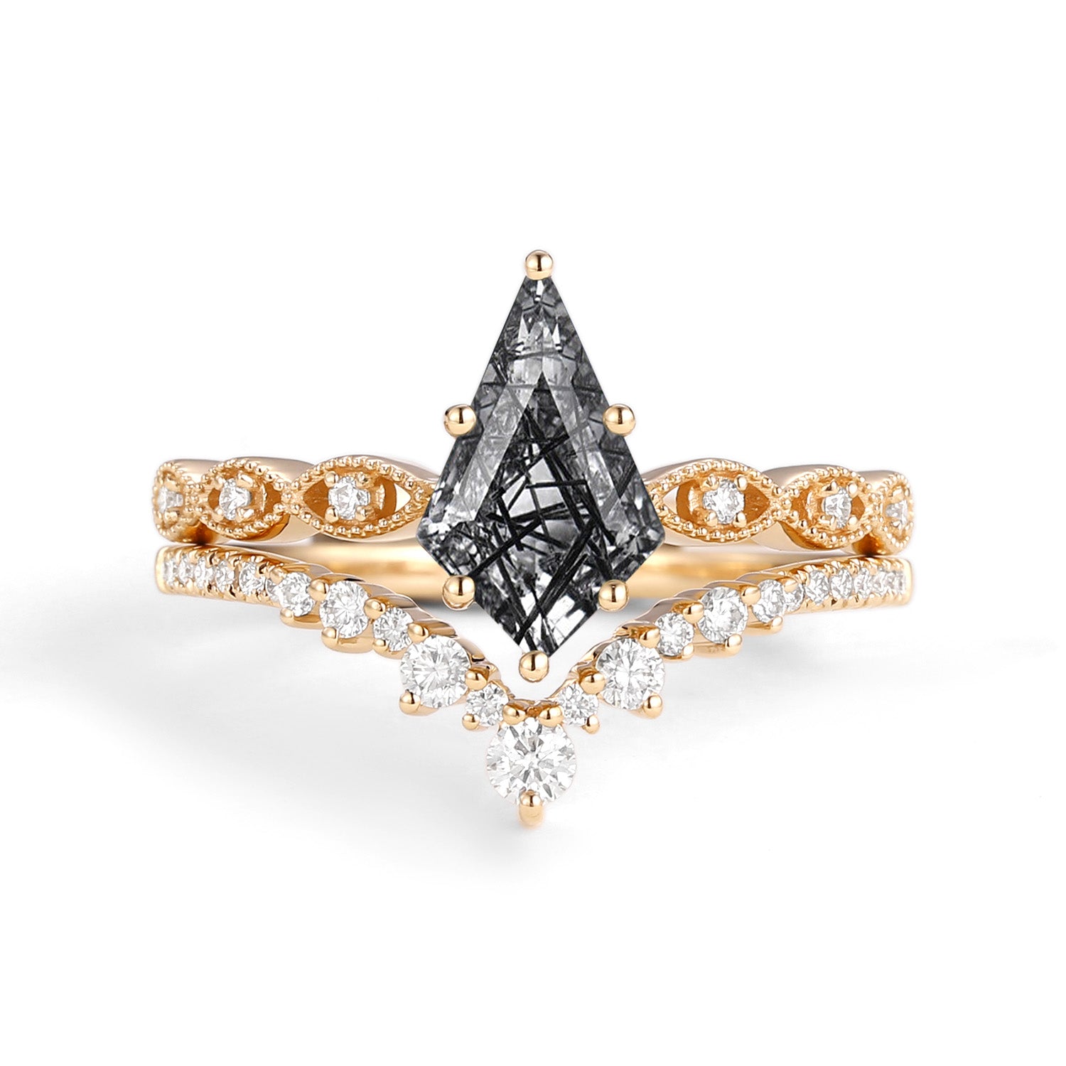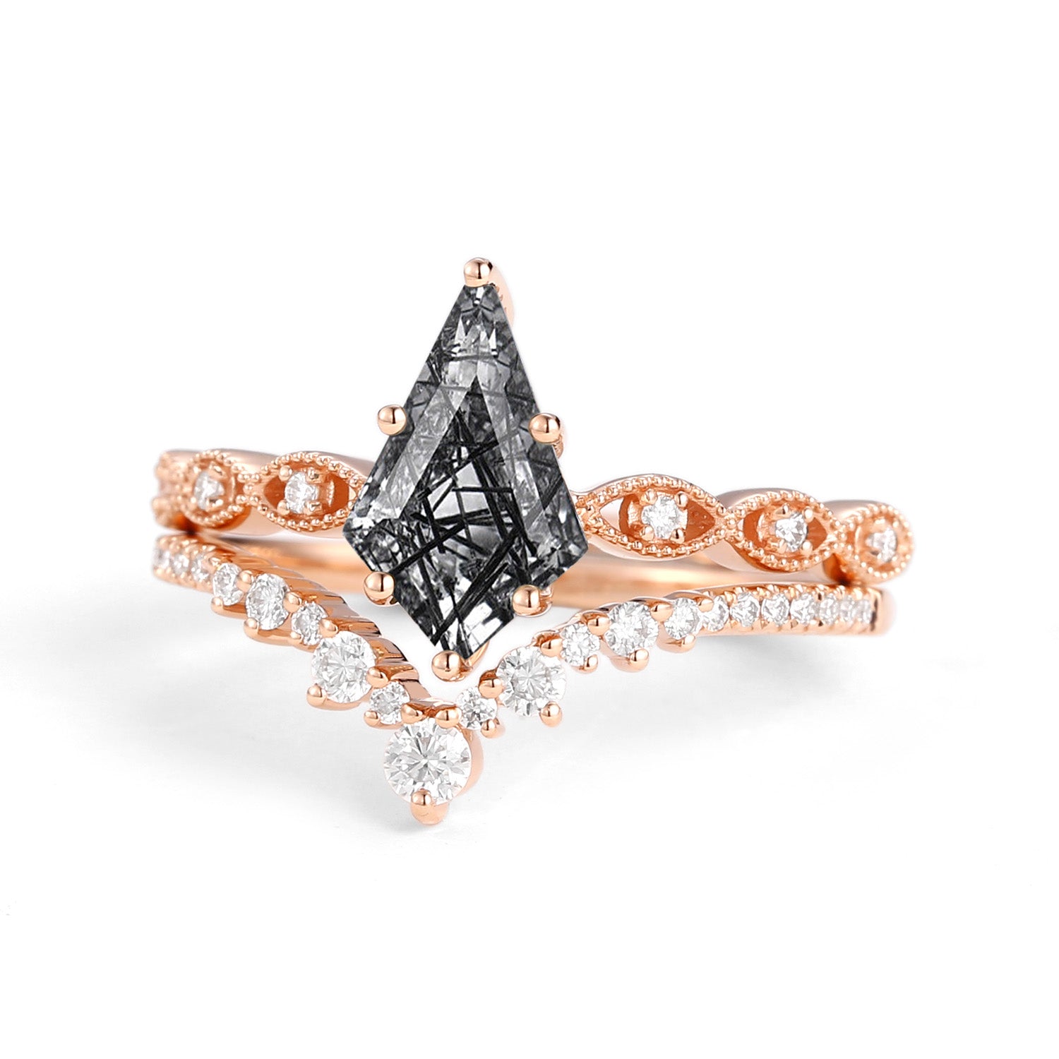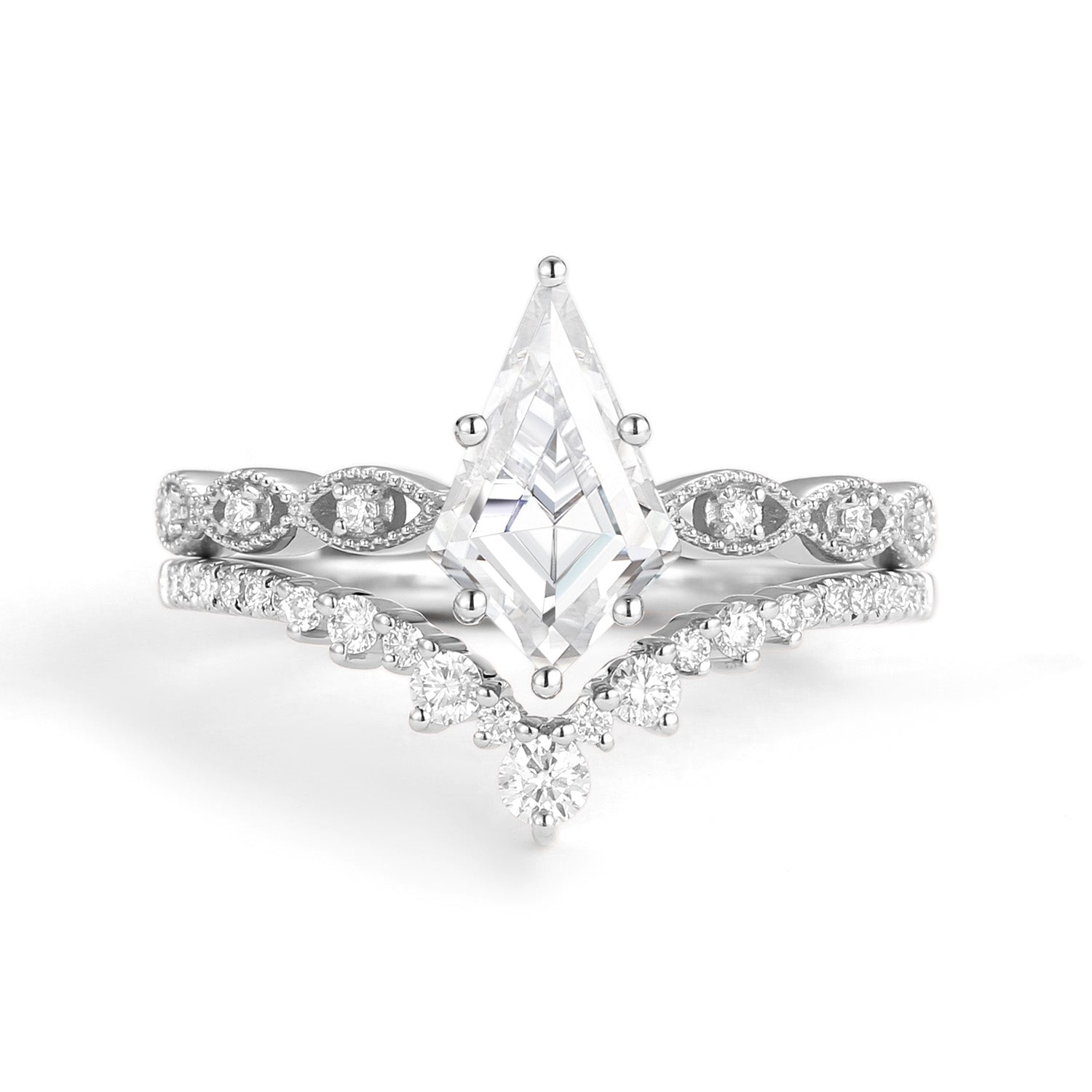 2.0ct Vintage Kite Cut Moss Agate Engagement Ring Set 2pcs - Winona