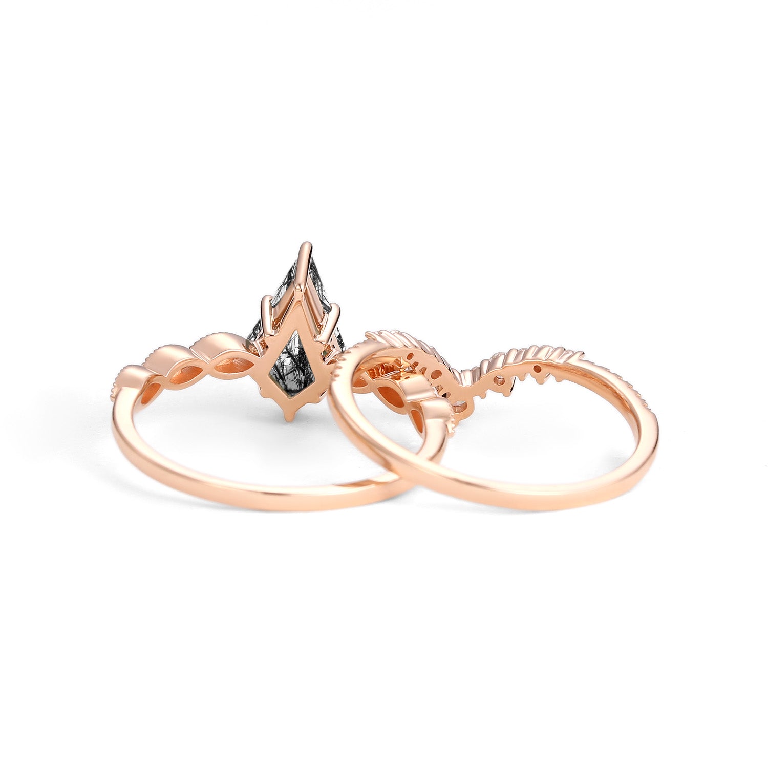 - 14k solid rose gold engagement ring set