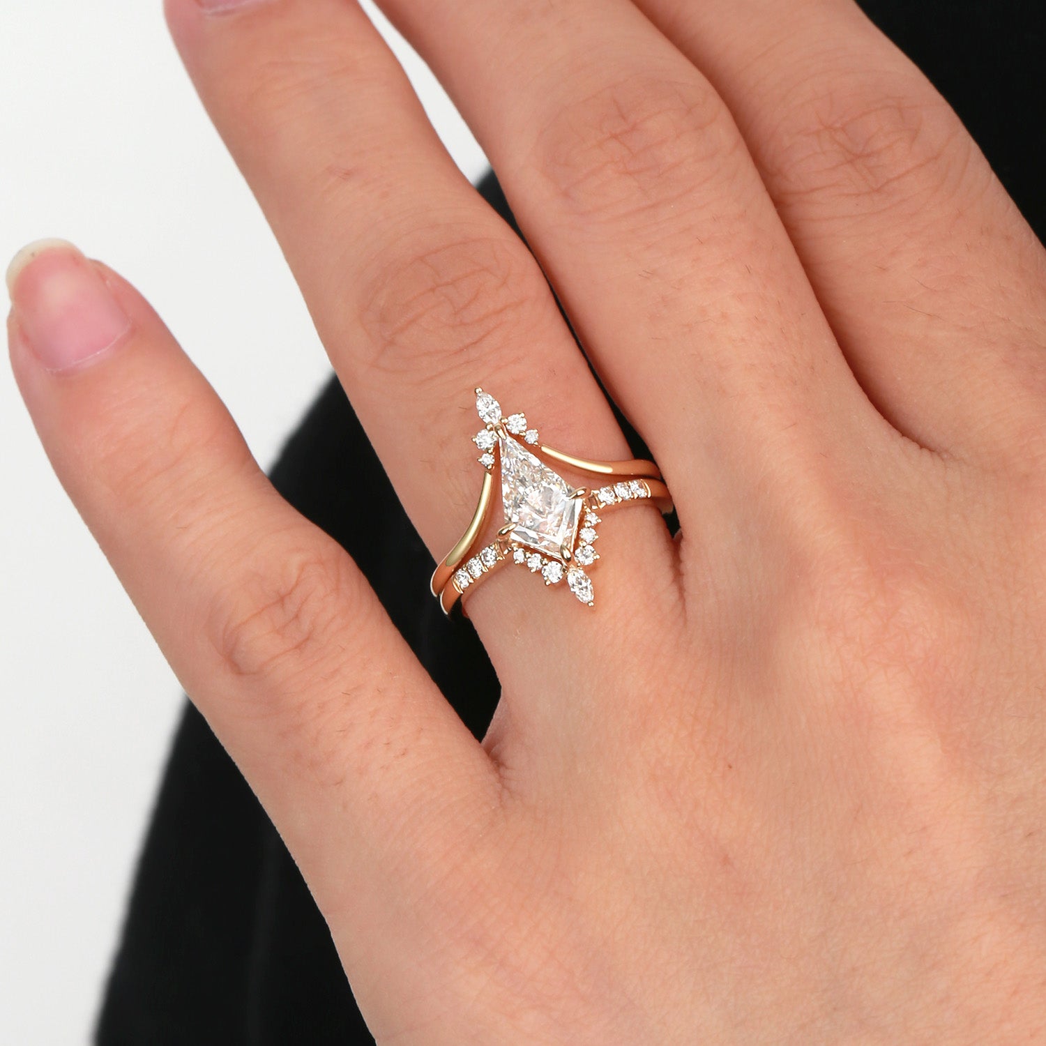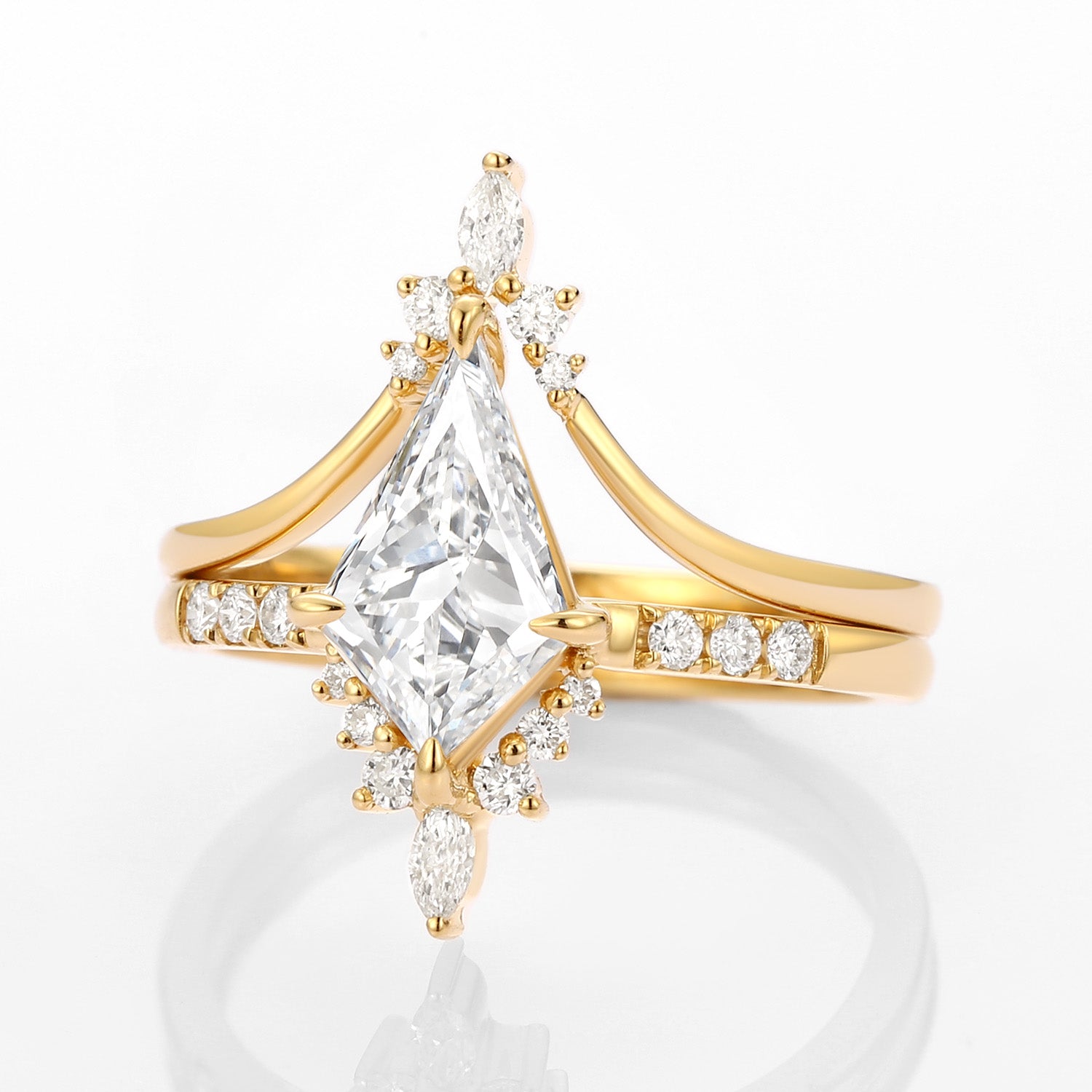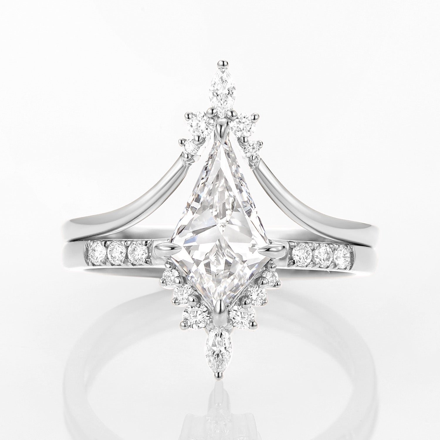1.0ct Kite Cut Lab Grown Diamond Engagement Ring Set 2pcs - Starla