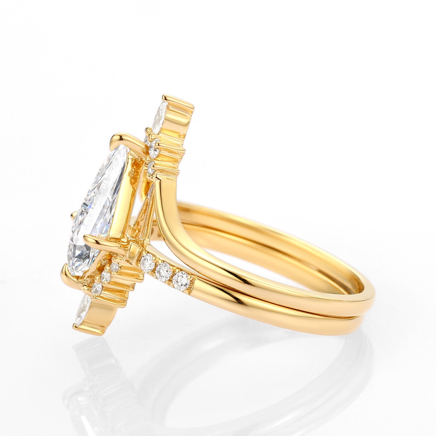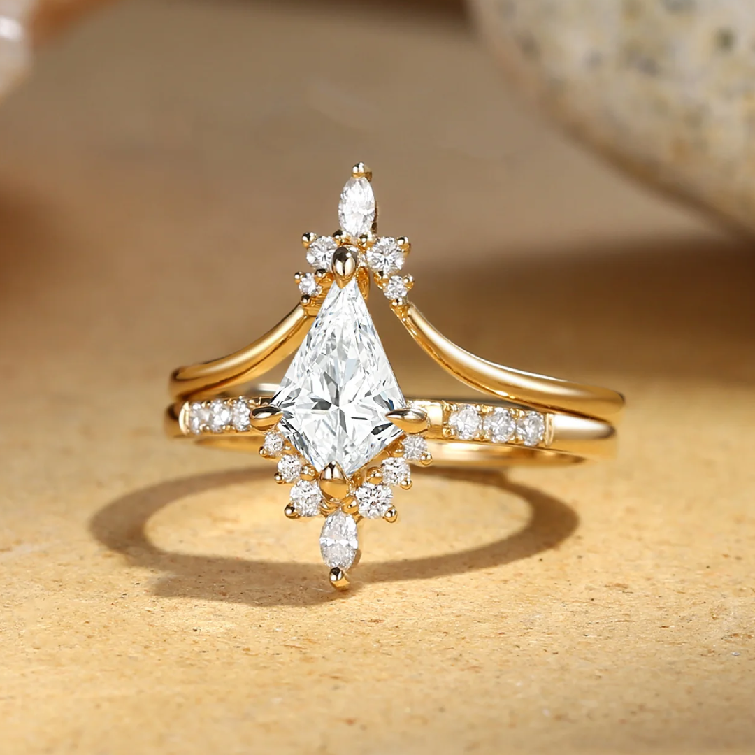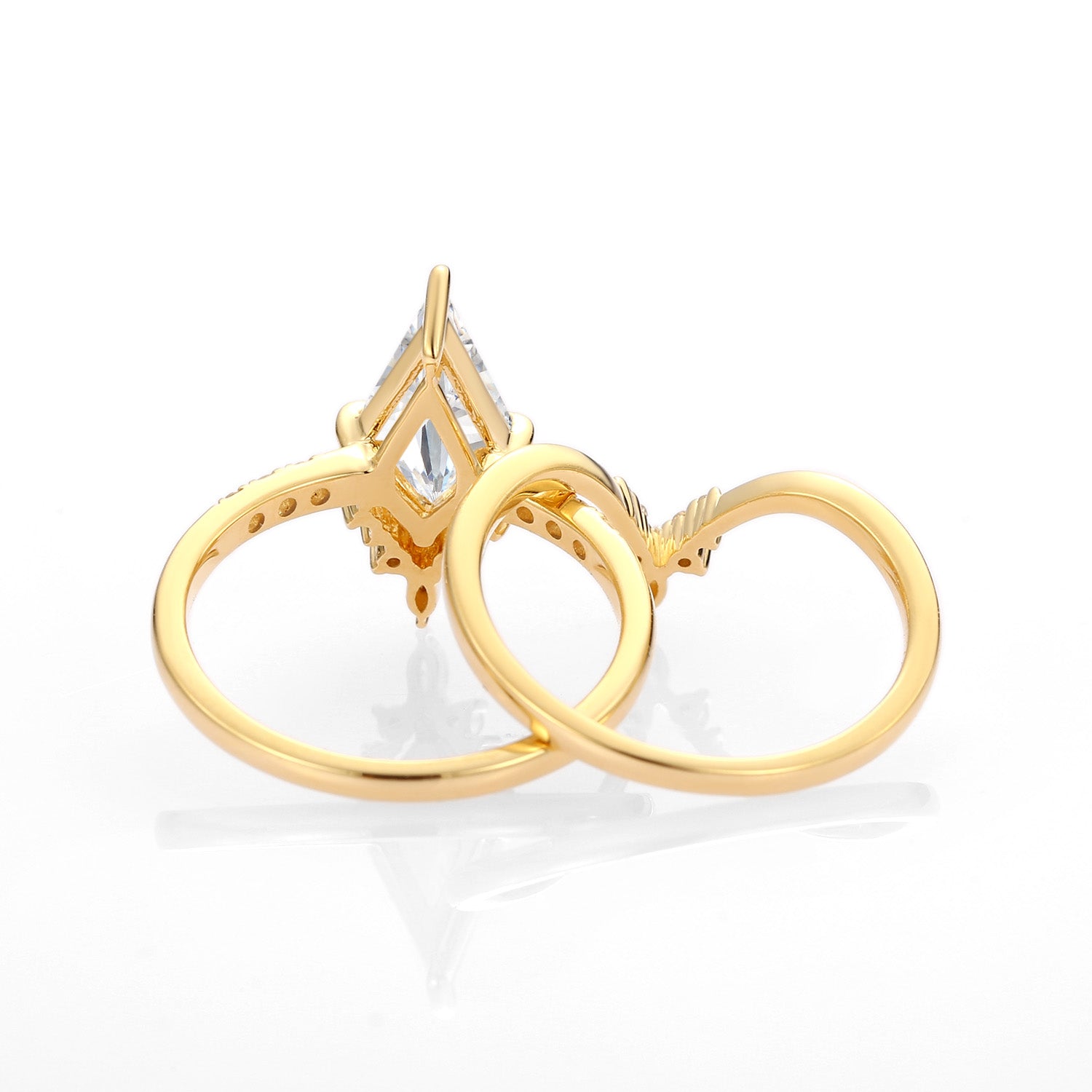 1.0ct Kite Cut Lab Grown Diamond Engagement Ring Set 2pcs - Starla