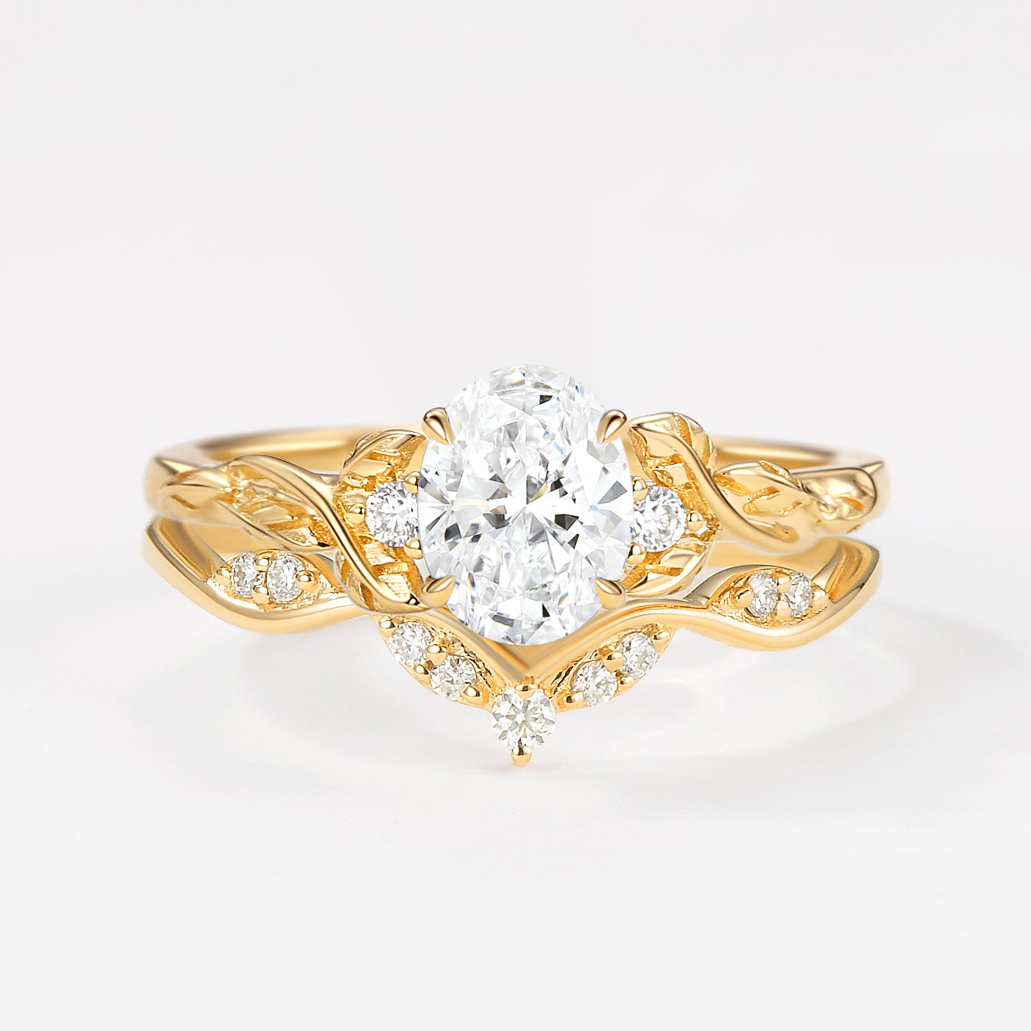 Oval Shaped Lab Grown Diamond Leafy Engagement Ring Set 2pcs