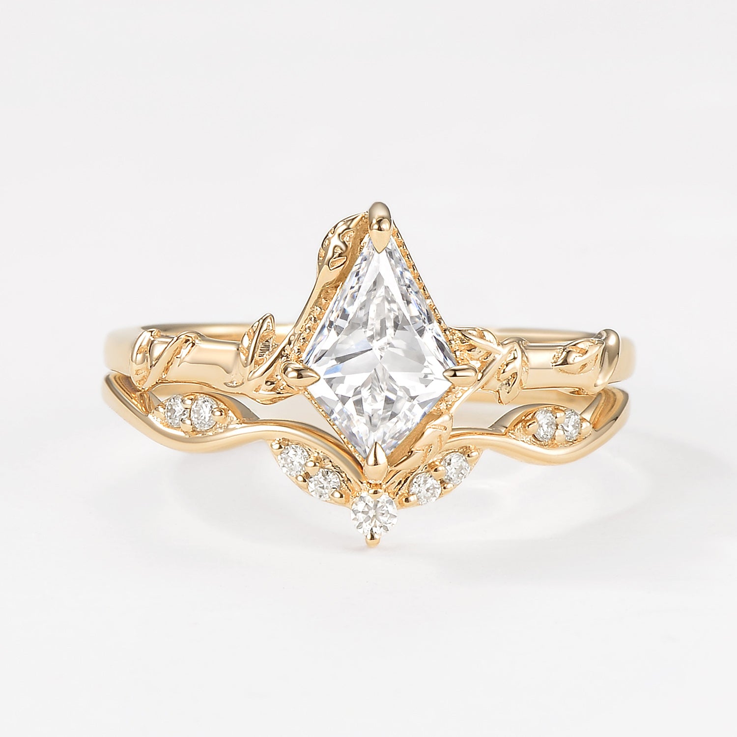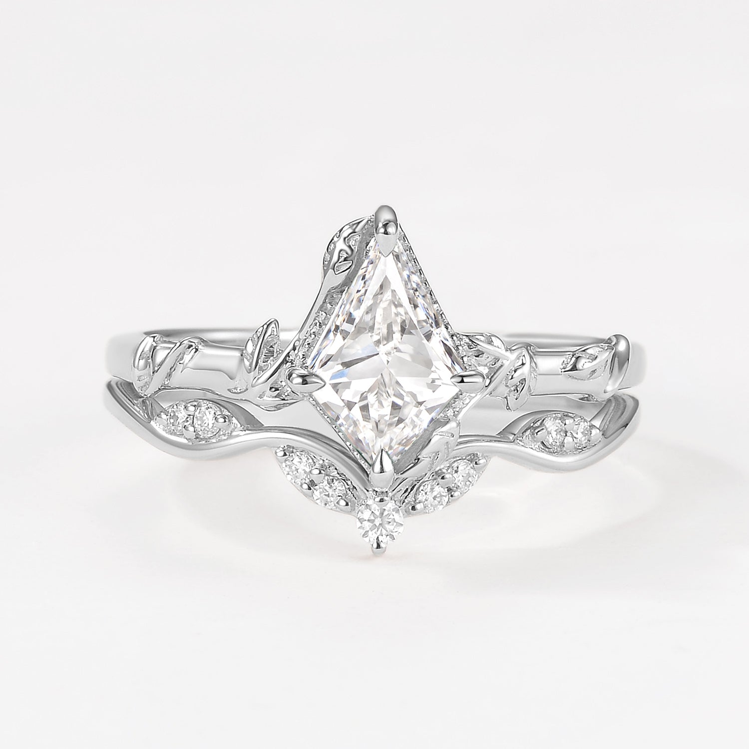 Unique Leafy Kite Lab Grown Diamond Engagement Ring Set 2pcs