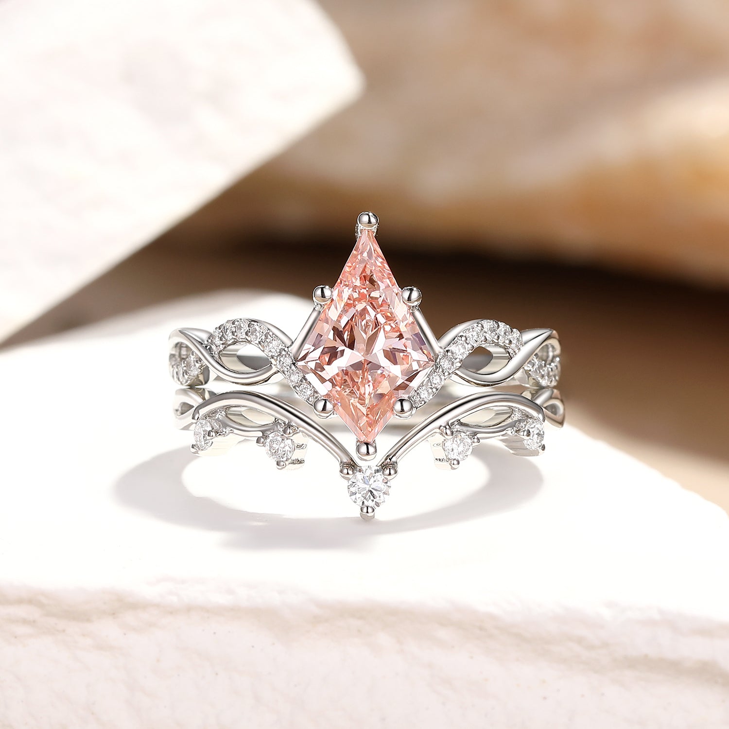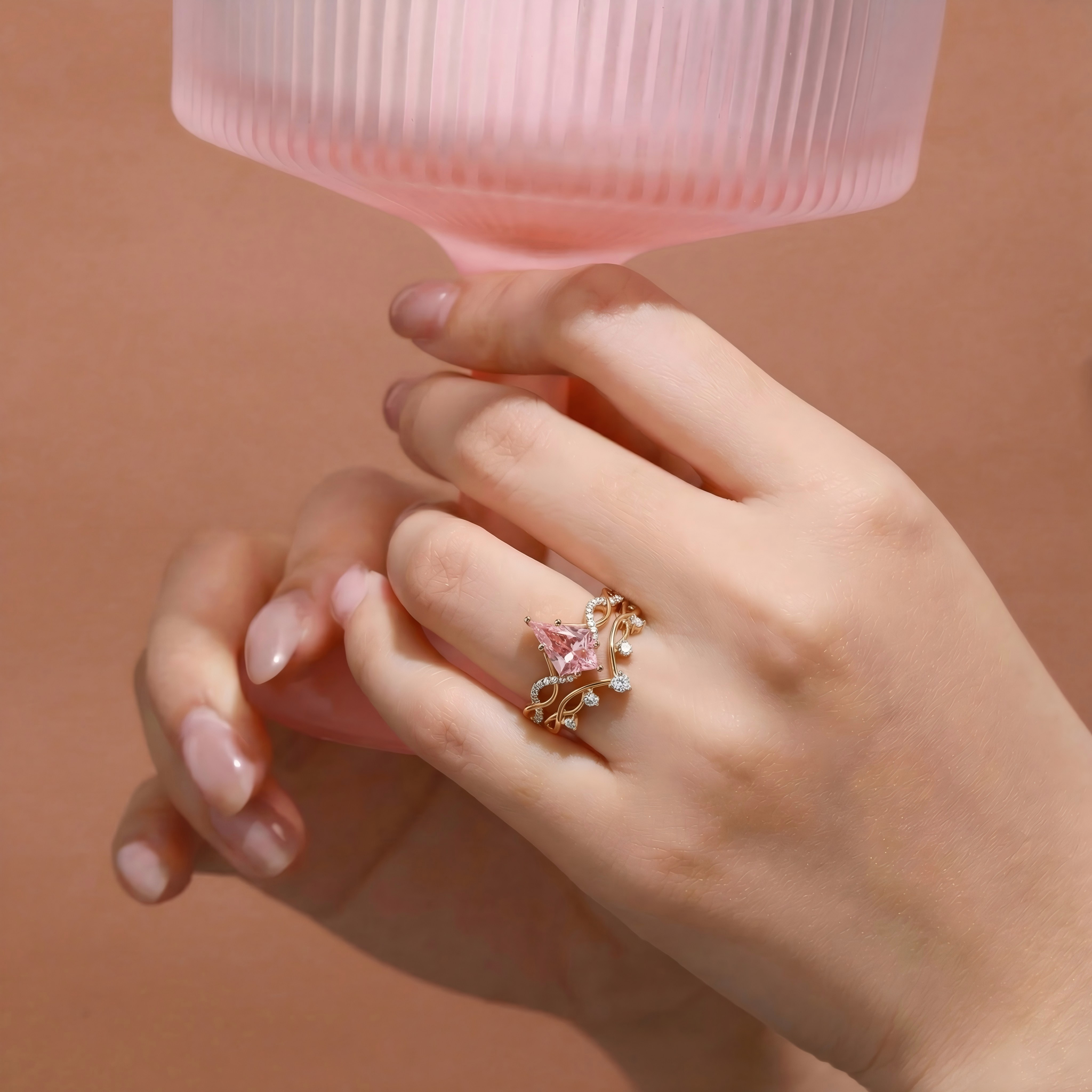 Leafy Kite Pink Lab Grown Diamond Ring Set 2pcs - Phyllon