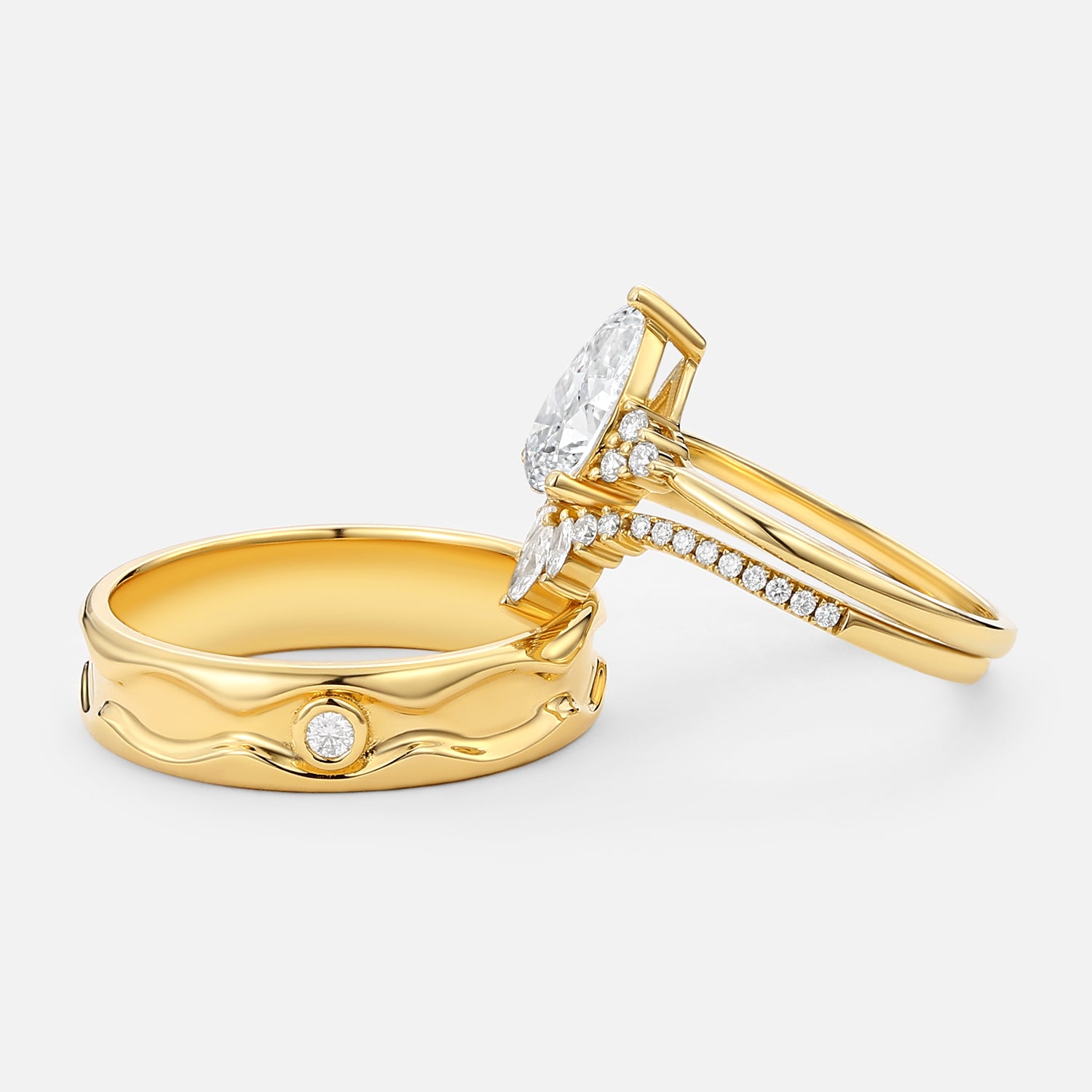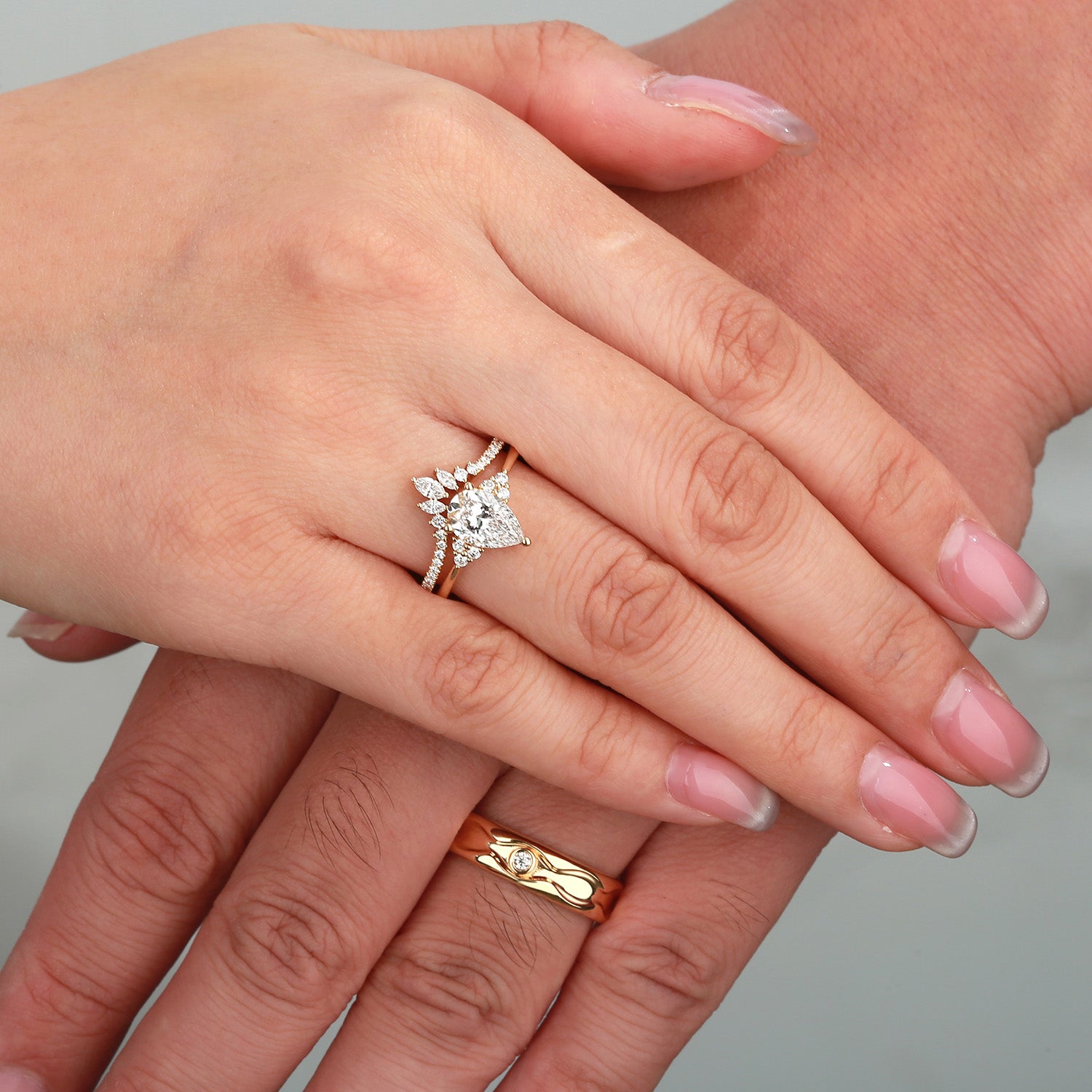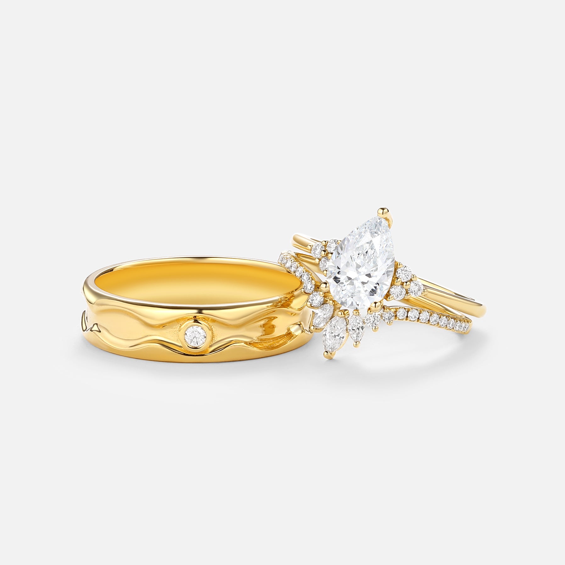 1.0ct Pear Lab Grown Diamond Couple Ring Set 3pcs - Lydia