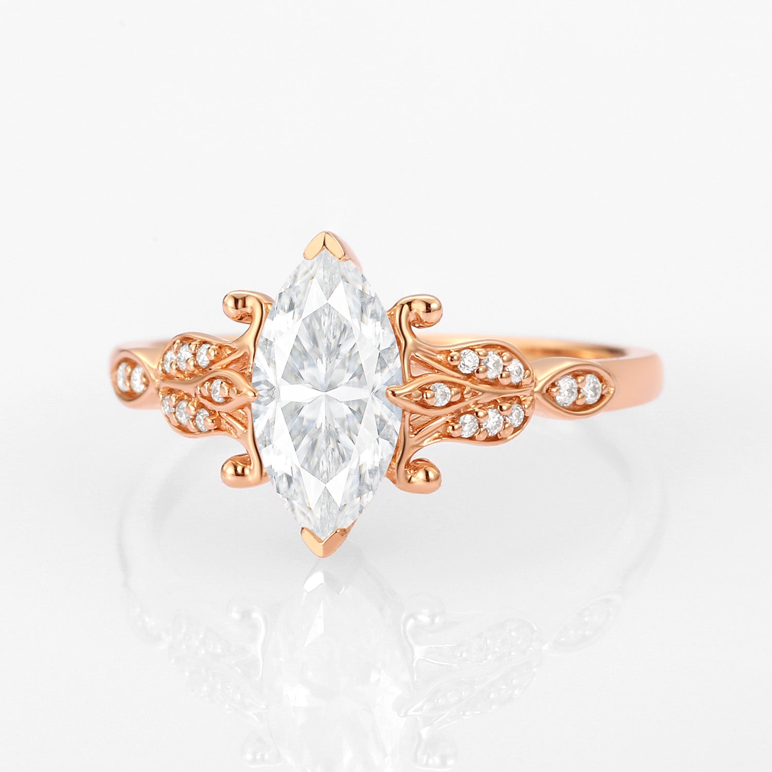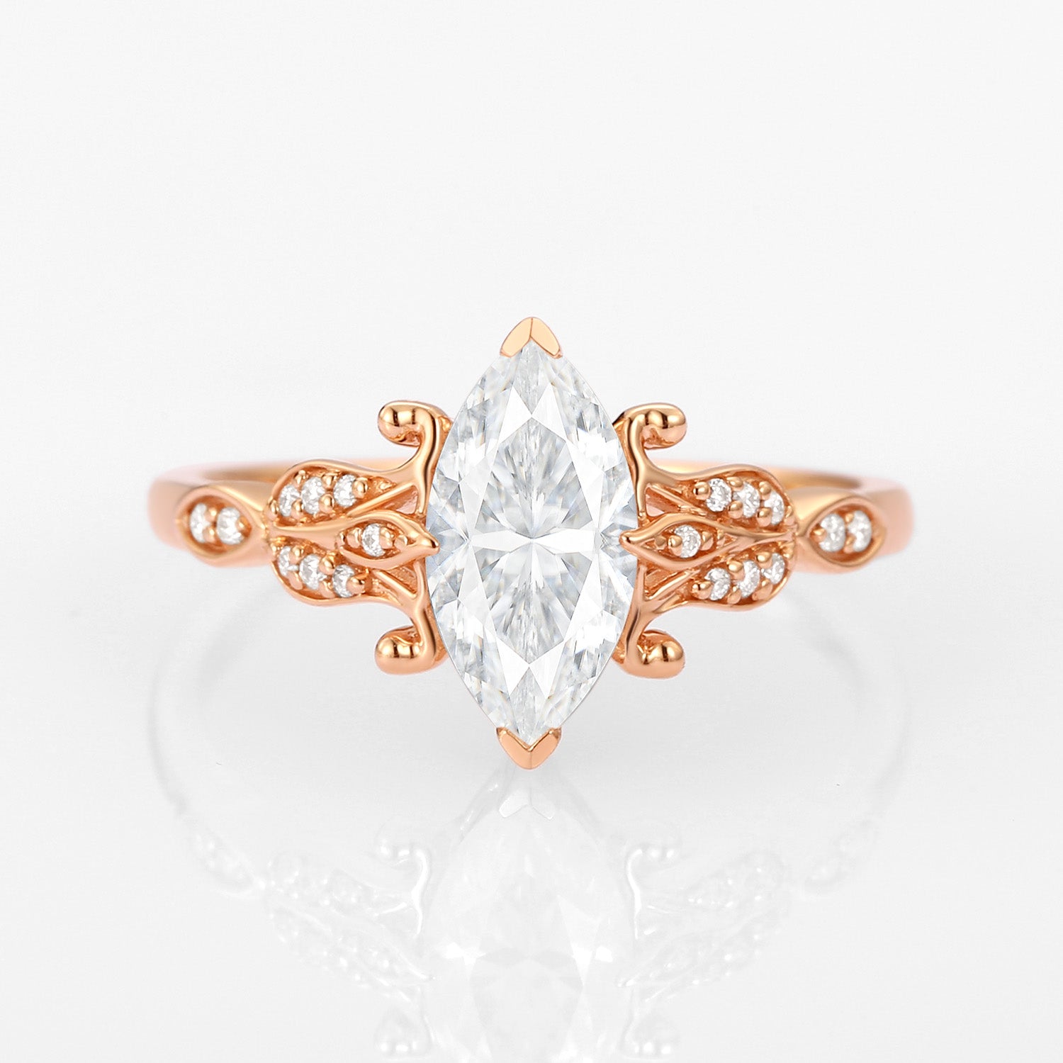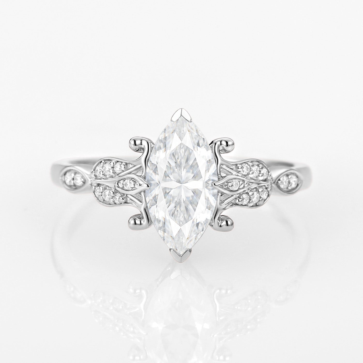 Marquise Cut Moissanite Leafy Vintage Engagement Ring