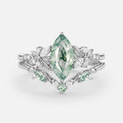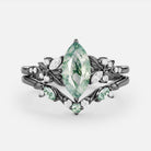 Marquise Moss Agate Leafy Engagement Ring Sets 2pcs - Peony