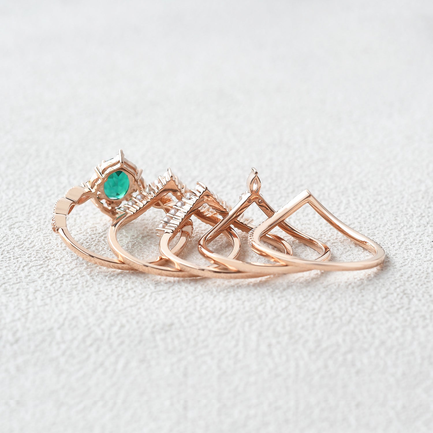 1.5ct Emerald Signature Vintage Extravaganza Rose Gold Ring Set 5pcs