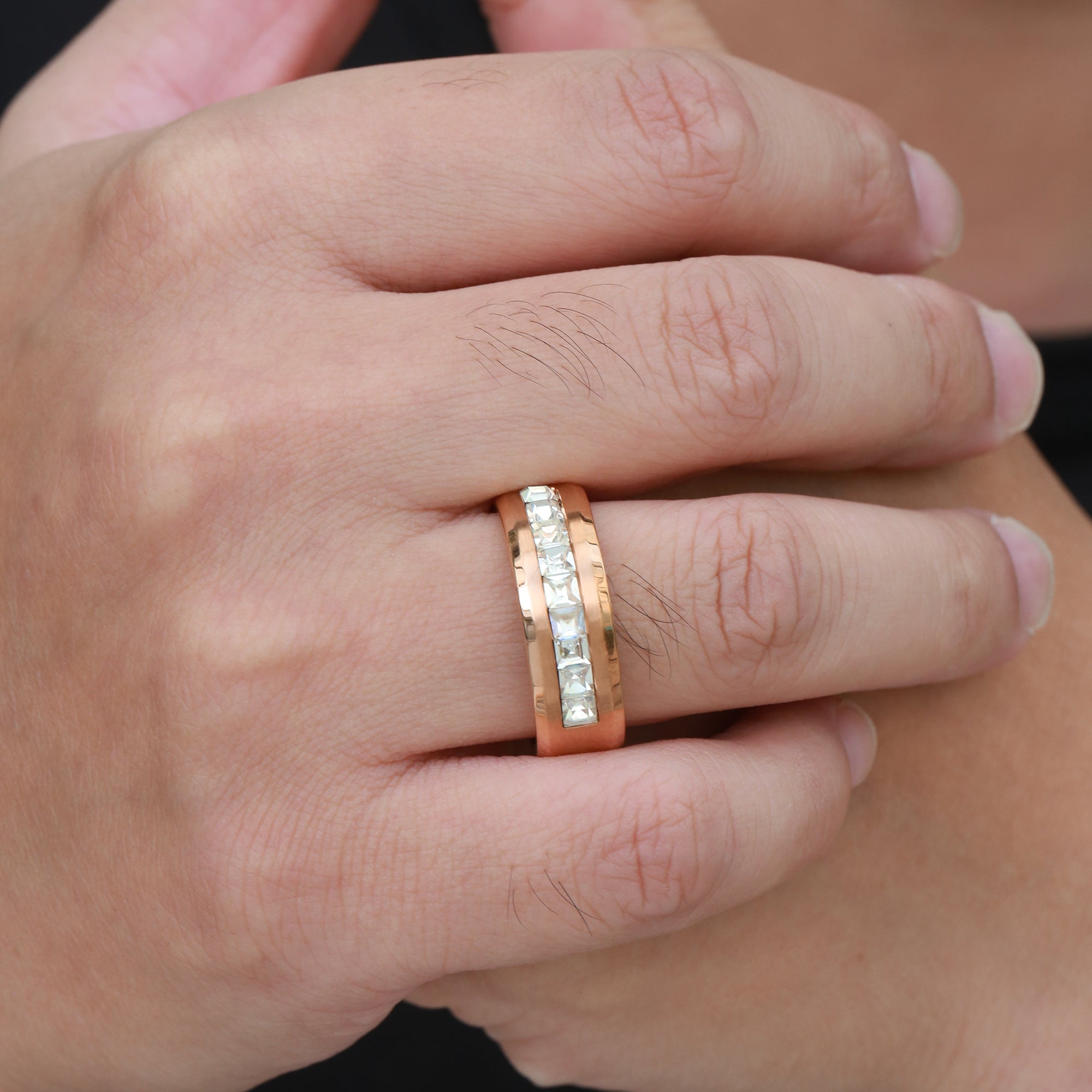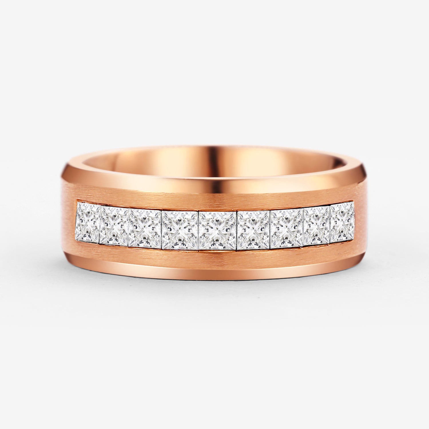 Felicegals 8mm Princess Moissanite Couple Men's Wedding Band His & Her Wedding Band Matte Wedding Band Man Rose Gold Minimalist Custom Engagement Ring