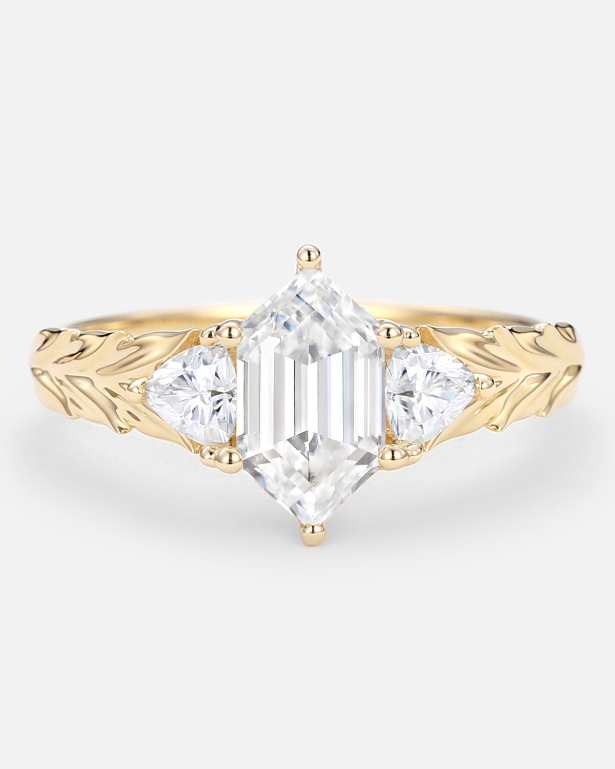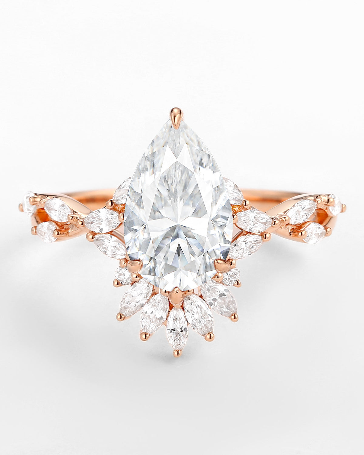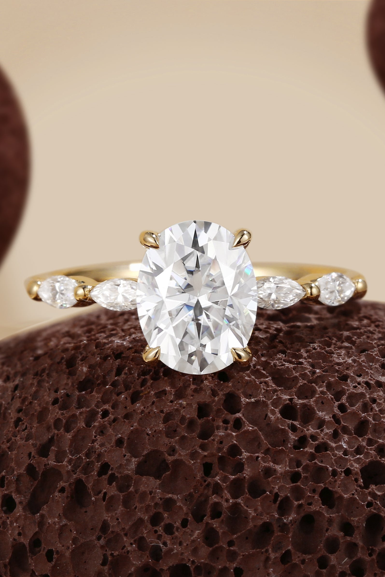 Moissanite rings feature a lab-created gemstone that’s both popular and affordable for engagement rings and other fine jewelry. Felicegals offers various elegant and captivating moissanite rings for people seeking a beautiful and ethical alternative to traditional diamond rings. Our moissanite rings for sale feature colorless moissanite stones that dazzle with brilliant sparkle and fire, closely resembling diamonds in appearance but at a more accessible price point. Whether you prefer an oval-cut, pear ring or an emerald mossianite engagement ring, Felicegals has a range of styles to suit your personal taste. Additionally, crafted with high-quality materials such as 14K or 18K gold, or 950 platinum, Felicegals' moissanite rings ensure durability and luxury. Meanwhile, both the center stone and accent stone are customizable to choose from moissanite, lab emerald, lab opal, lab diamond, etc, providing flexibility to meet your unique needs. Moreover, Felicegals stands behind our moissanite engagement rings with a free 1-year warranty, offering peace of mind and confidence in your purchase. So discover affordable engagement rings for an exceptional combination of beauty, quality, and value that will add sparkle to your most cherished moments.Colorless sparkling Moissanite Engagement Rings are the most suitable engagement rings for proposals, here are oval moissanite engagement rings and emerald Moissanite rings, our women's moissanite rings are very popular, come and find a moissanite gold ring that belongs to you!