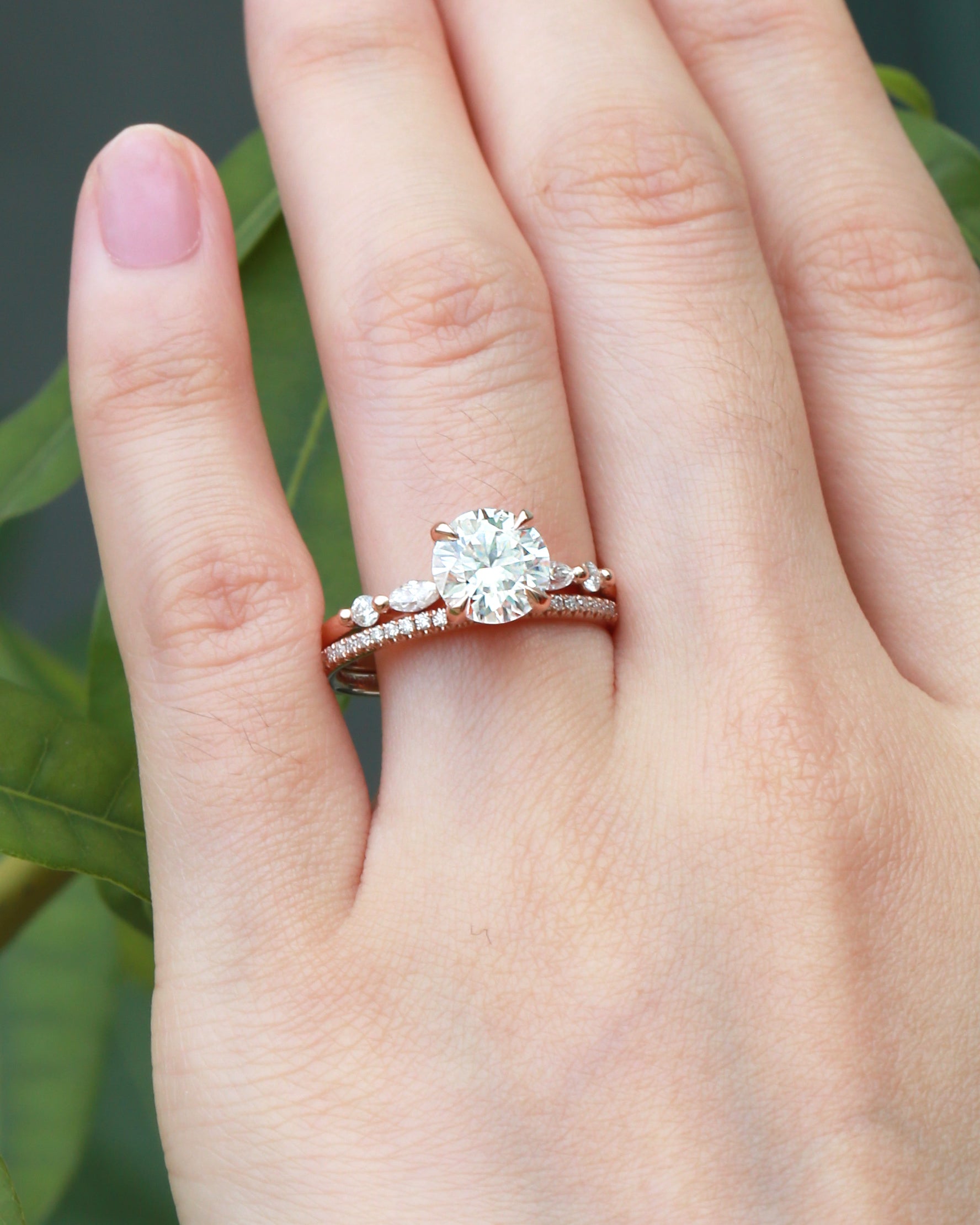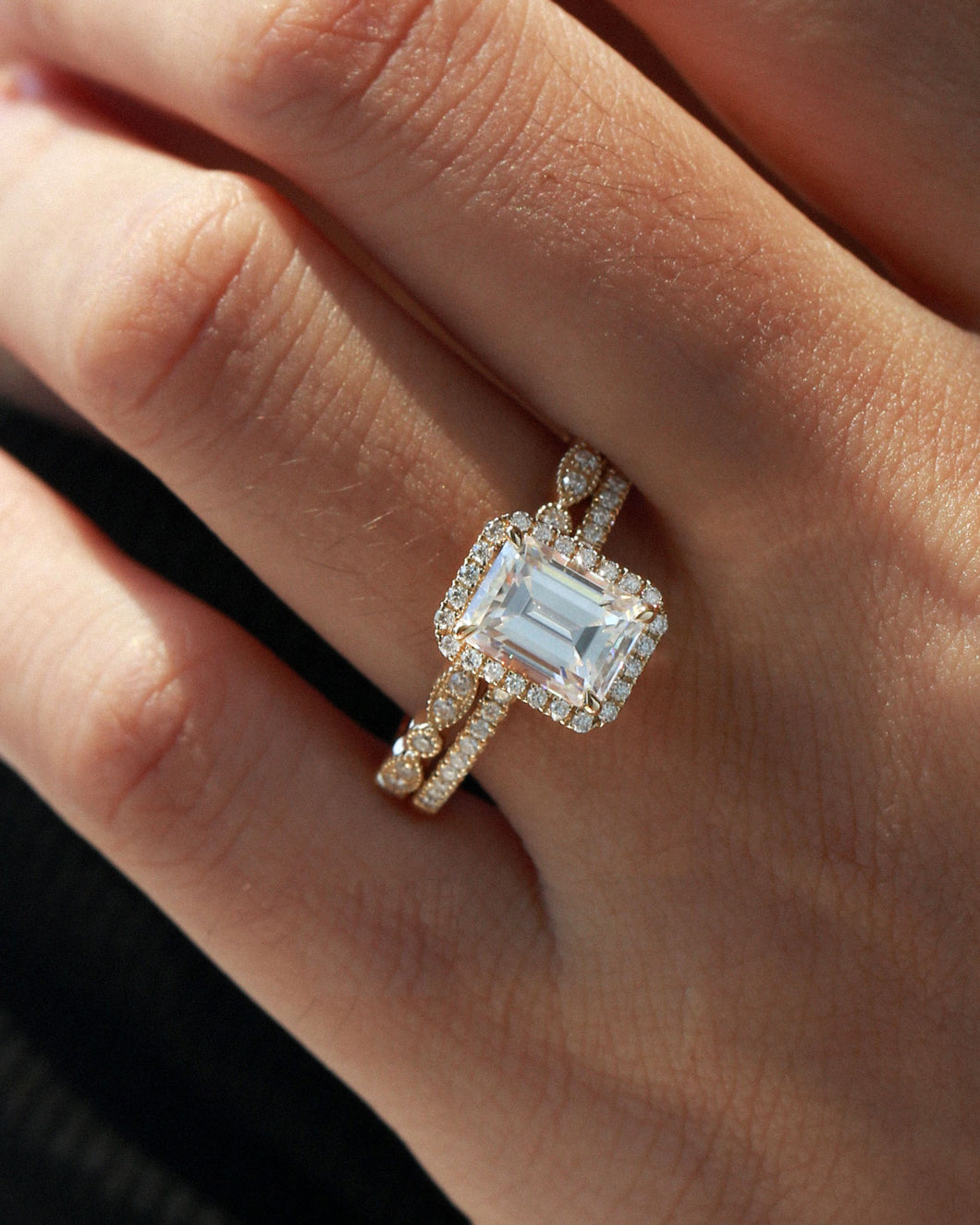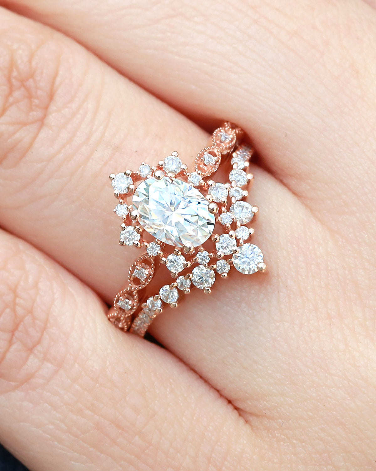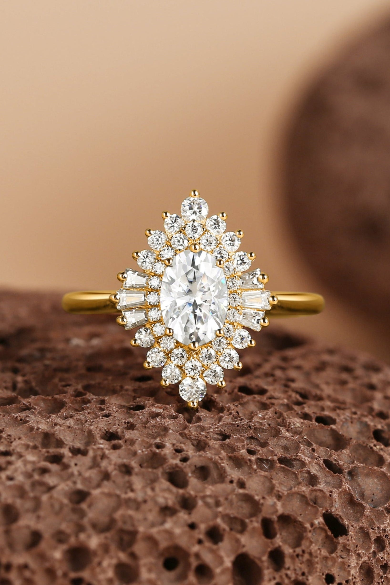 Moissanite rings feature a lab-created gemstone that’s both popular and affordable for engagement rings and other fine jewelry. Felicegals offers various elegant and captivating moissanite rings for people seeking a beautiful and ethical alternative to traditional diamond rings. Our moissanite rings for sale feature colorless moissanite stones that dazzle with brilliant sparkle and fire, closely resembling diamonds in appearance but at a more accessible price point. Whether you prefer an oval-cut, pear ring or an emerald mossianite engagement ring, Felicegals has a range of styles to suit your personal taste. Additionally, crafted with high-quality materials such as 14K or 18K gold, or 950 platinum, Felicegals' moissanite rings ensure durability and luxury. Meanwhile, both the center stone and accent stone are customizable to choose from moissanite, lab emerald, lab opal, lab diamond, etc, providing flexibility to meet your unique needs. Moreover, Felicegals stands behind our moissanite engagement rings with a free 1-year warranty, offering peace of mind and confidence in your purchase. So discover affordable engagement rings for an exceptional combination of beauty, quality, and value that will add sparkle to your most cherished moments.Colorless sparkling Moissanite Engagement Rings are the most suitable engagement rings for proposals, here are oval moissanite engagement rings and emerald Moissanite rings, our women's moissanite rings are very popular, come and find a moissanite gold ring that belongs to you!