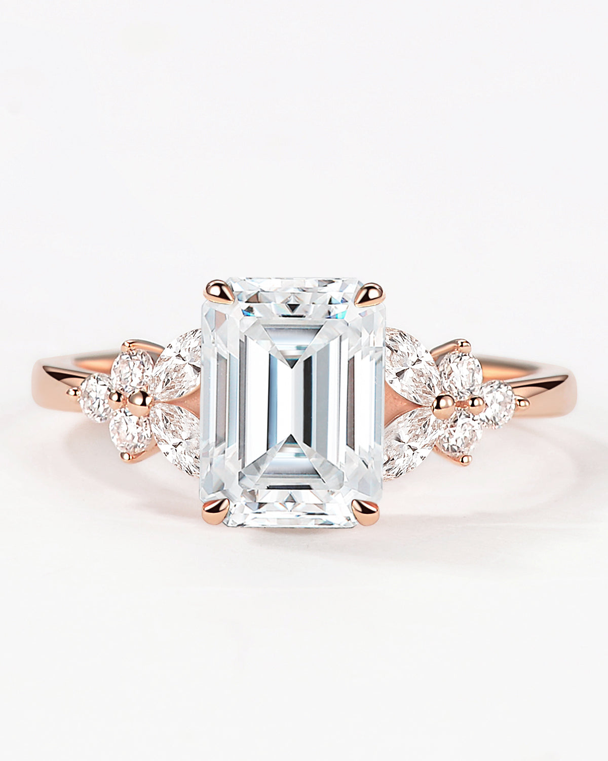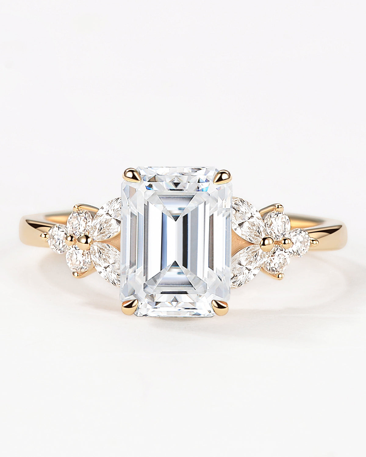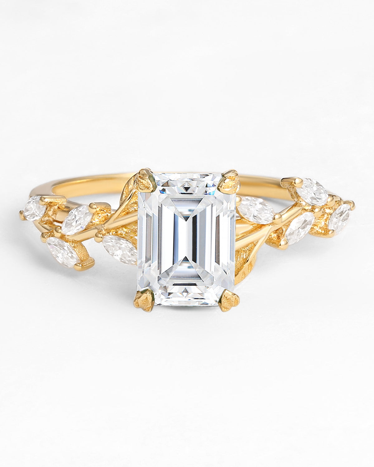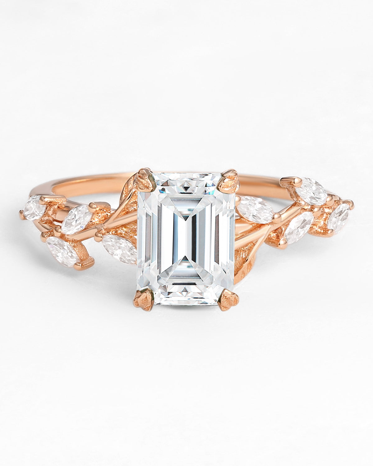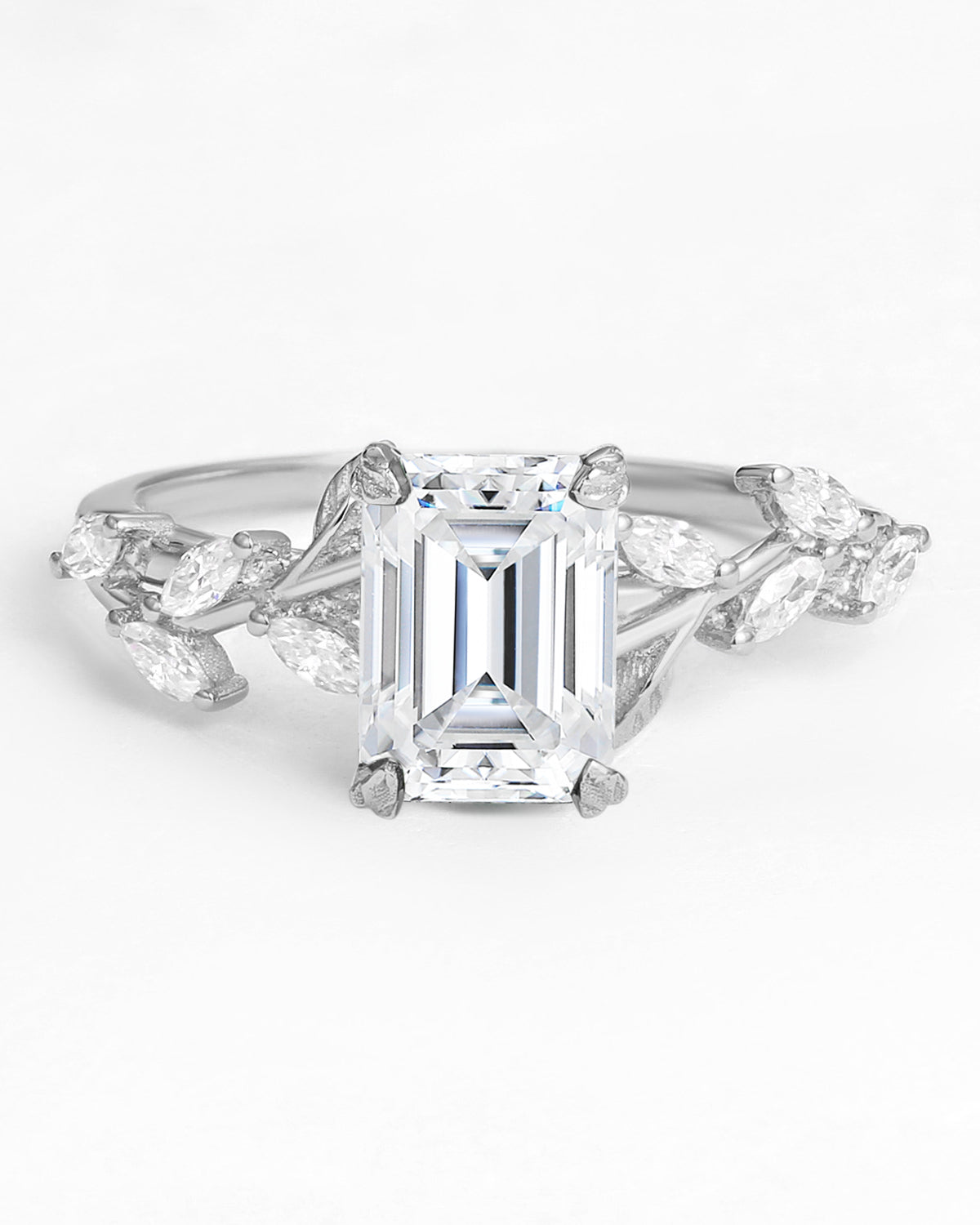 Emerald cut moissanite is known for its bold and elegant appearance, and when paired with moissanite rings, it creates dazzling and eye-catching vintage emerald cut engagement rings. The emerald cut is a classic shape that is characterized by its long, rectangular facets that create a hall-of-mirrors effect.