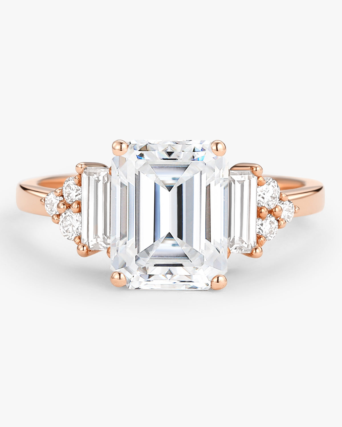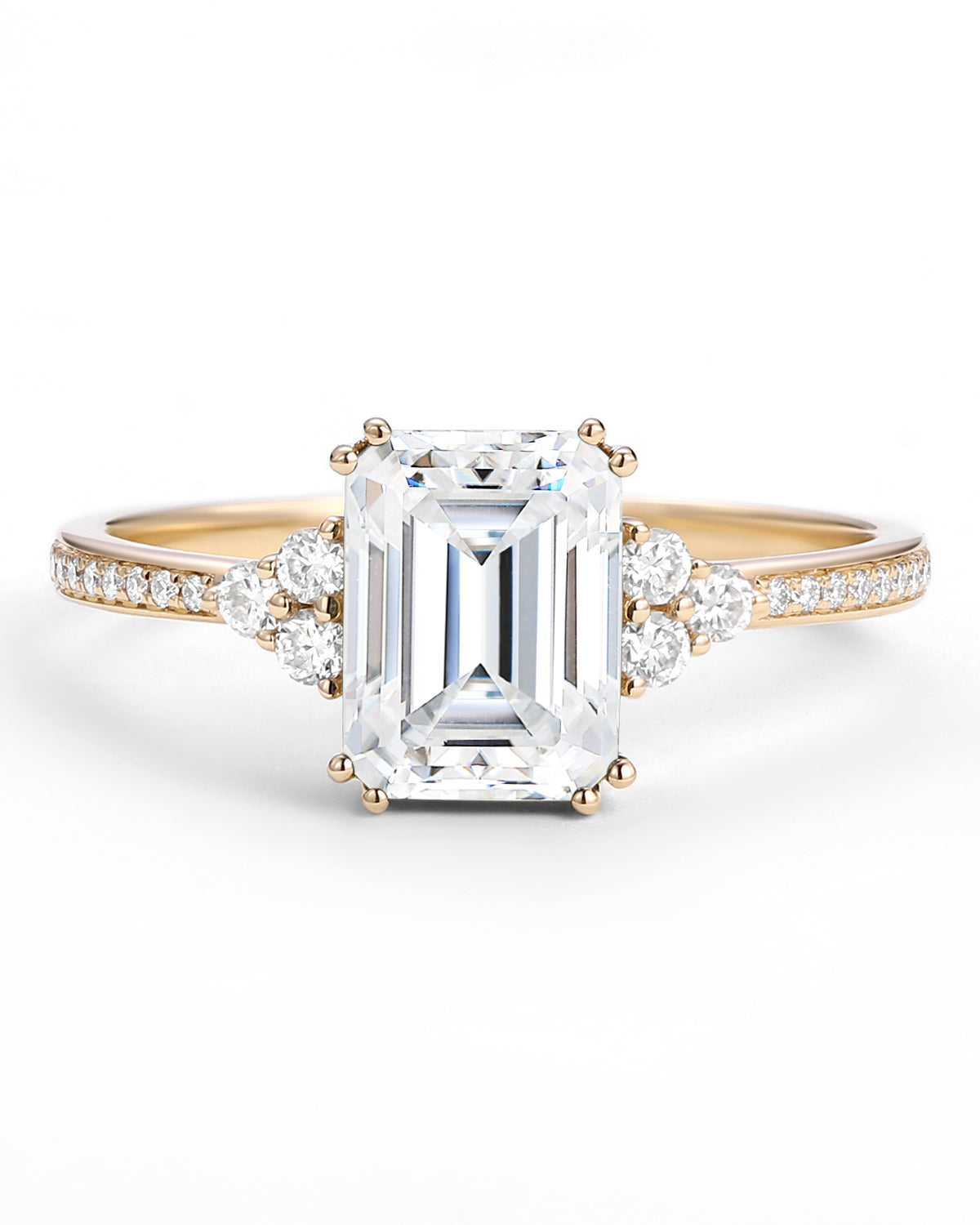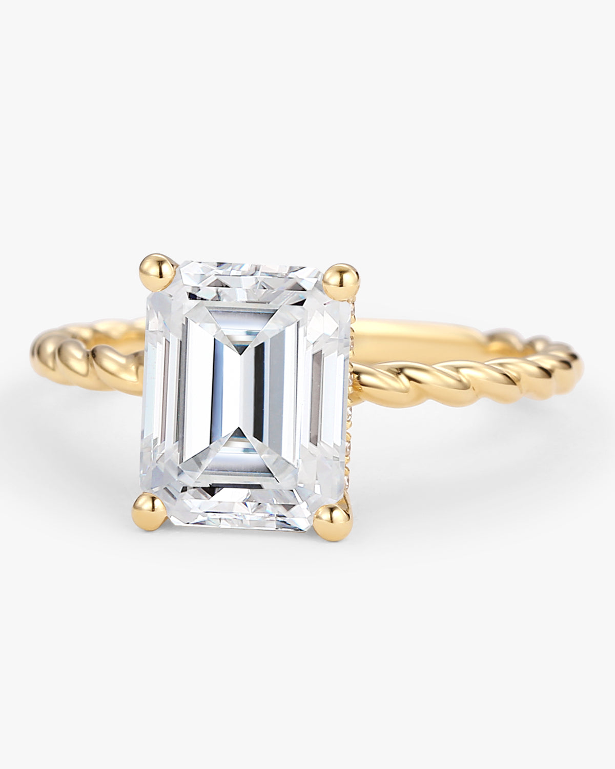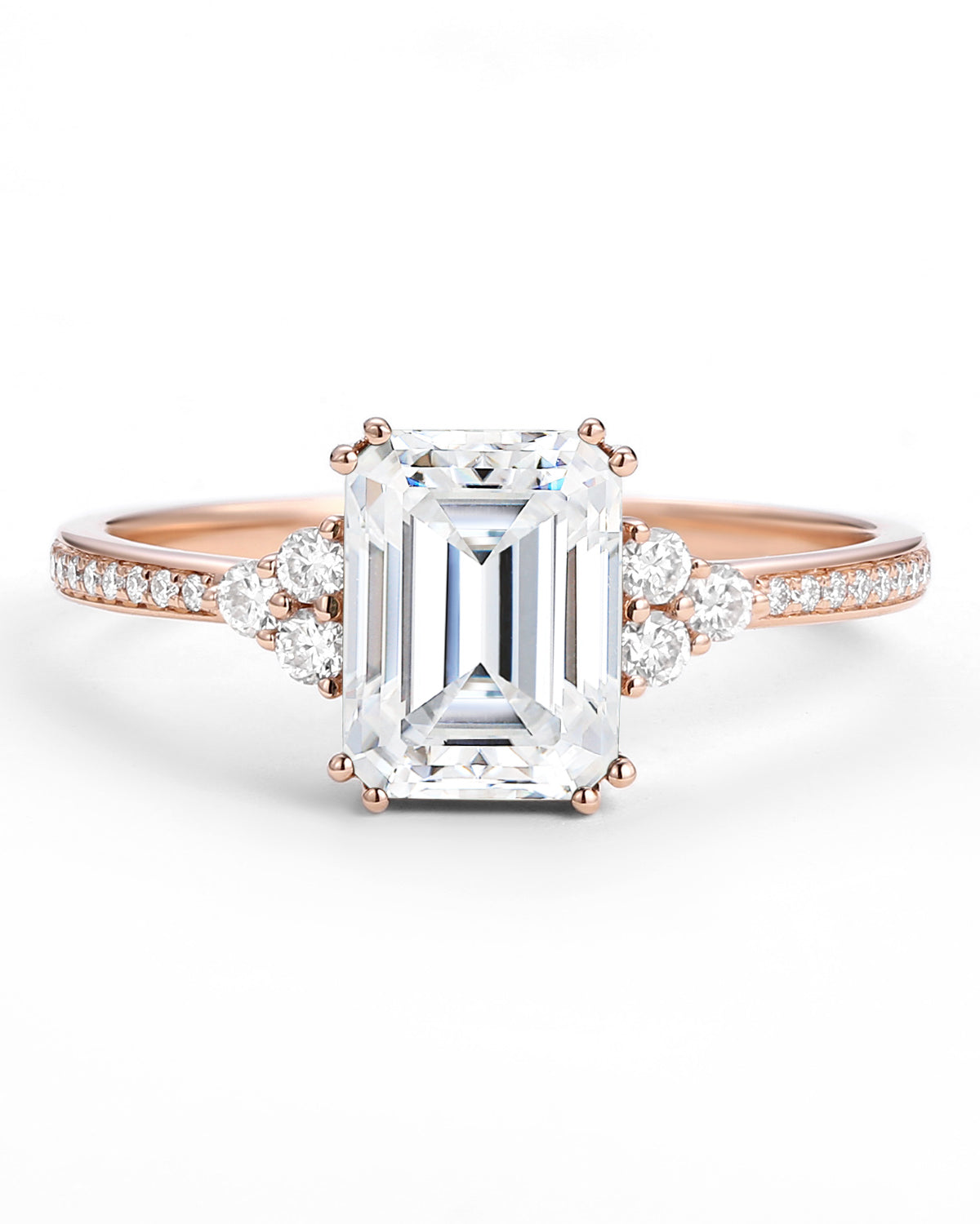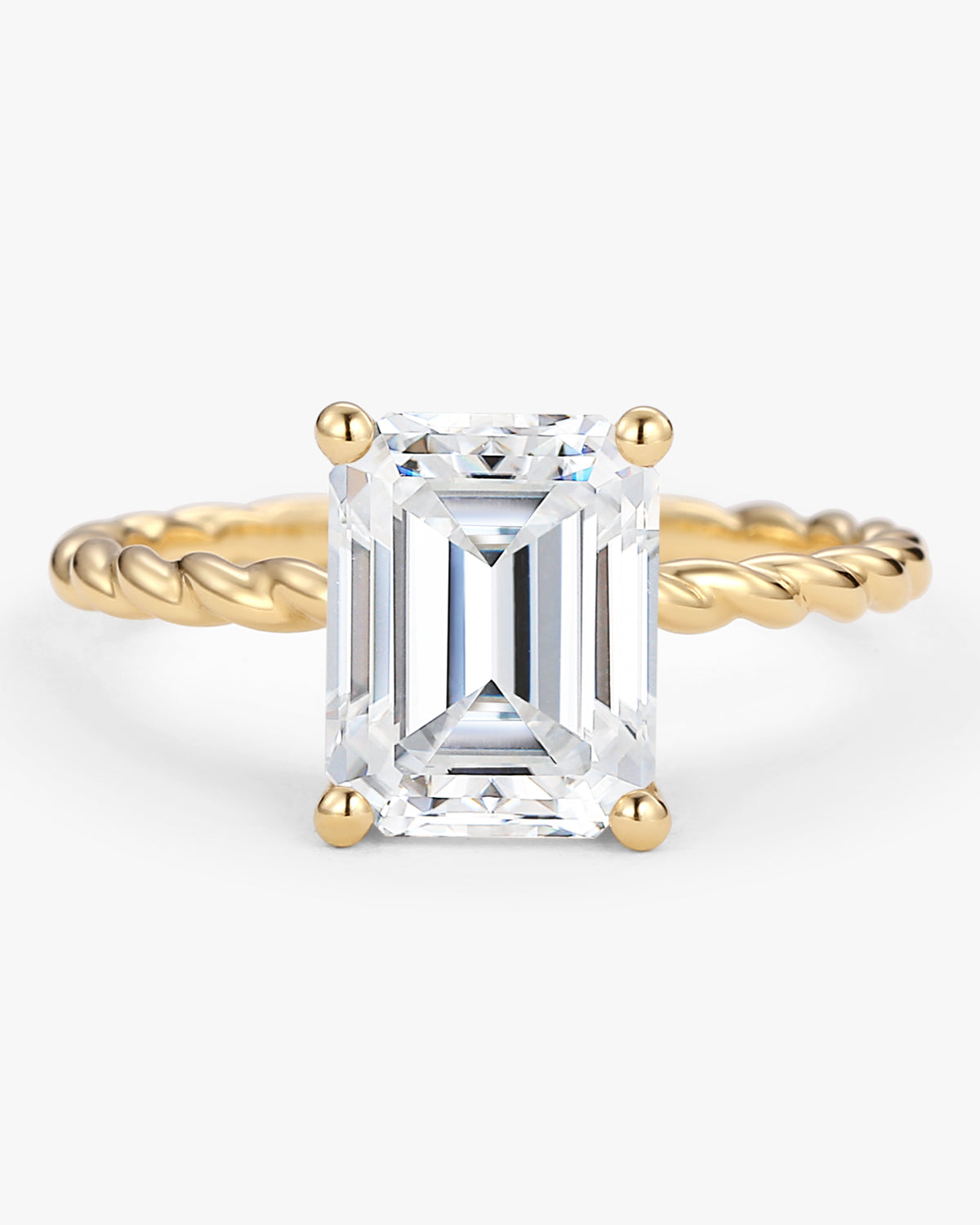 Emerald cut moissanite is known for its bold and elegant appearance, and when paired with moissanite rings, it creates dazzling and eye-catching vintage emerald cut engagement rings. The emerald cut is a classic shape that is characterized by its long, rectangular facets that create a hall-of-mirrors effect.