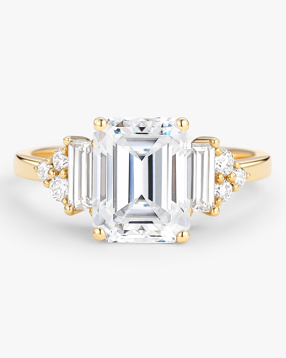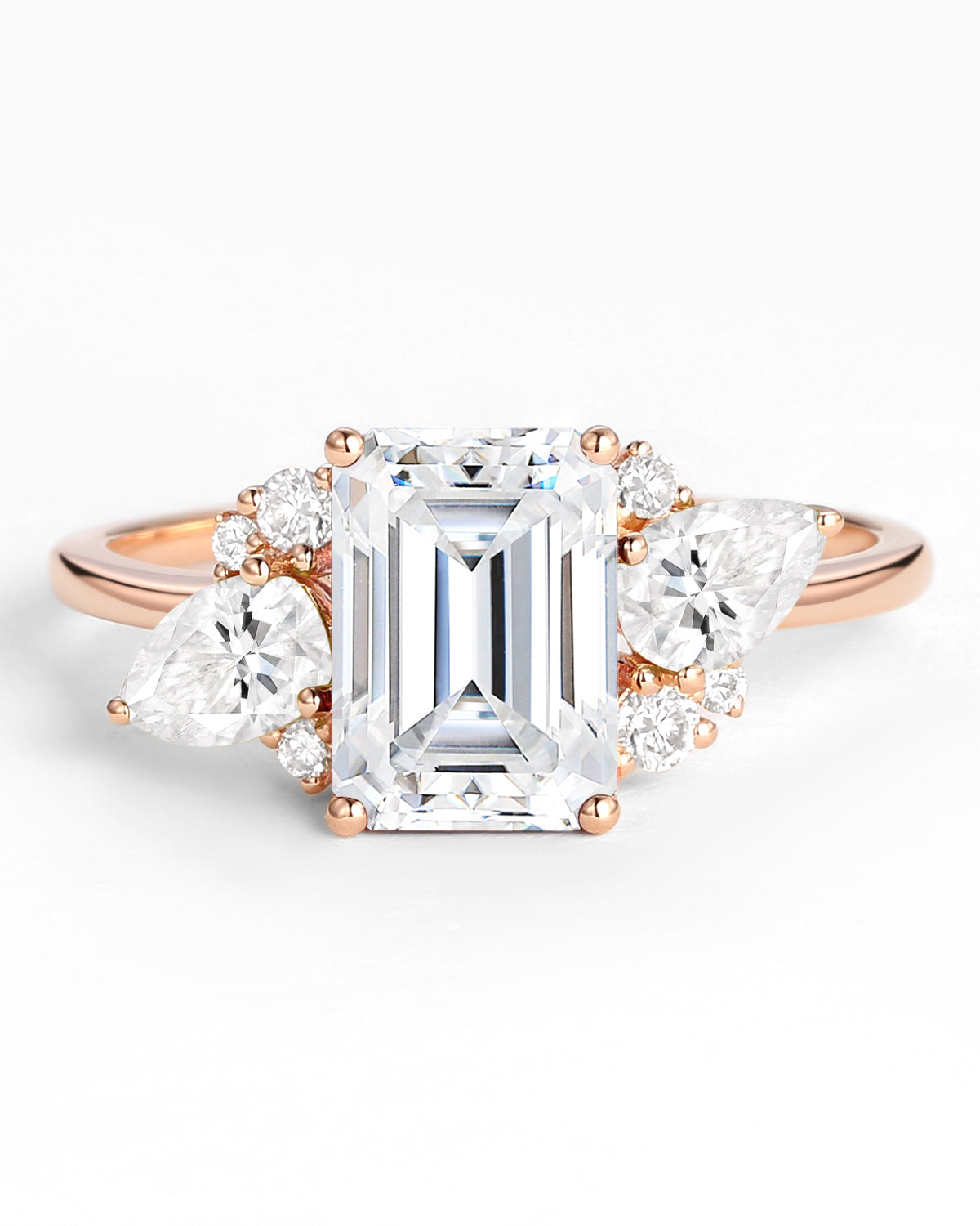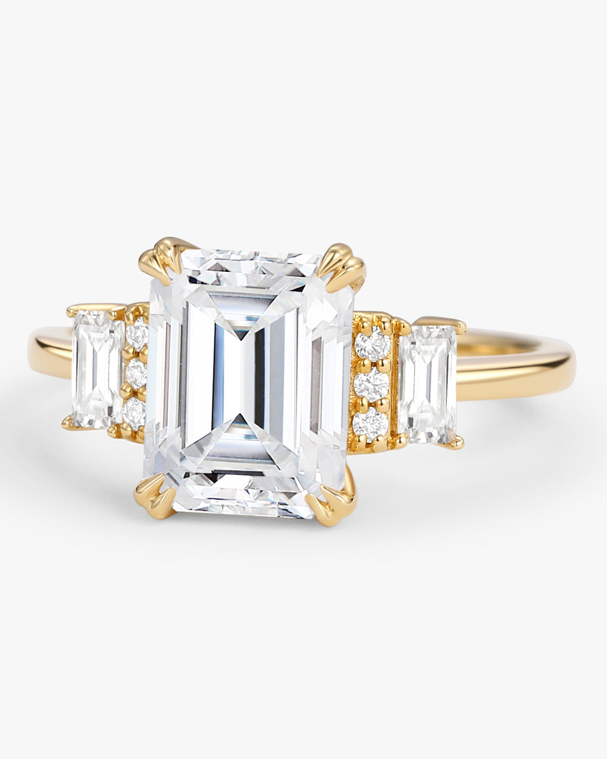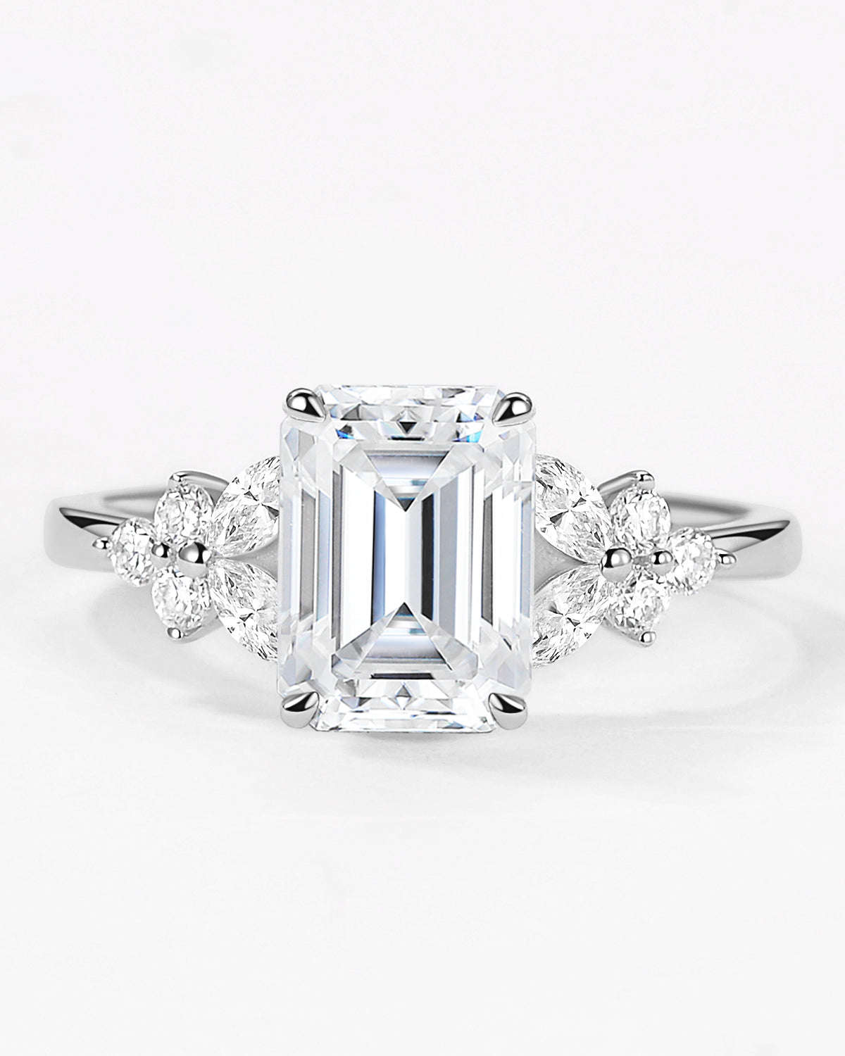 Emerald cut moissanite is known for its bold and elegant appearance, and when paired with moissanite rings, it creates dazzling and eye-catching vintage emerald cut engagement rings. The emerald cut is a classic shape that is characterized by its long, rectangular facets that create a hall-of-mirrors effect.