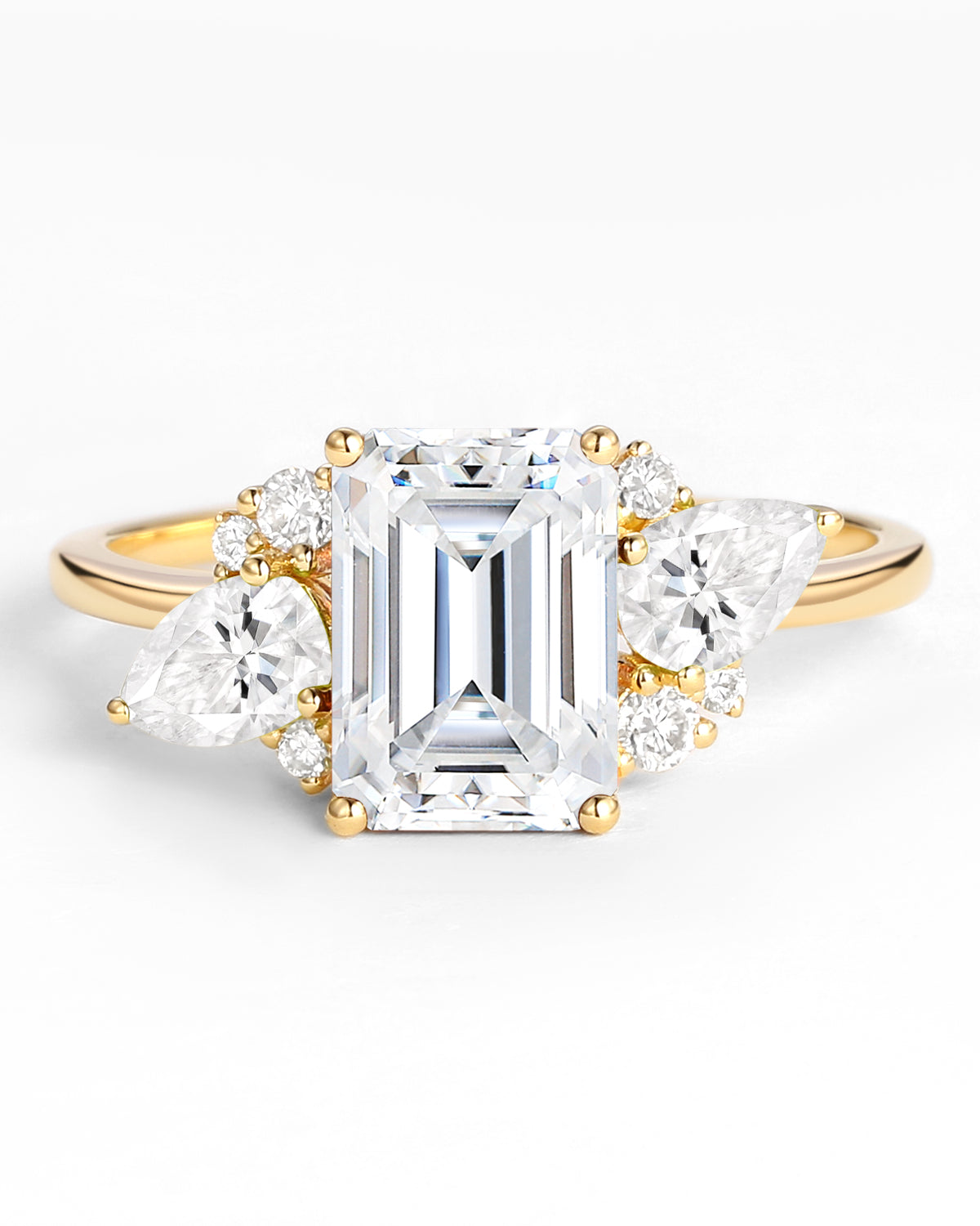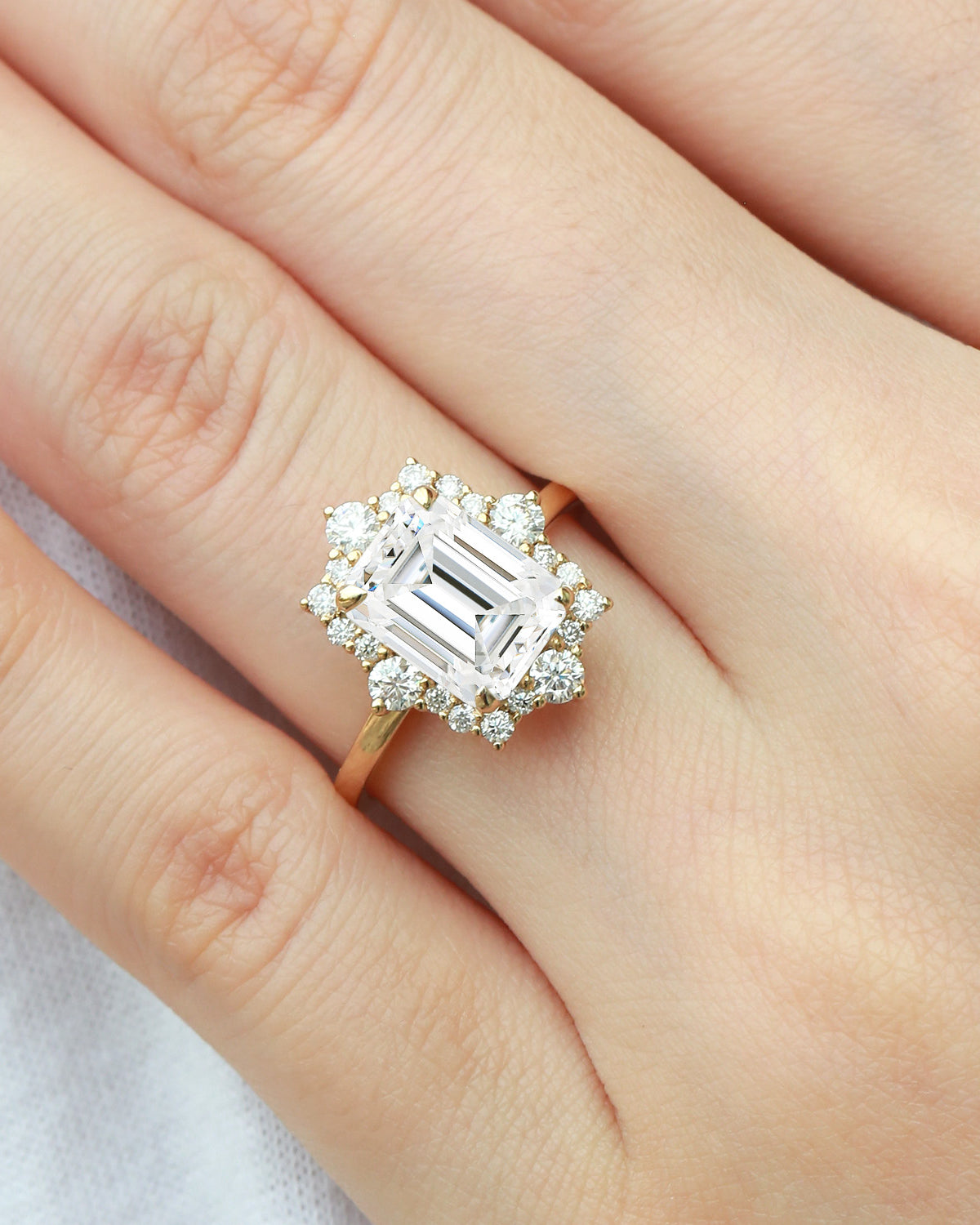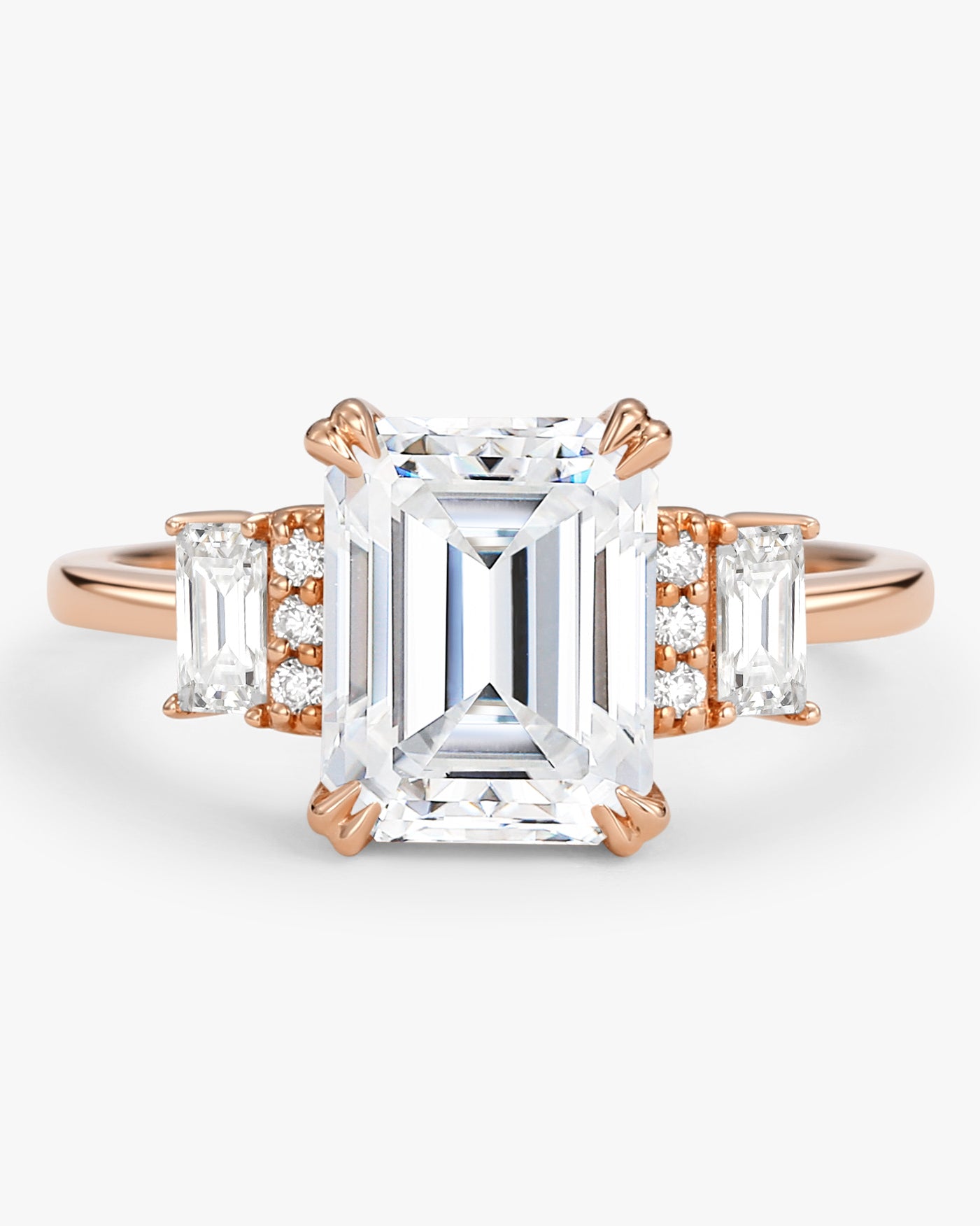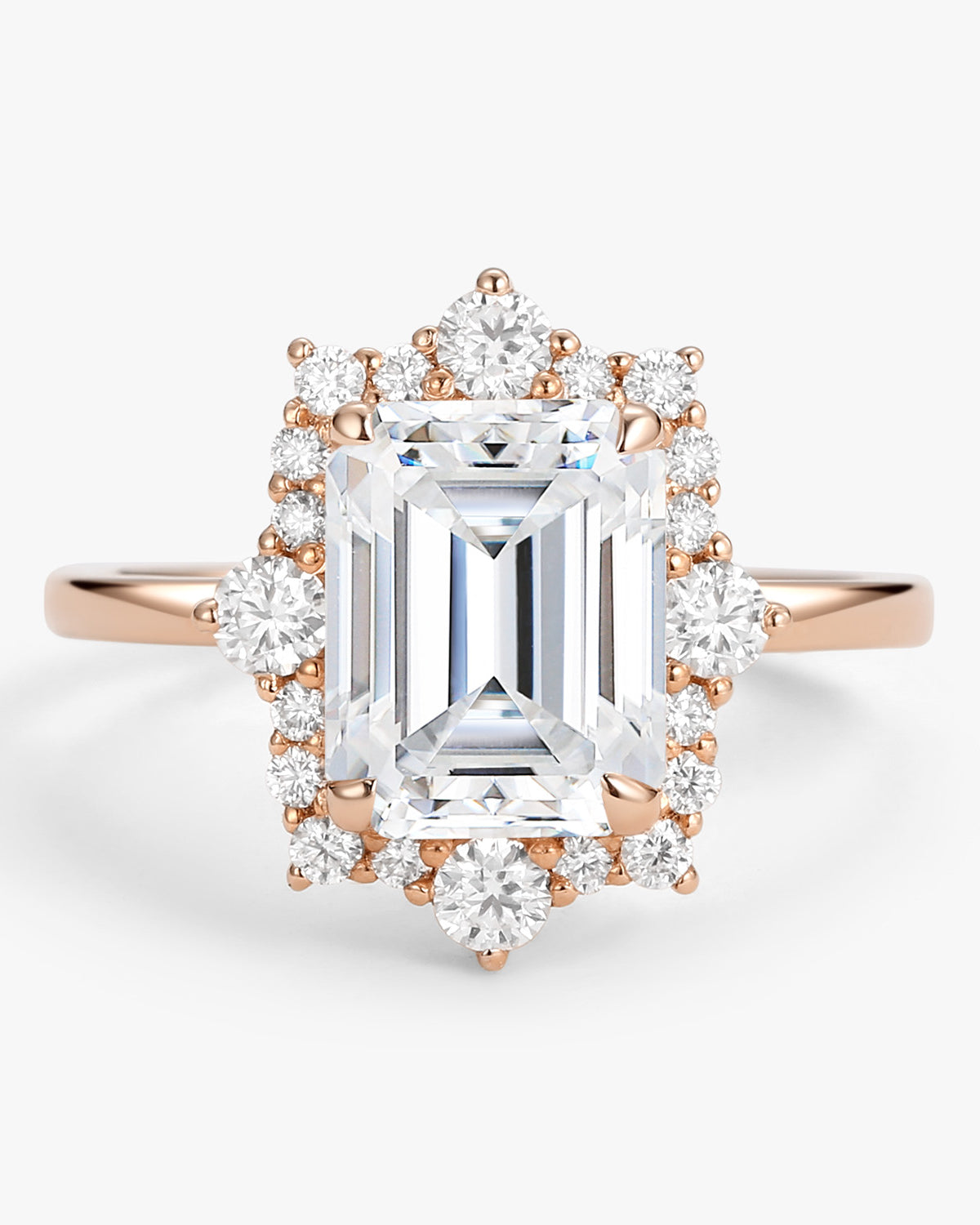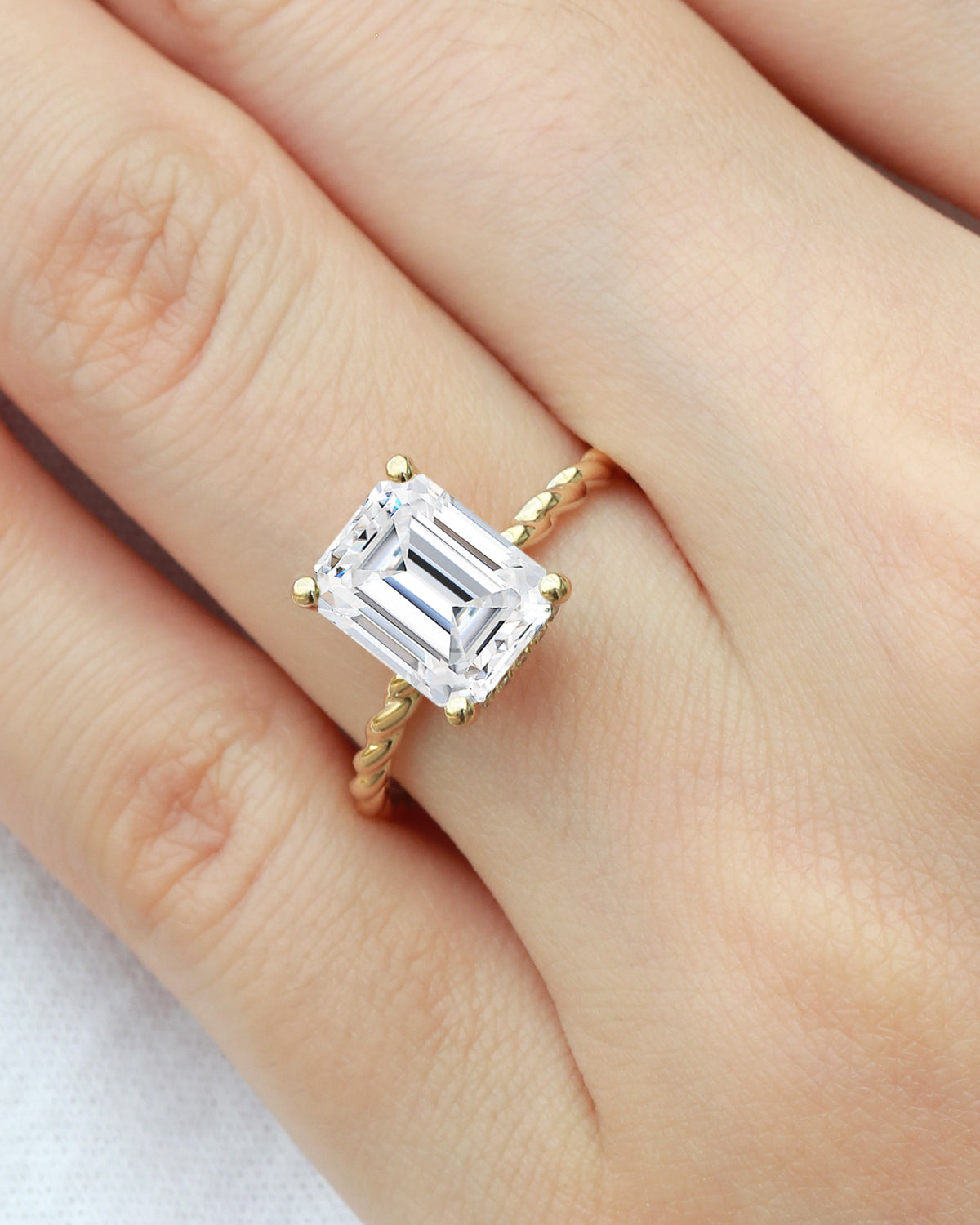 Emerald cut moissanite is known for its bold and elegant appearance, and when paired with moissanite rings, it creates dazzling and eye-catching vintage emerald cut engagement rings. The emerald cut is a classic shape that is characterized by its long, rectangular facets that create a hall-of-mirrors effect.