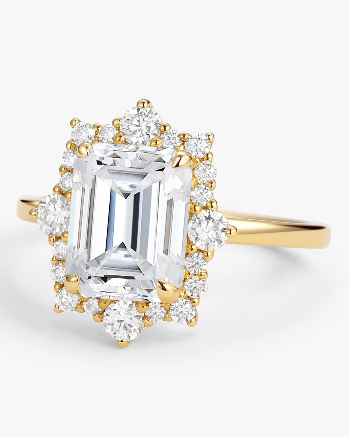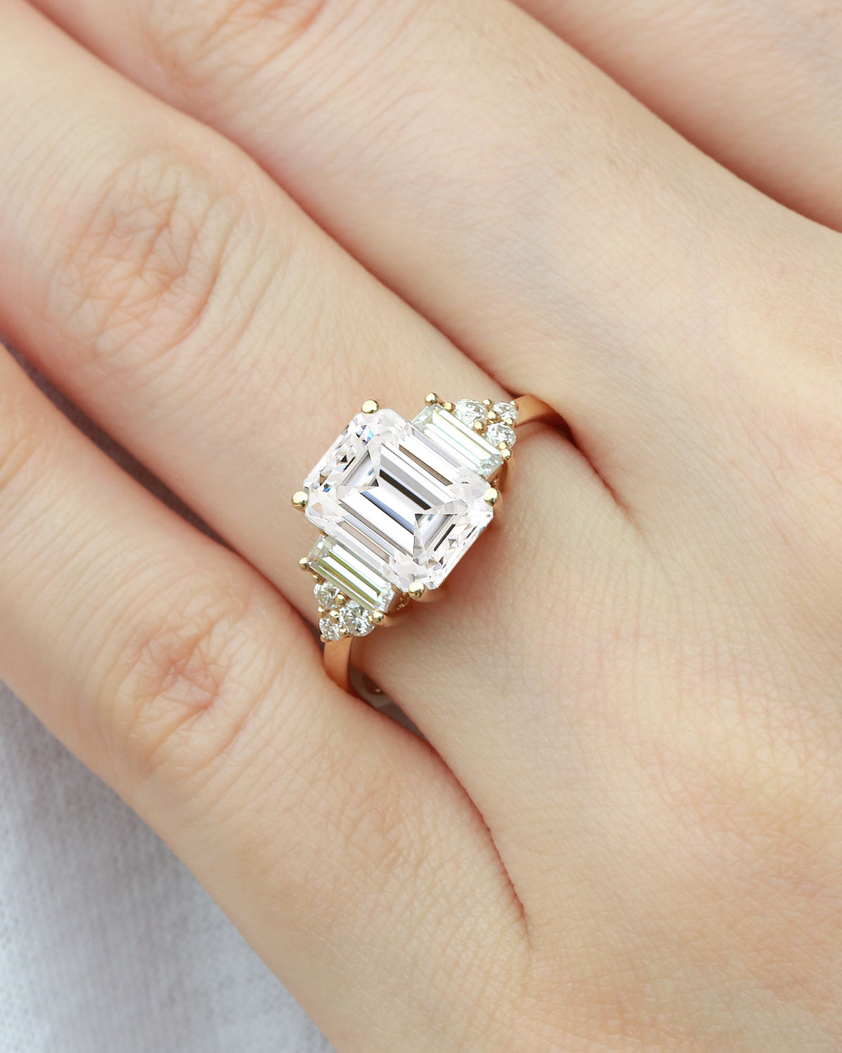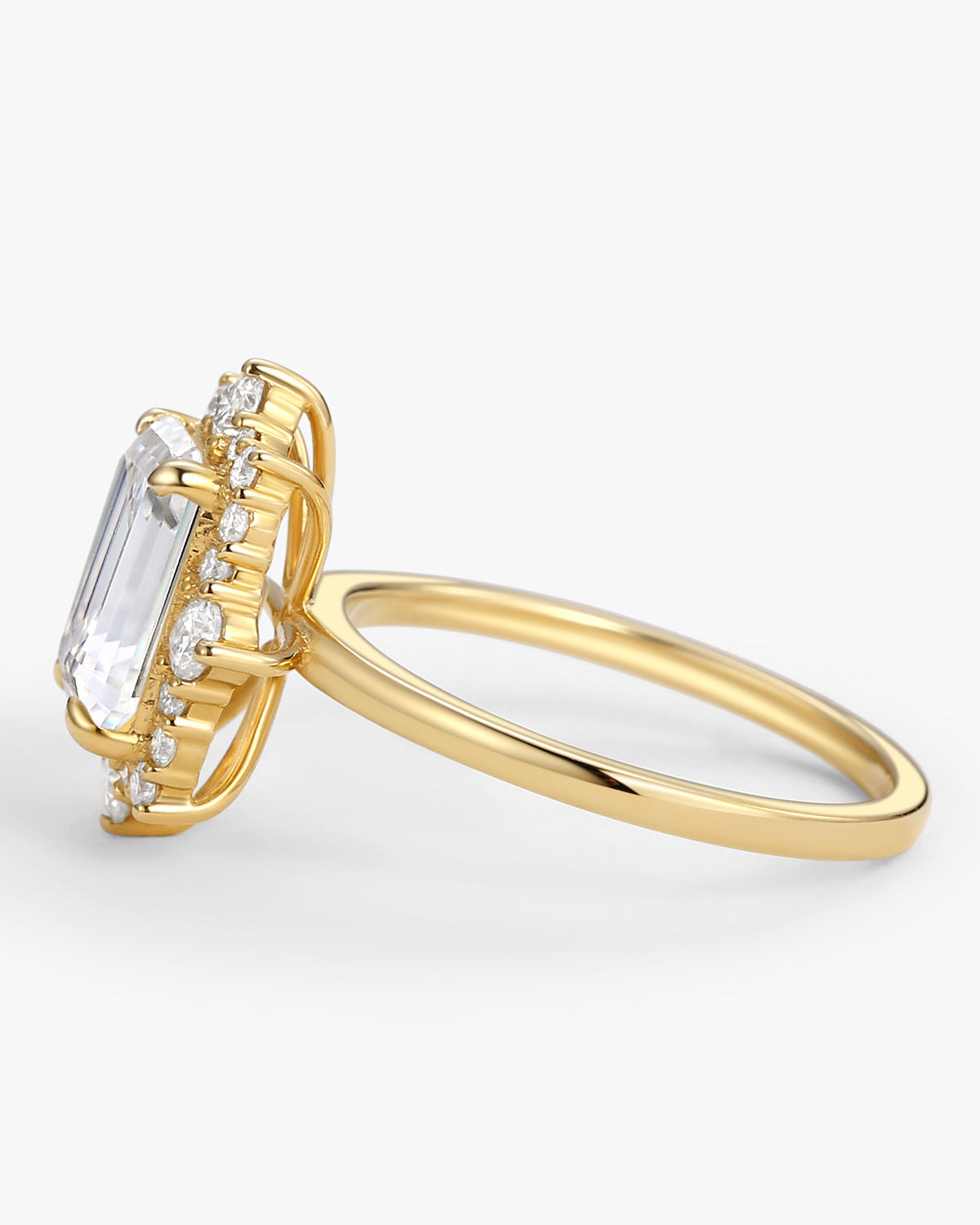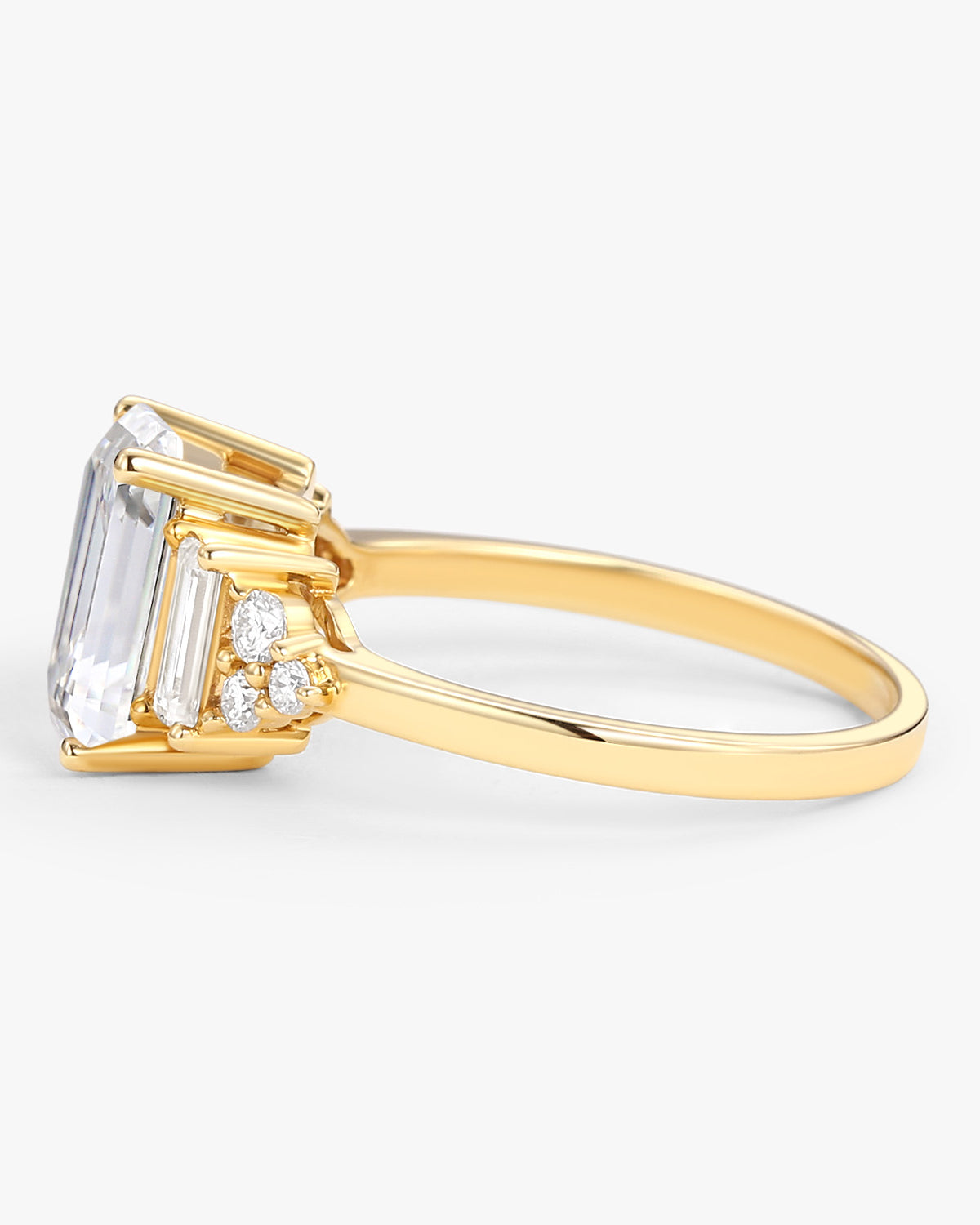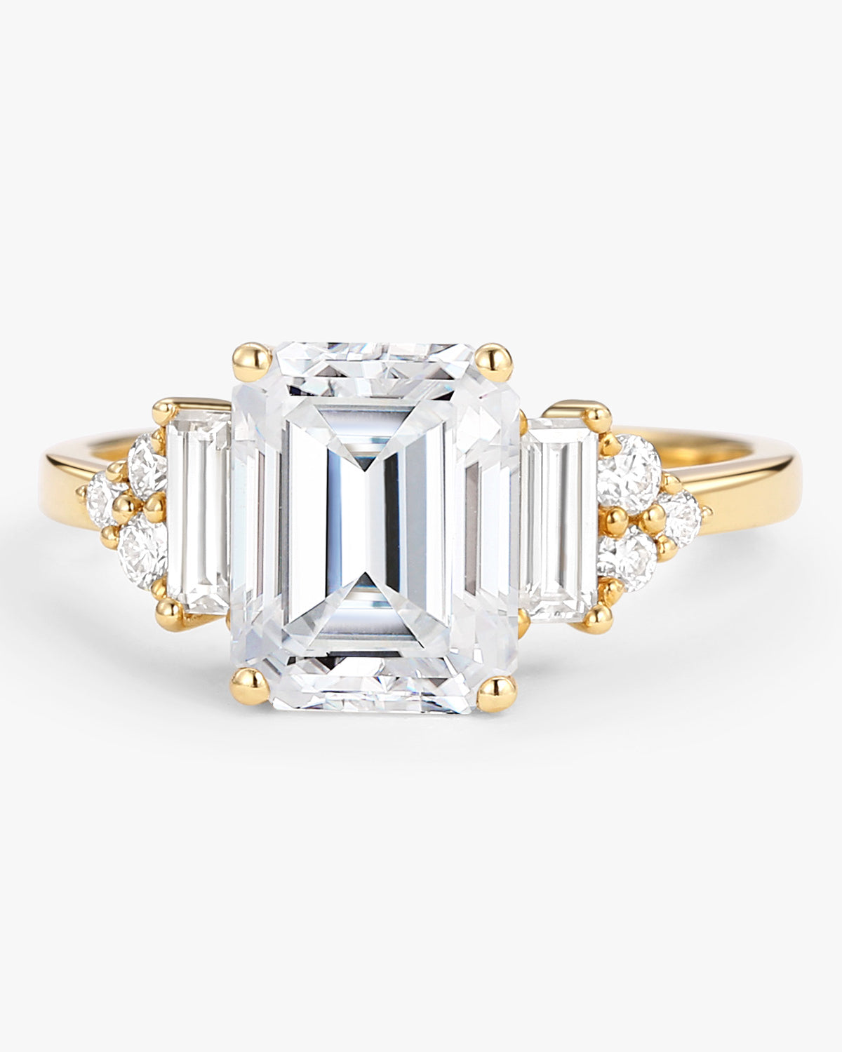 Emerald cut moissanite is known for its bold and elegant appearance, and when paired with moissanite rings, it creates dazzling and eye-catching vintage emerald cut engagement rings. The emerald cut is a classic shape that is characterized by its long, rectangular facets that create a hall-of-mirrors effect.