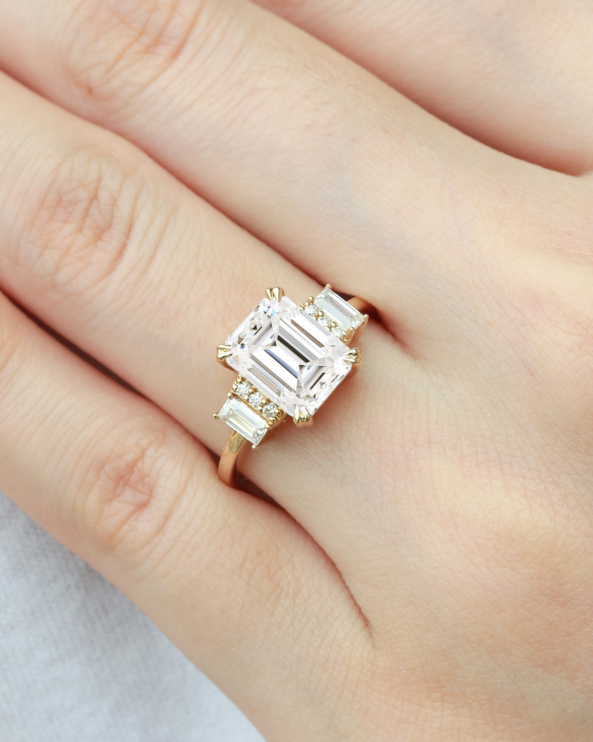 Emerald cut moissanite ring is definitely the choice for intellectual beauties.