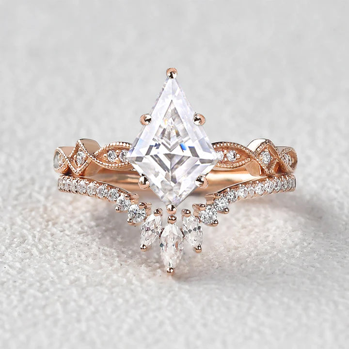 Unique Kite Moissanite Engagement Ring Sets 2pcs