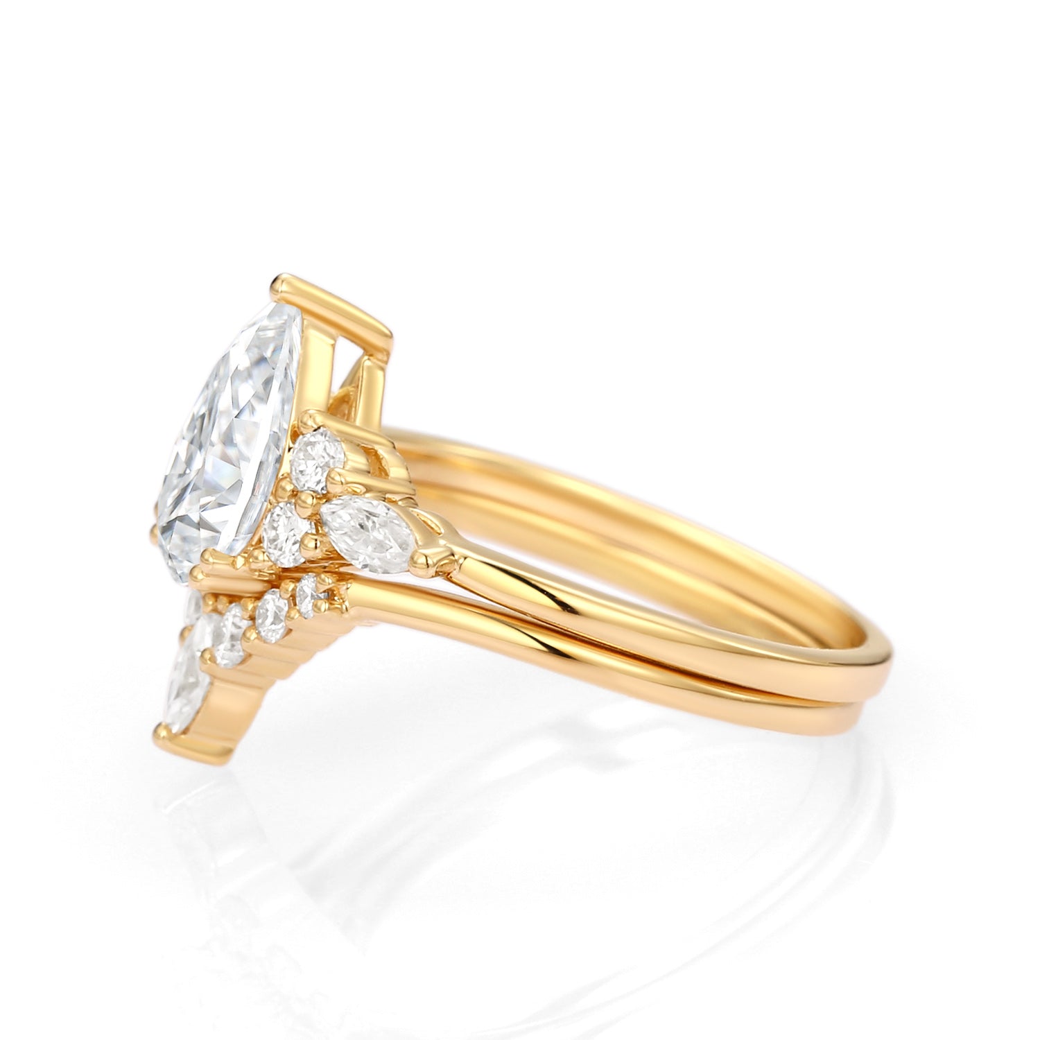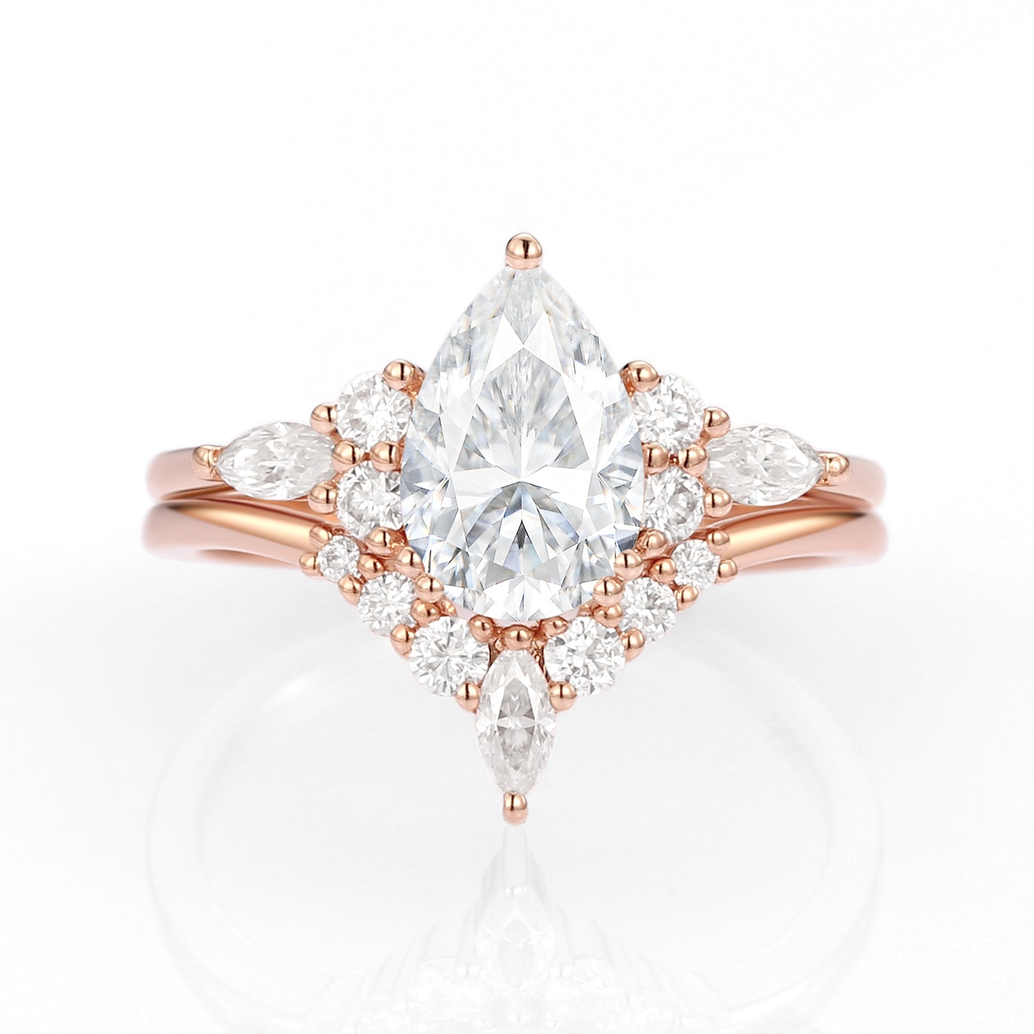 Pear Shaped Moissanite Rose Gold Ring Set 2pcs