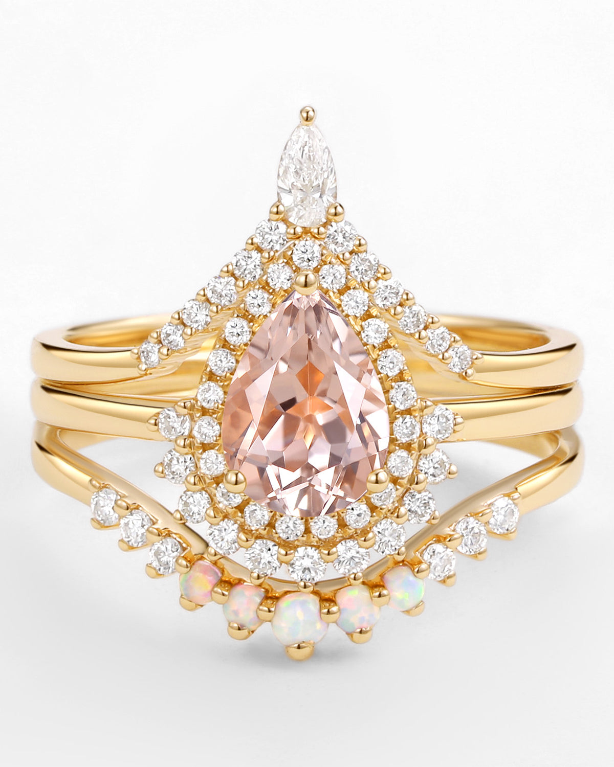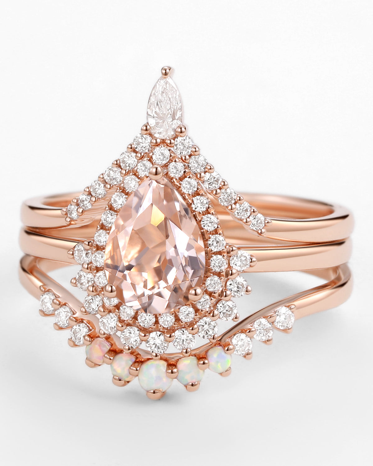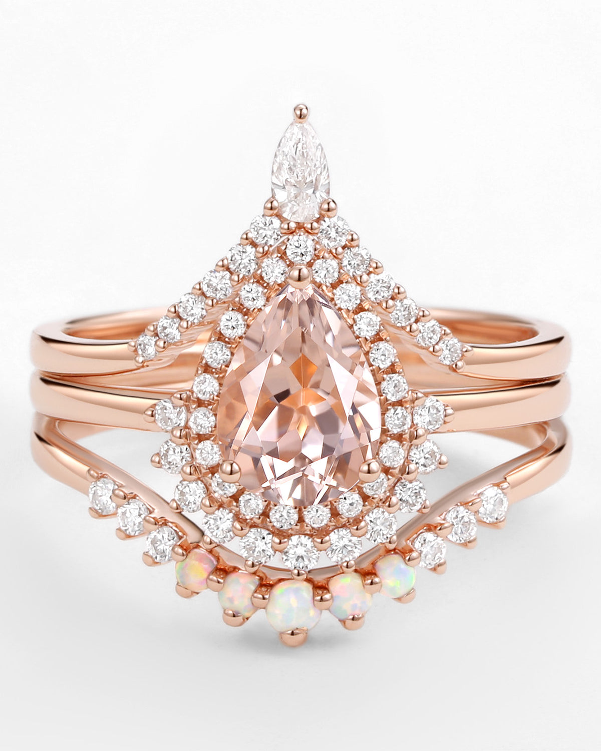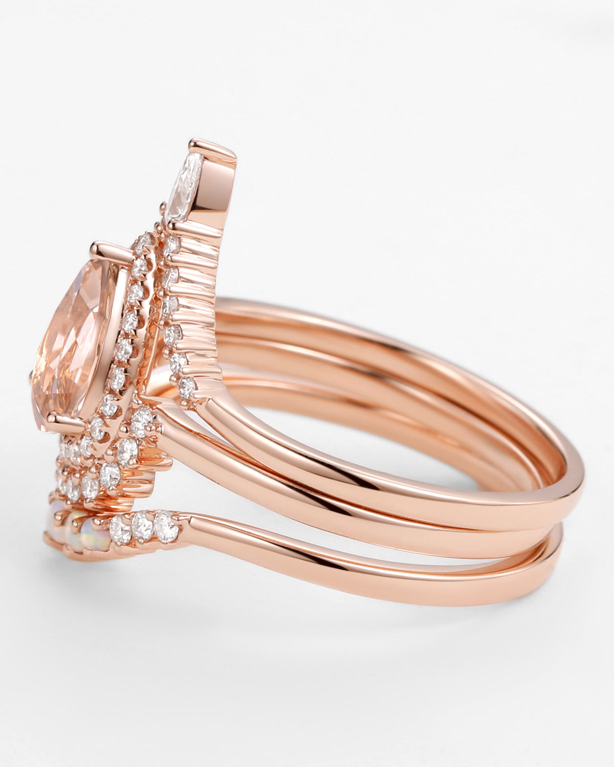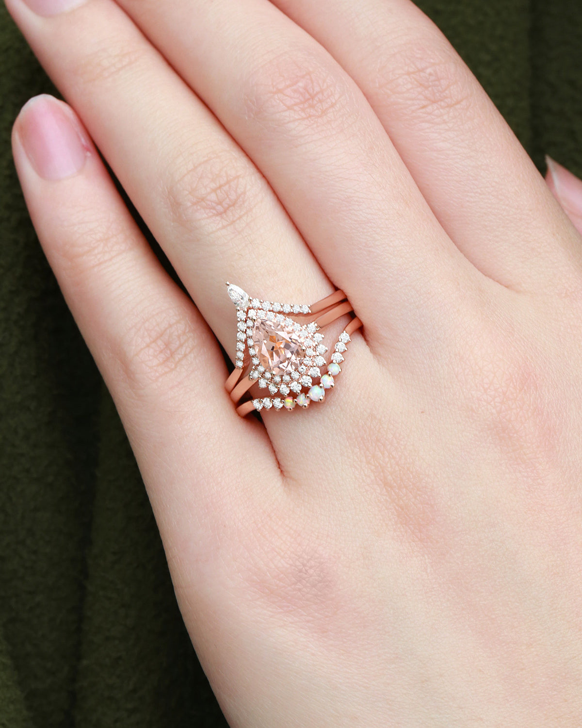 Felicegals offers a variety of morganite rings, including pear-shaped, round, oval, kite-shaped and other cutting shapes, as well as various design styles.