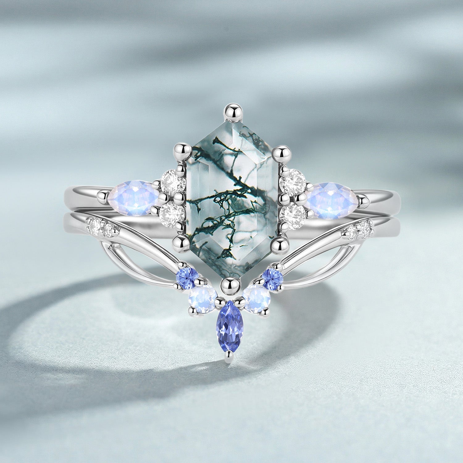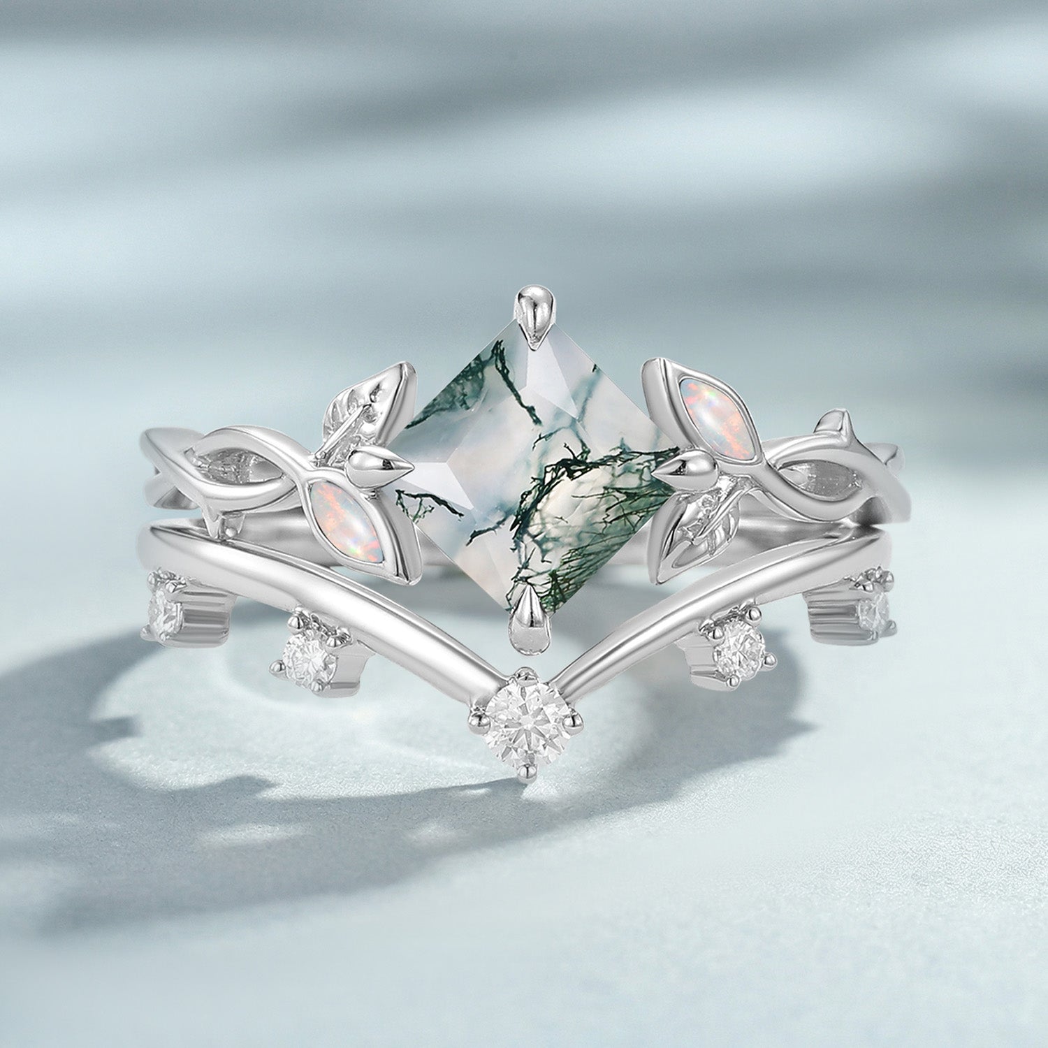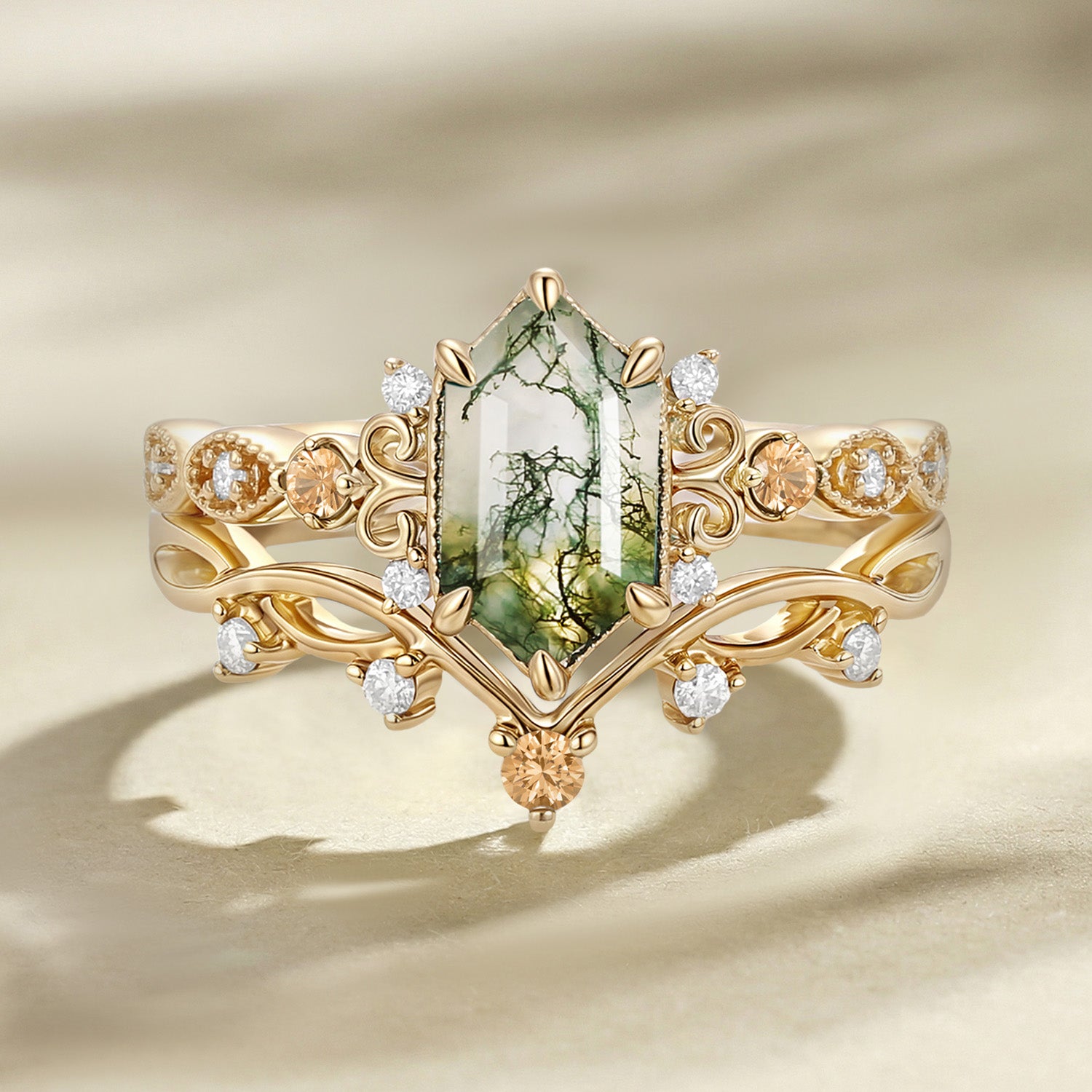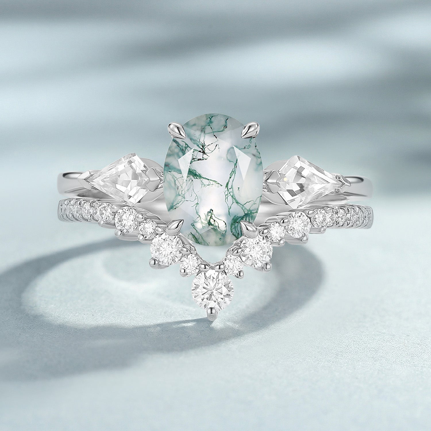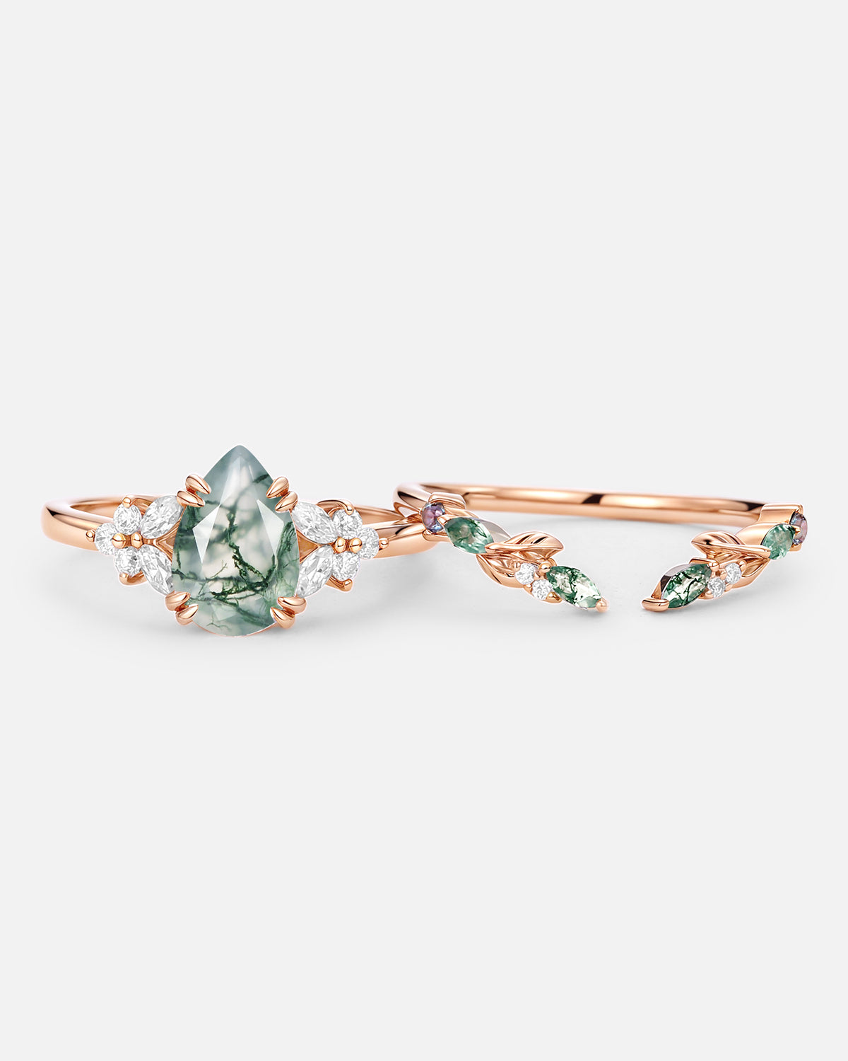 Moss Agate, a popular variety among gemstones and the aristocrat in the agate family, is widely loved and pursued by consumers. Its unique texture and pattern, reminiscent of swaying aquatic plants, creates a magical visual appeal with an excellent sense of depth. Moss agate ring makes it a perfect choice for engagement rings, symbolizing enduring love and the journey through hardship towards a fruitful relationship. Additionally, Moss Agate engagement rings are not only unique and symbolic, but also serve as affordable engagement rings, making them a great option for couples seeking a meaningful yet budget-friendly choice. Just as no two pieces of Moss Agate are identical, so too is every couple's love story unique and enchanting.