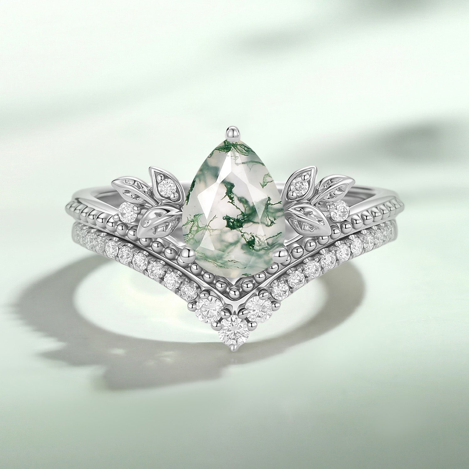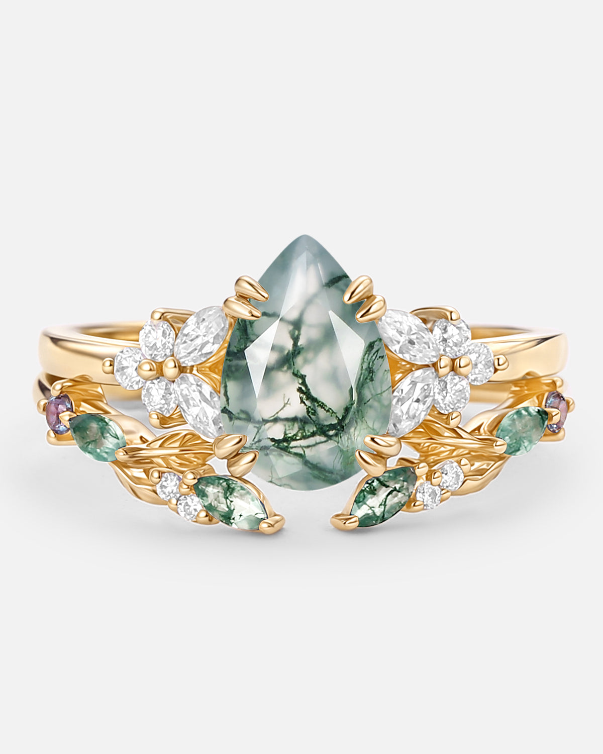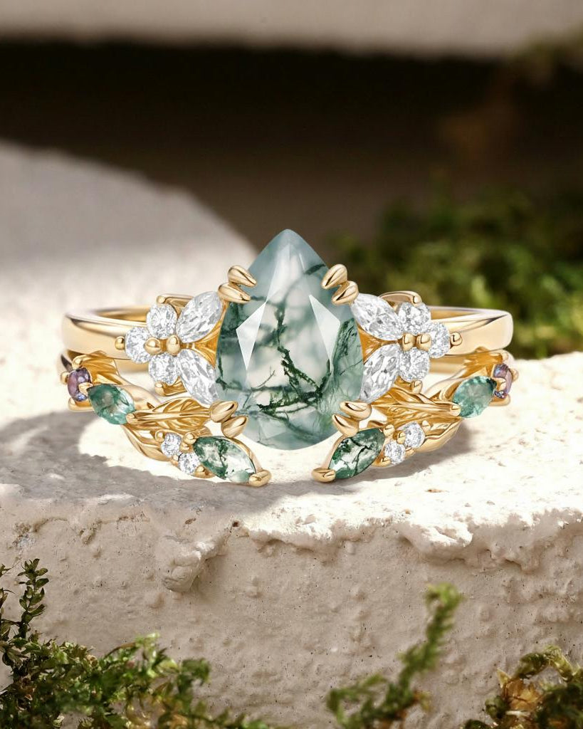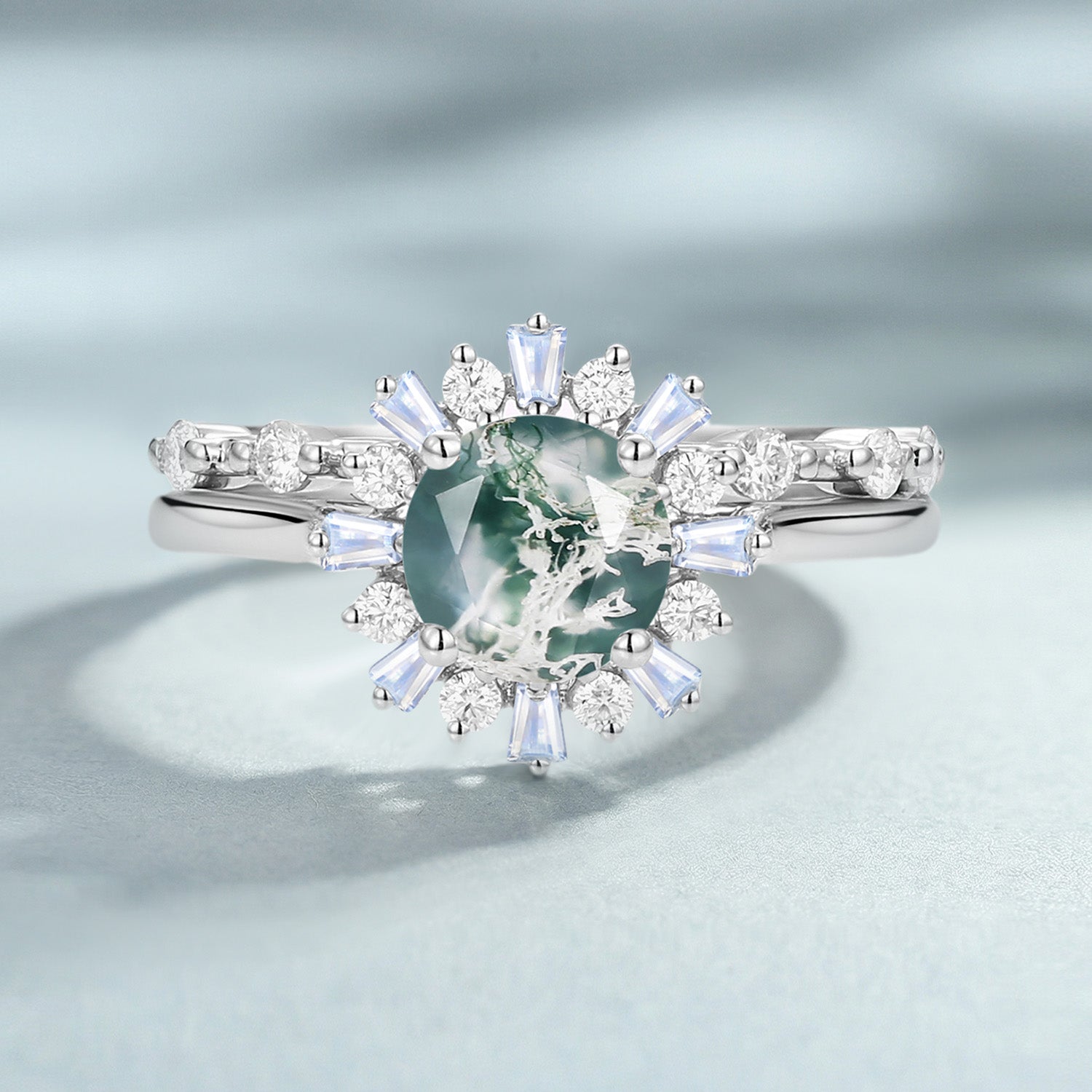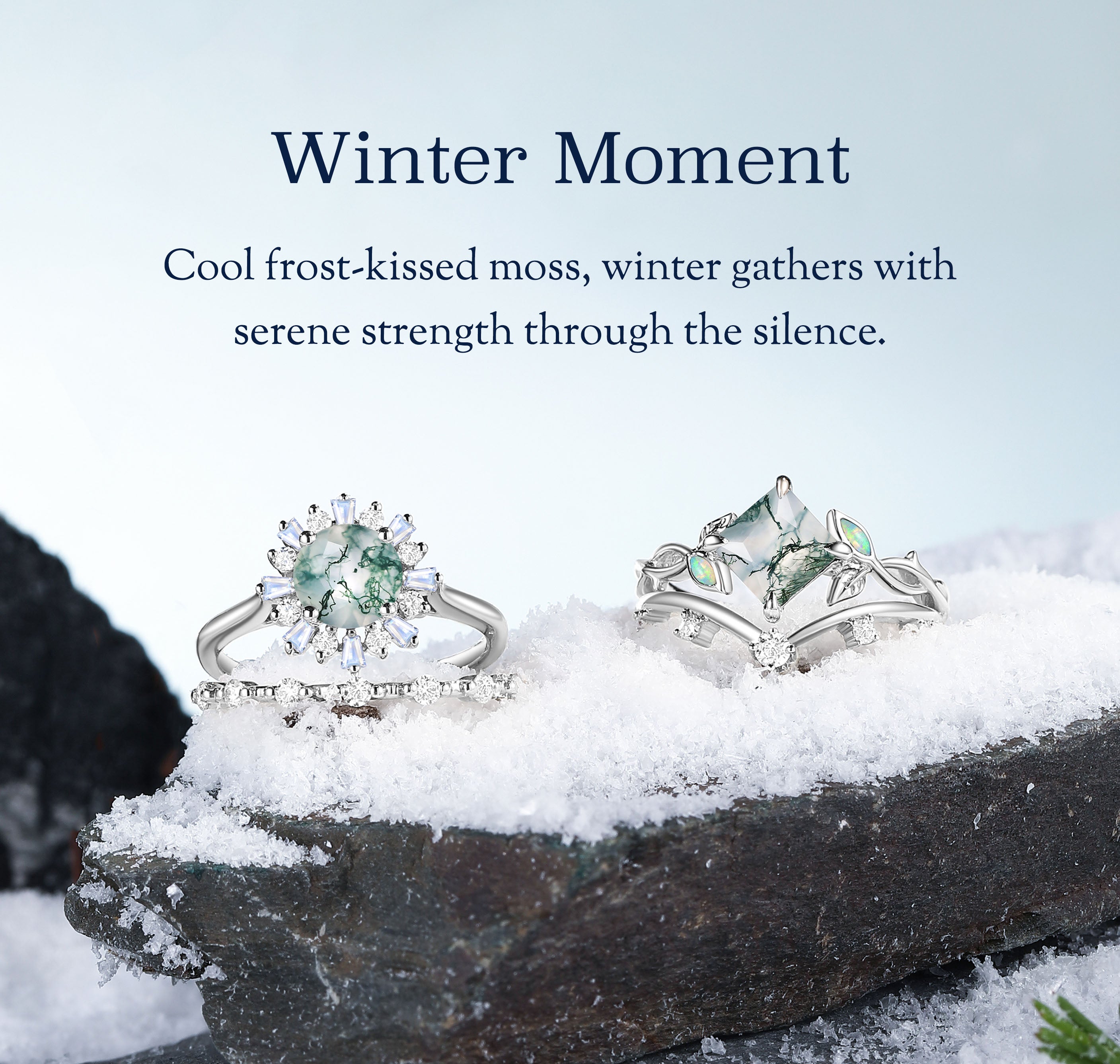 Moss Agate, a popular variety among gemstones and the aristocrat in the agate family, is widely loved and pursued by consumers. Its unique texture and pattern, reminiscent of swaying aquatic plants, creates a magical visual appeal with an excellent sense of depth. Moss agate ring makes it a perfect choice for engagement rings, symbolizing enduring love and the journey through hardship towards a fruitful relationship. Additionally, Moss Agate engagement rings are not only unique and symbolic, but also serve as affordable engagement rings, making them a great option for couples seeking a meaningful yet budget-friendly choice. Just as no two pieces of Moss Agate are identical, so too is every couple's love story unique and enchanting.