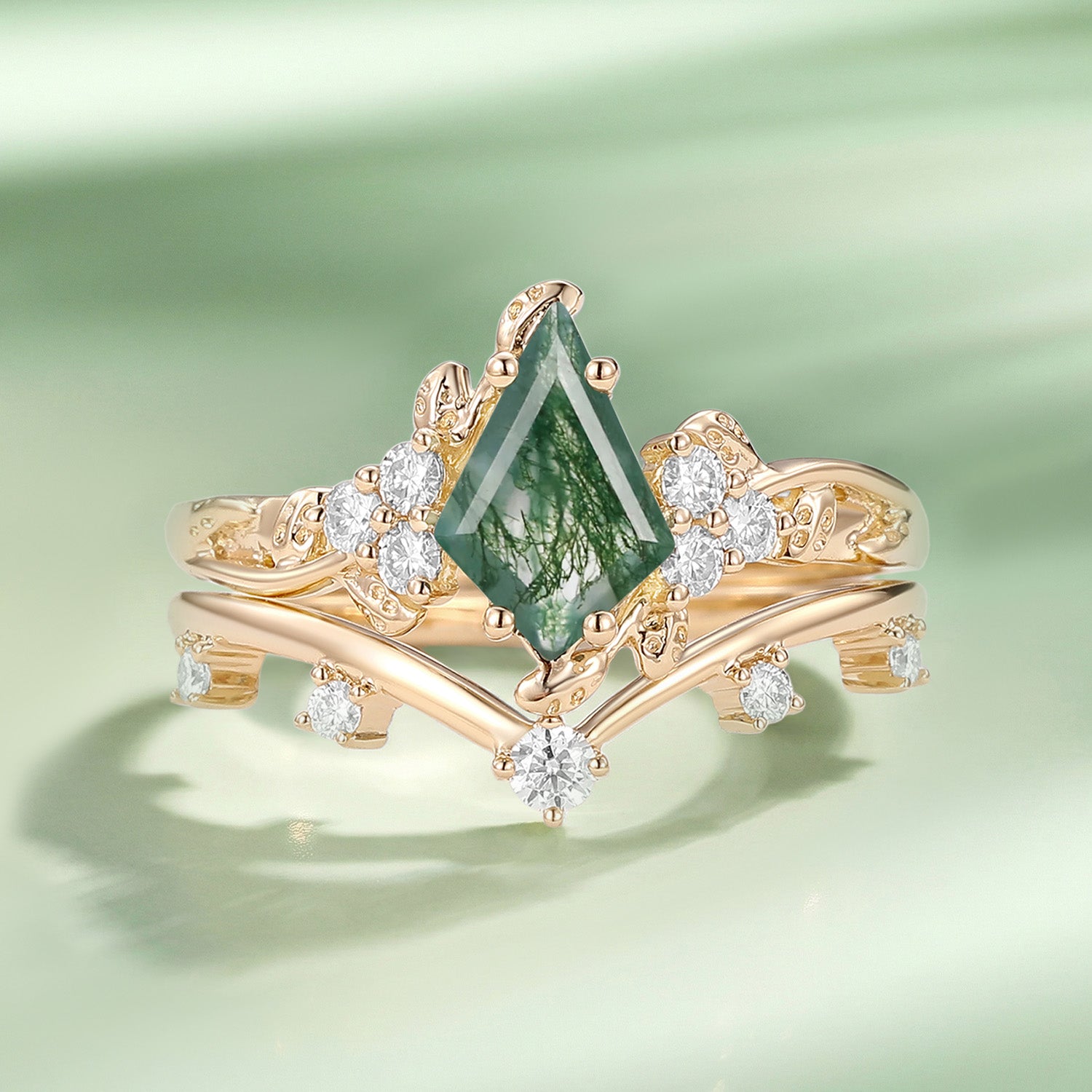 Felicegals Moss Agate Rings includes leaf-shaped moss agate wedding rings, moss agate engagement rings and unique kite-cut moss agate rings. Each moss agate ring is dedicated to someone special.