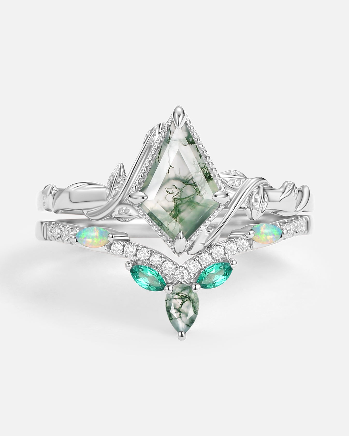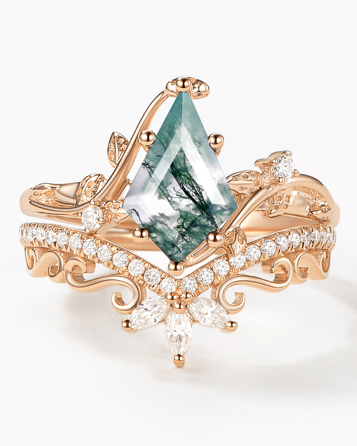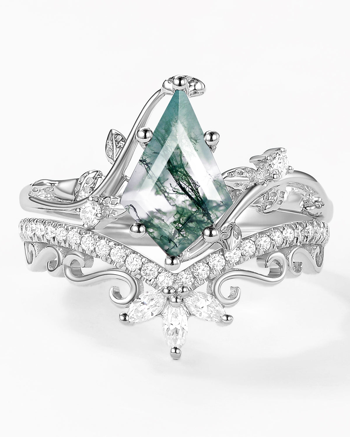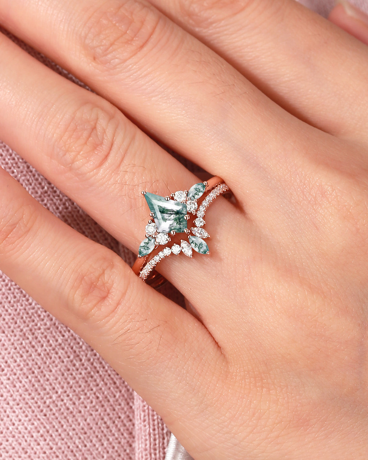 We offer you Kite-shaped Moss Agate rings, the Kite-shaped cut makes these rings even more eye-catching, showcasing the beautiful texture and color of Moss Agate. Each ring is carefully selected to ensure the perfect combination of quality and craftsmanship. Whether given as a gift or worn on your own, these kite-shaped moss agate rings will become a treasured addition to your collection. Come and choose your favorite style to show your unique personality and taste!
