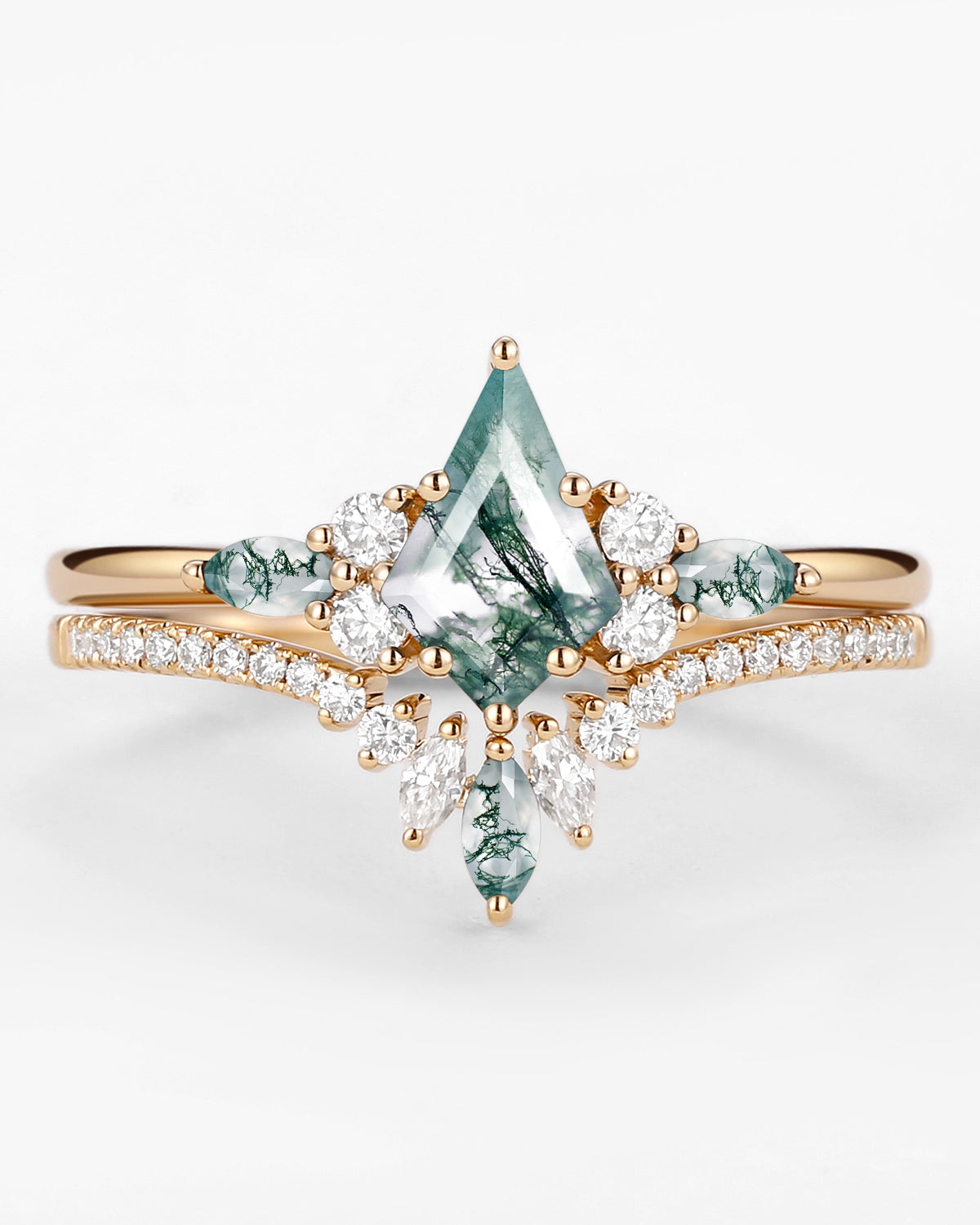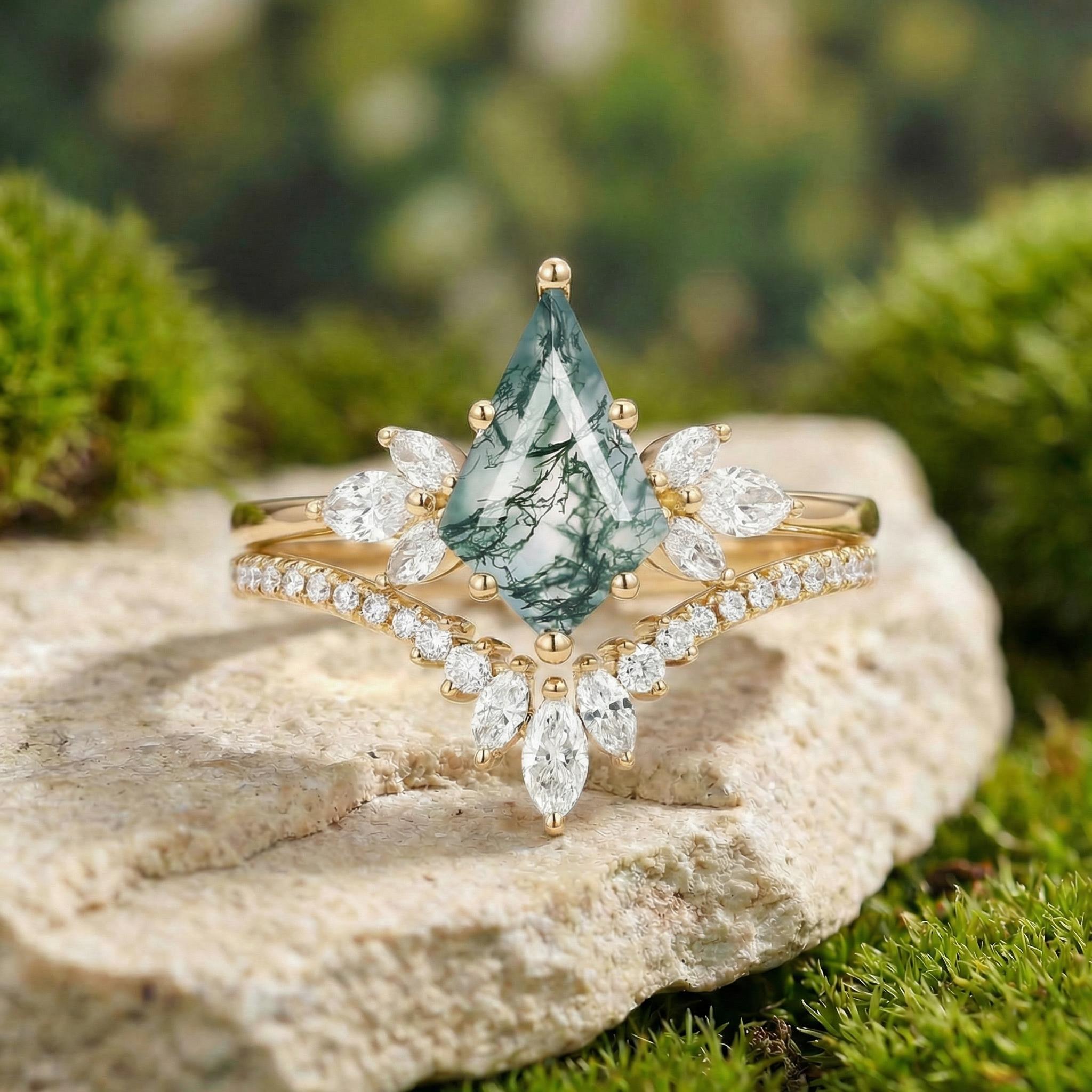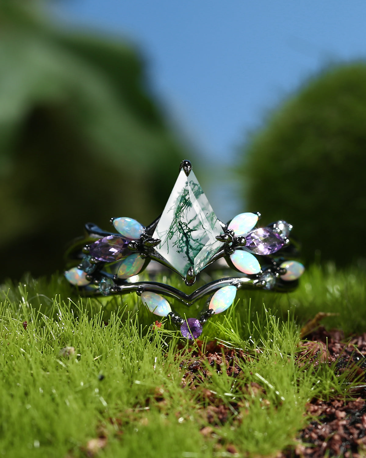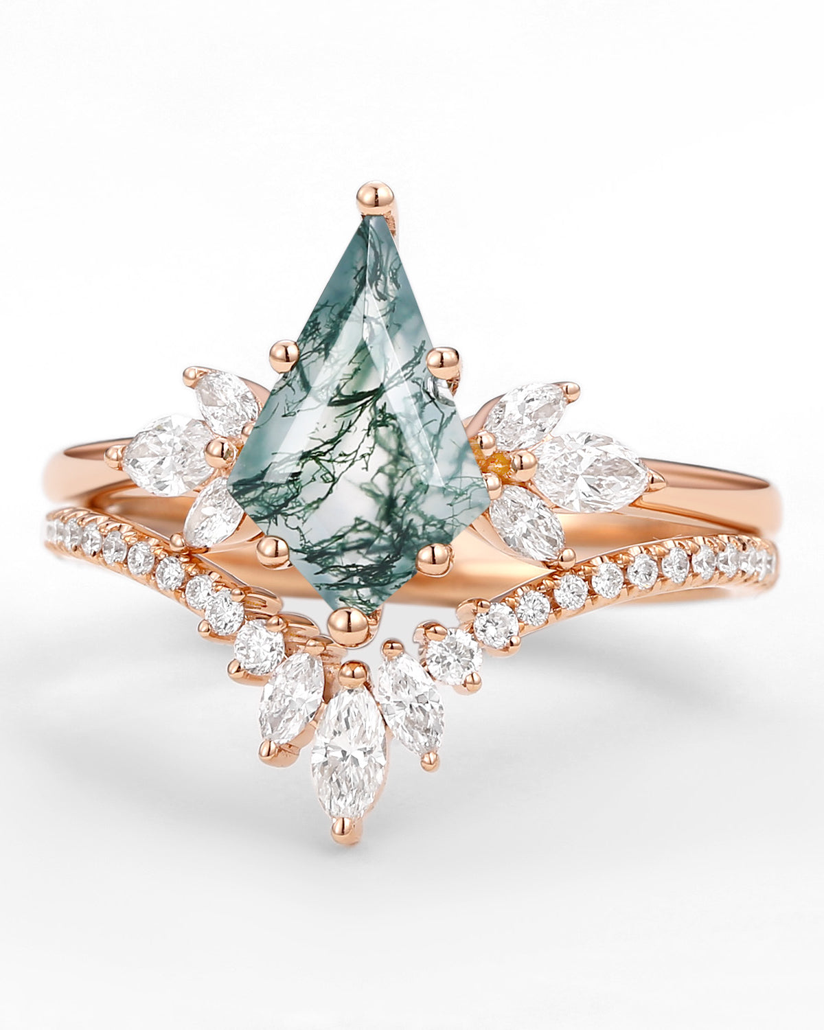 We offer you Kite-shaped Moss Agate rings, the Kite-shaped cut makes these rings even more eye-catching, showcasing the beautiful texture and color of Moss Agate. Each ring is carefully selected to ensure the perfect combination of quality and craftsmanship. Whether given as a gift or worn on your own, these kite-shaped moss agate rings will become a treasured addition to your collection. Come and choose your favorite style to show your unique personality and taste!