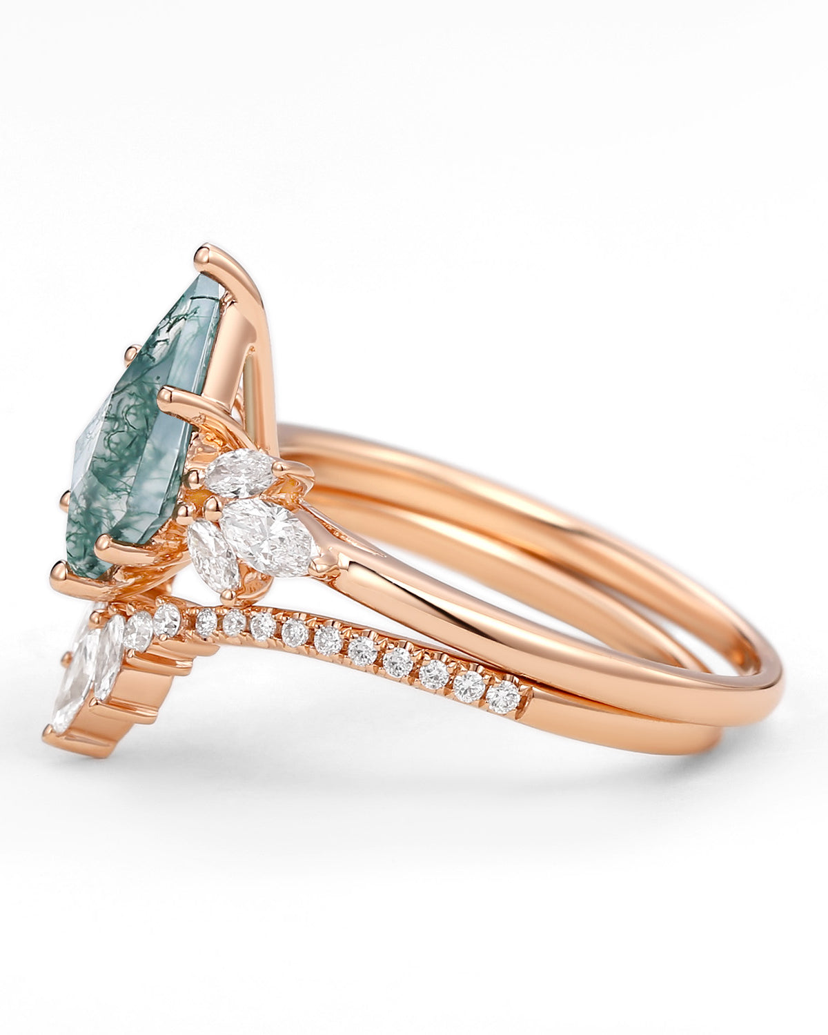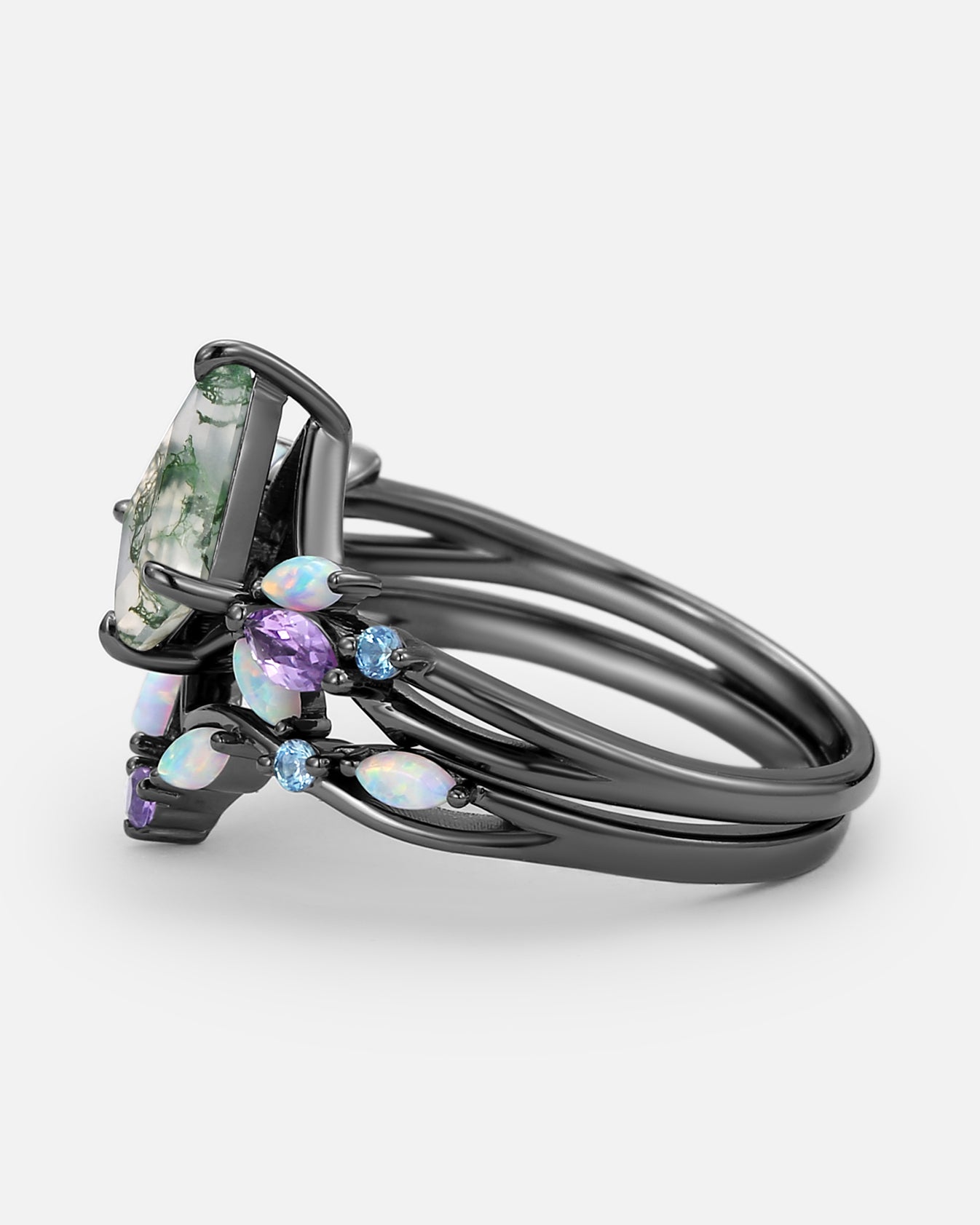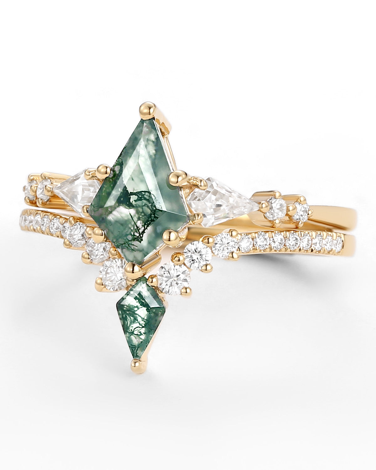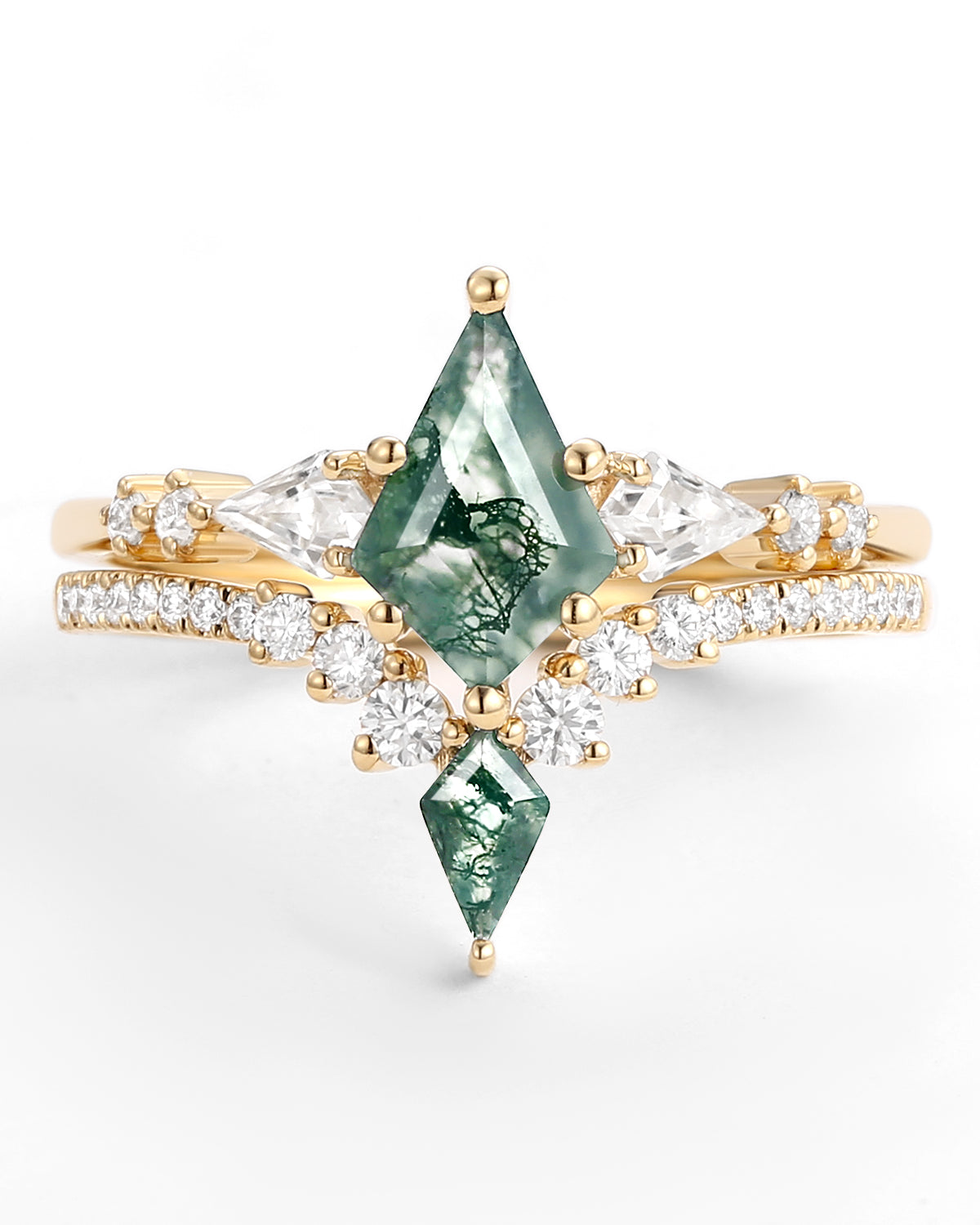 We offer you Kite-shaped Moss Agate rings, the Kite-shaped cut makes these rings even more eye-catching, showcasing the beautiful texture and color of Moss Agate. Each ring is carefully selected to ensure the perfect combination of quality and craftsmanship. Whether given as a gift or worn on your own, these kite-shaped moss agate rings will become a treasured addition to your collection. Come and choose your favorite style to show your unique personality and taste!