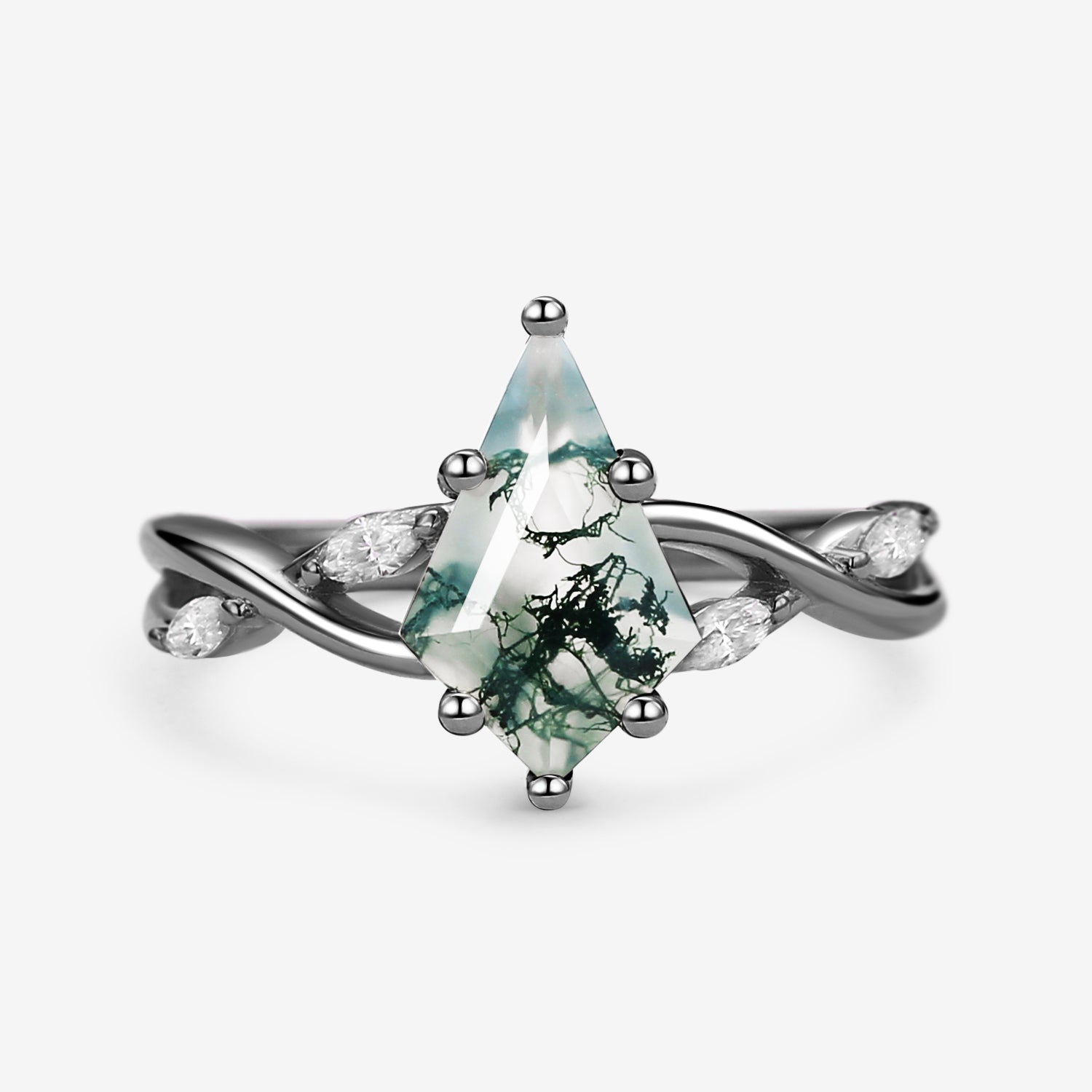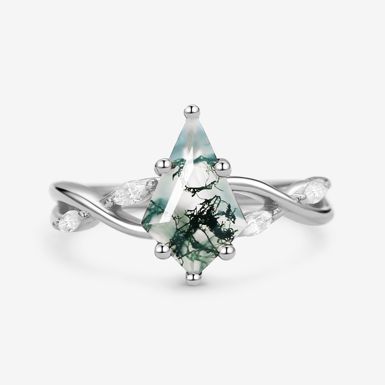 Infinity Kite Cut Moss Agate Classic Engagement Ring - Vera