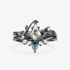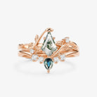 Unique Kite Cut Moss Agate & Teal Sapphire Leafy Bridal Ring Sets 2pcs - Willow