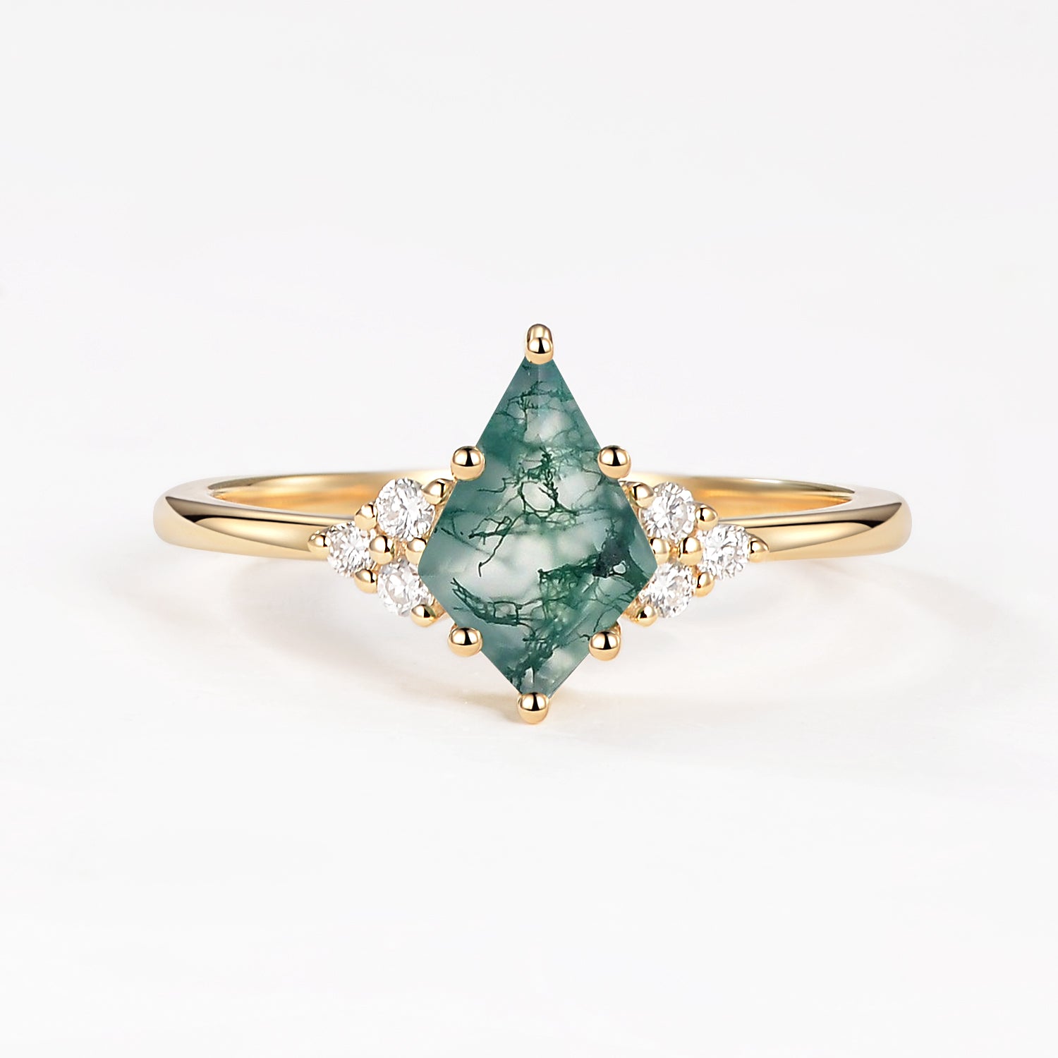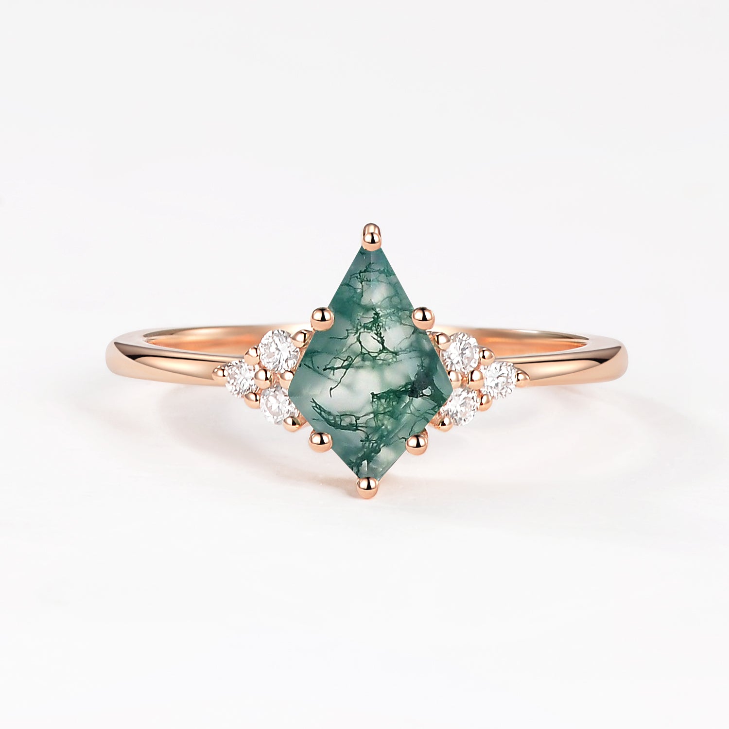 Unique Moss Agate Kite Cut Engagement Ring