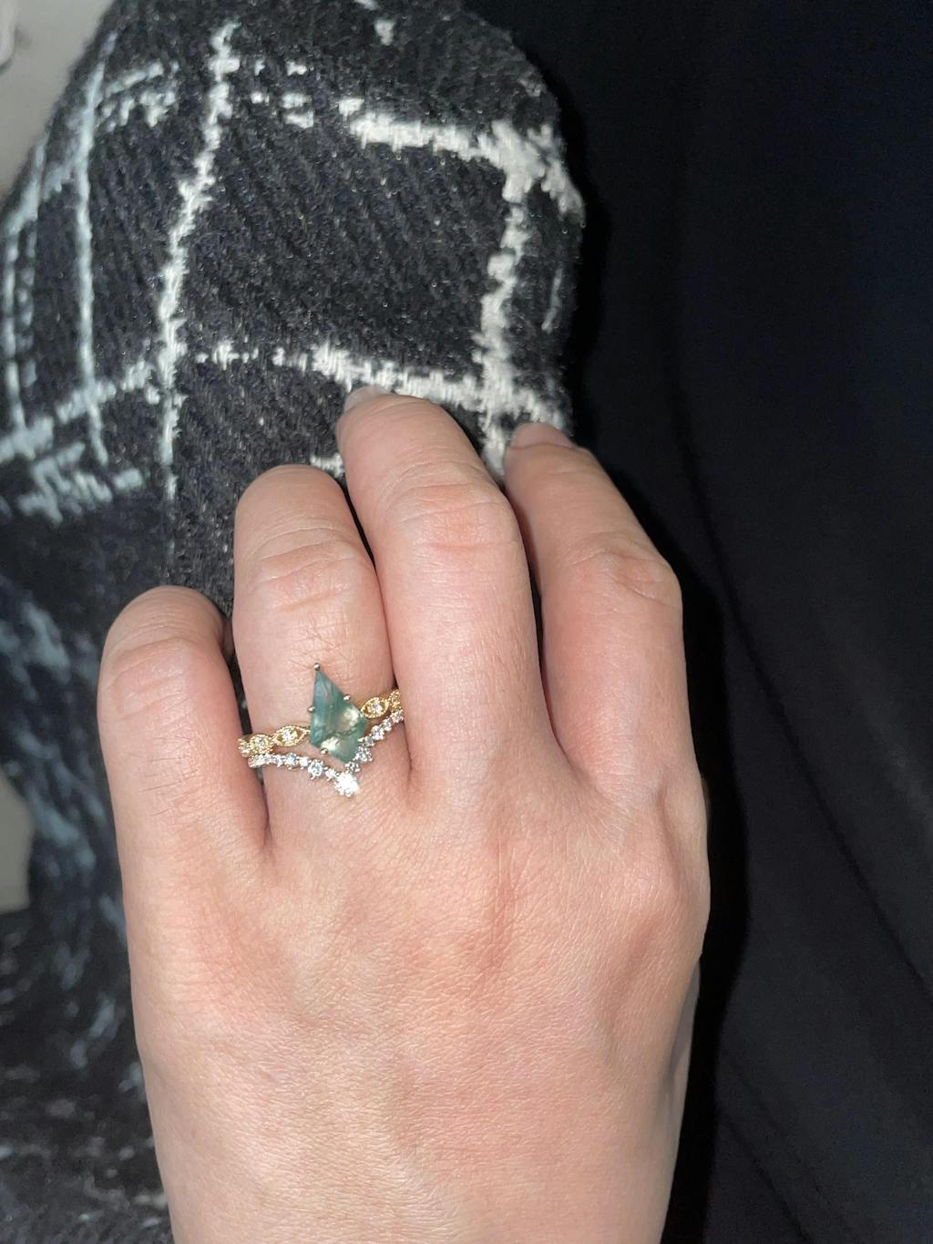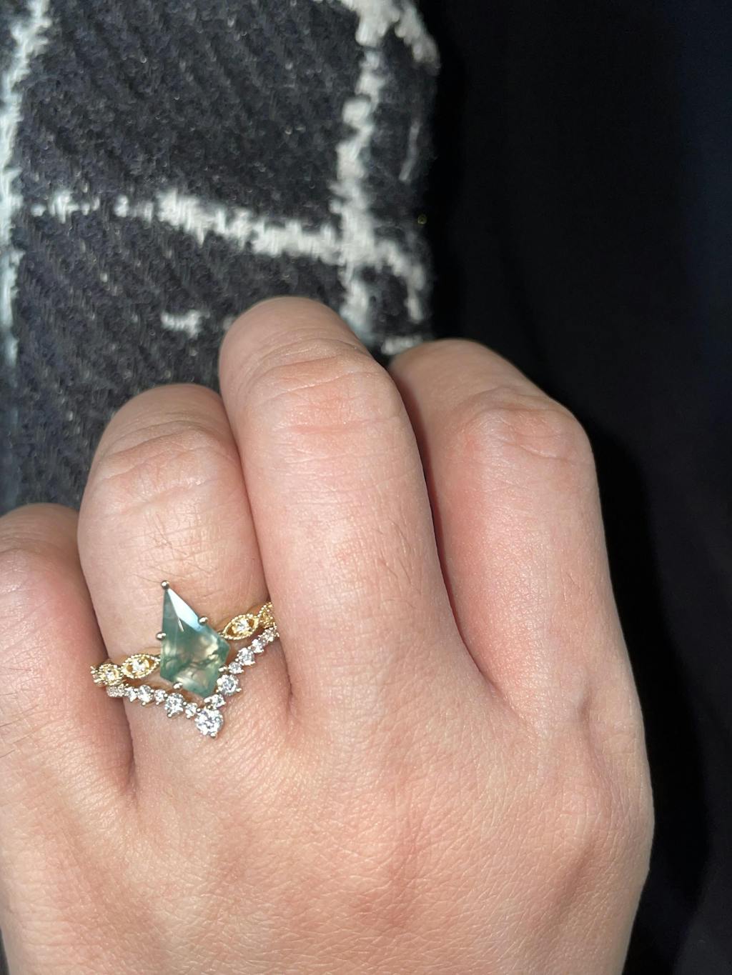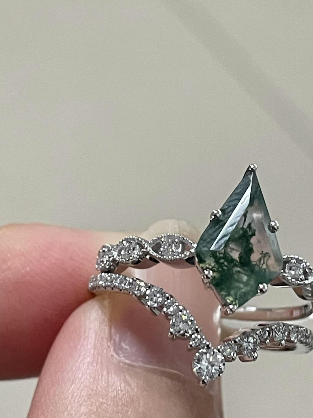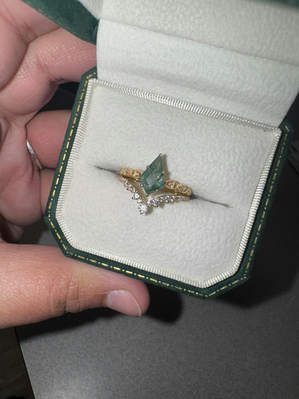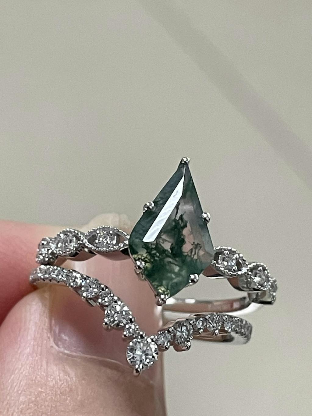 2.0ct Vintage Kite Cut Moss Agate Engagement Ring Set 2pcs - Winona