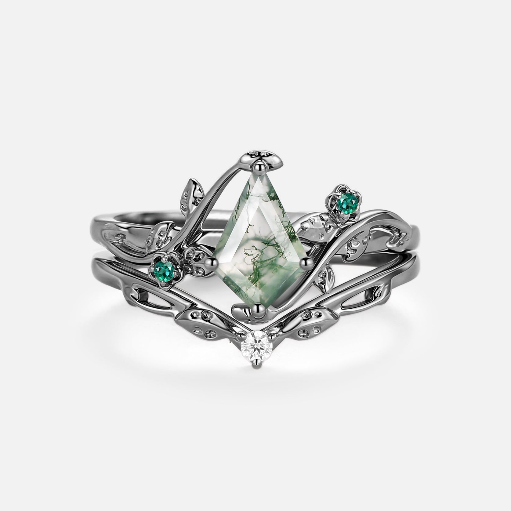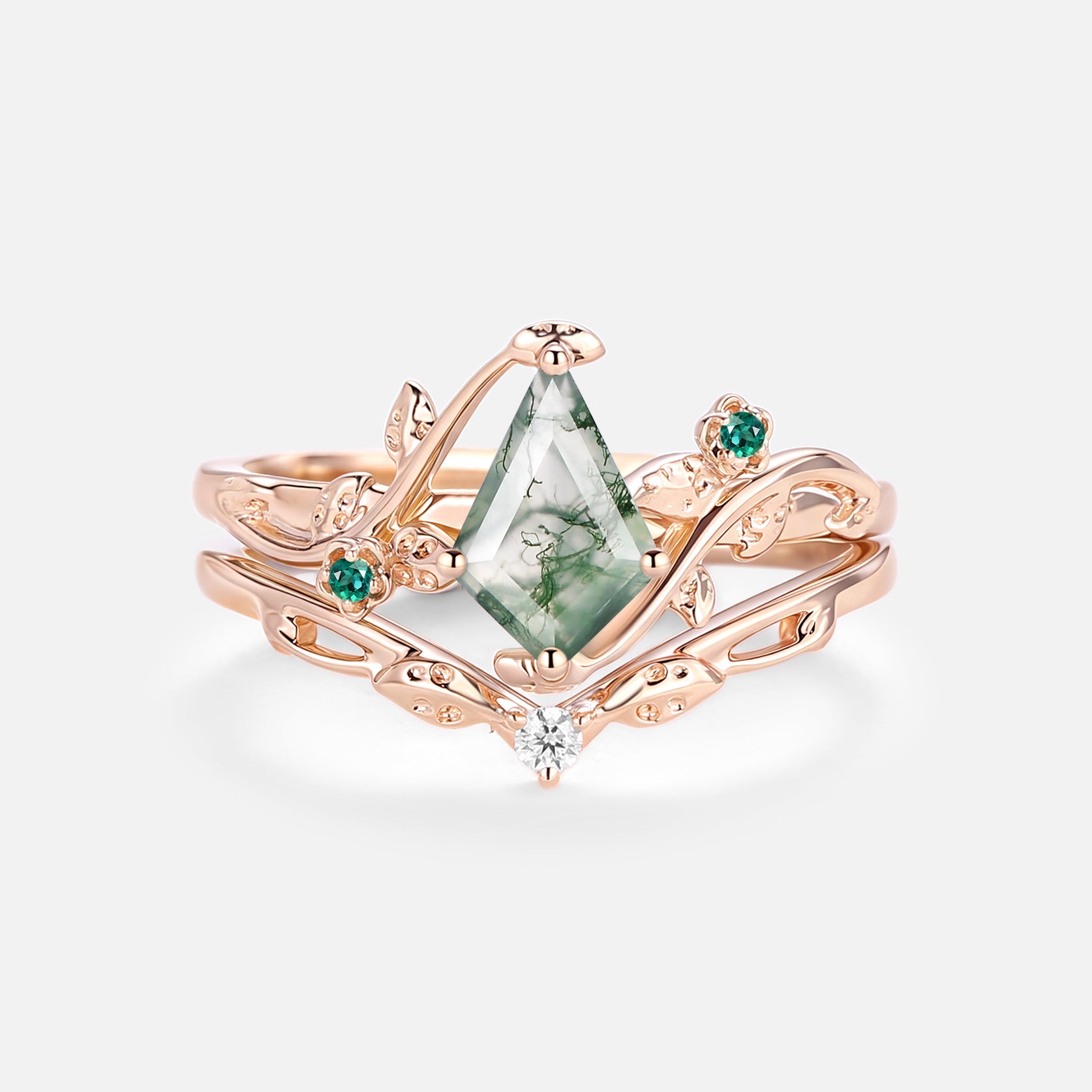 We offer you Kite-shaped Moss Agate rings, the Kite-shaped cut makes these rings even more eye-catching, showcasing the beautiful texture and color of Moss Agate. Each ring is carefully selected to ensure the perfect combination of quality and craftsmanship. Whether given as a gift or worn on your own, these kite-shaped moss agate rings will become a treasured addition to your collection. Come and choose your favorite style to show your unique personality and taste!