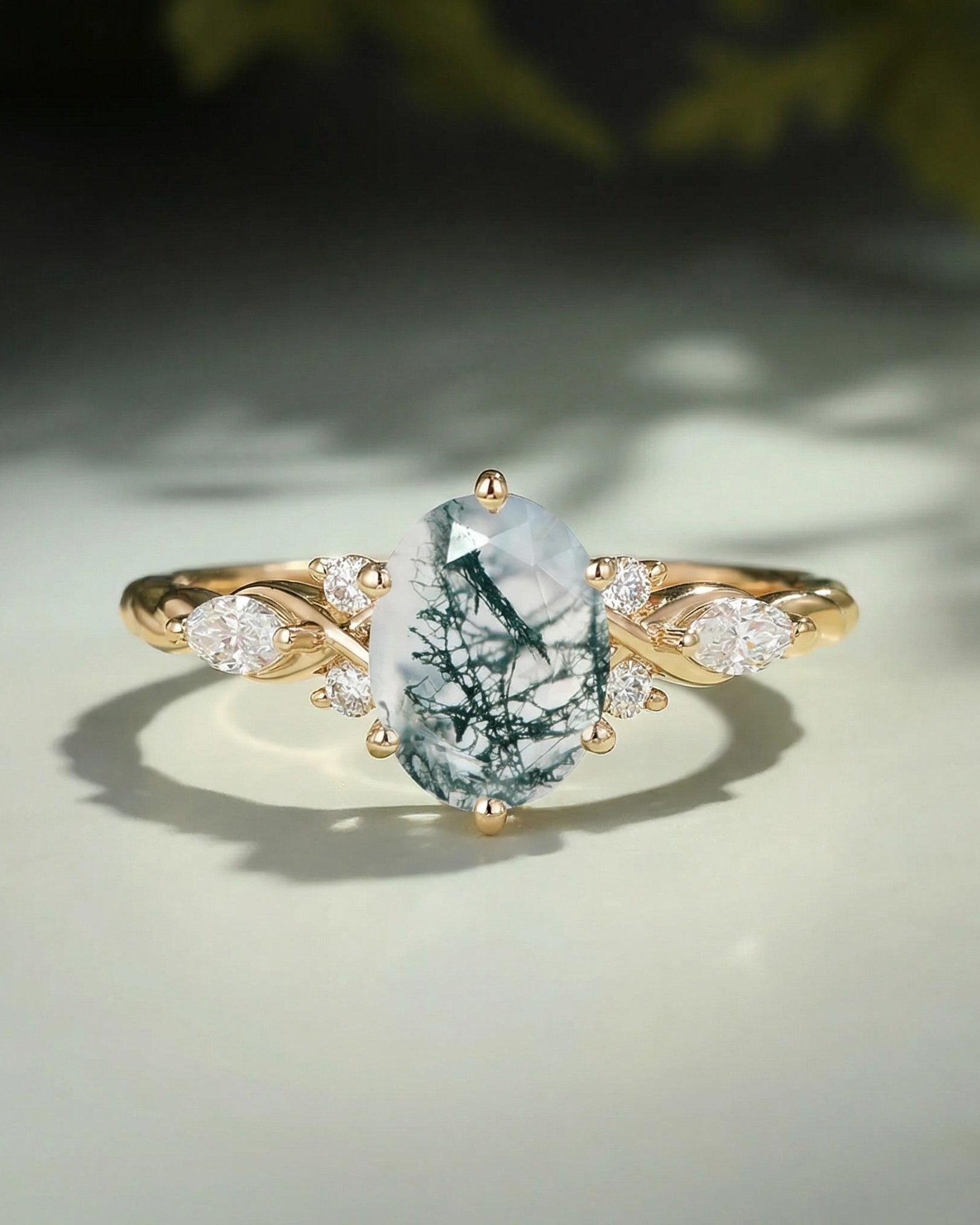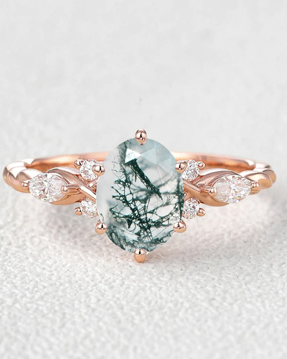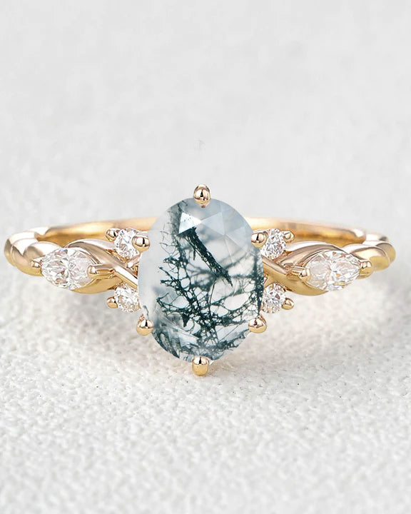 Moss Agate Rings - Shape - Oval Cut