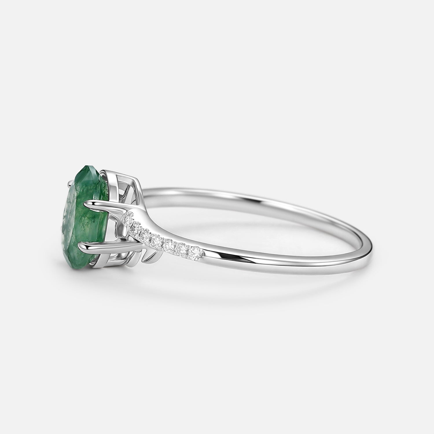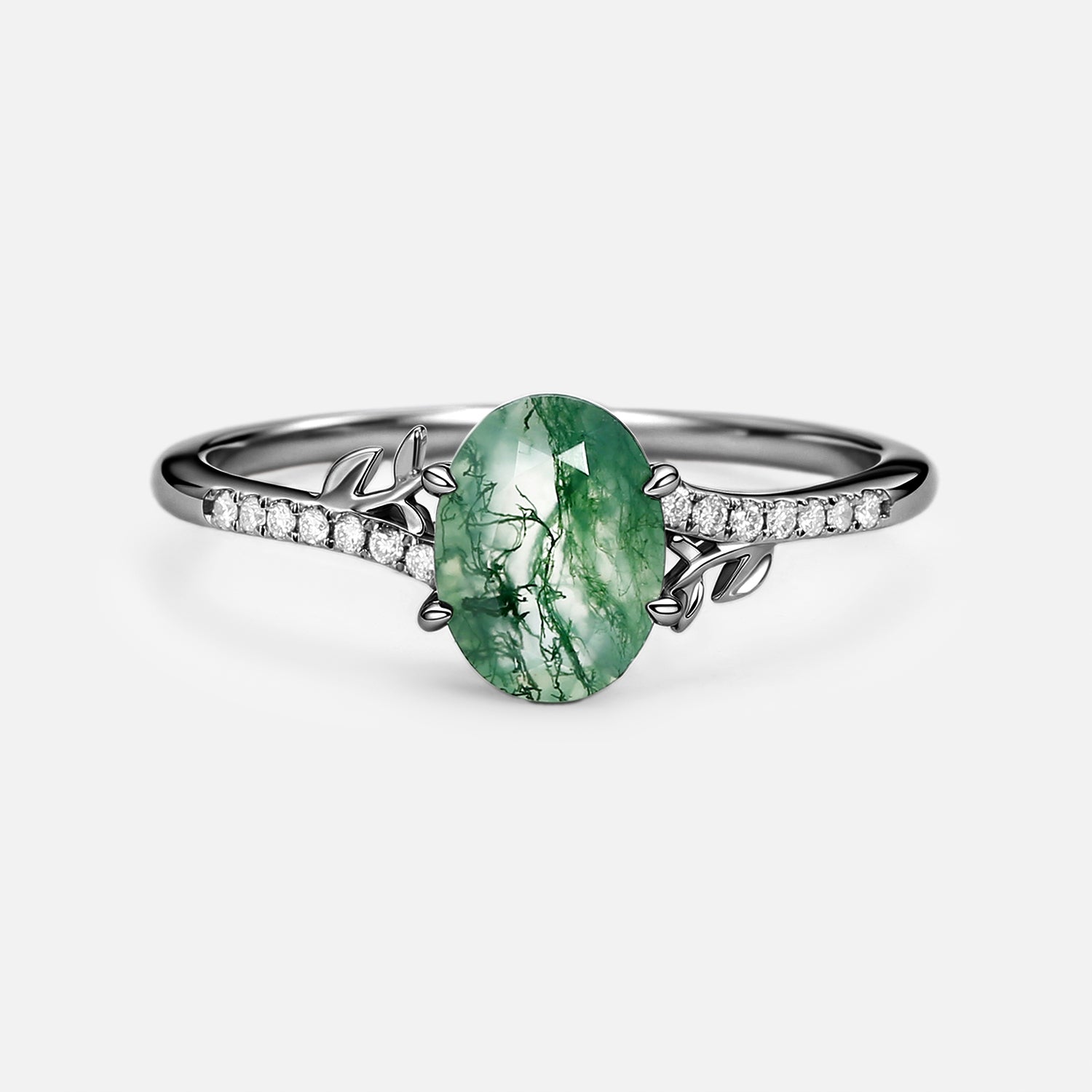 3.5ct Moss Agate Oval Shaped Leafy Engagement Ring