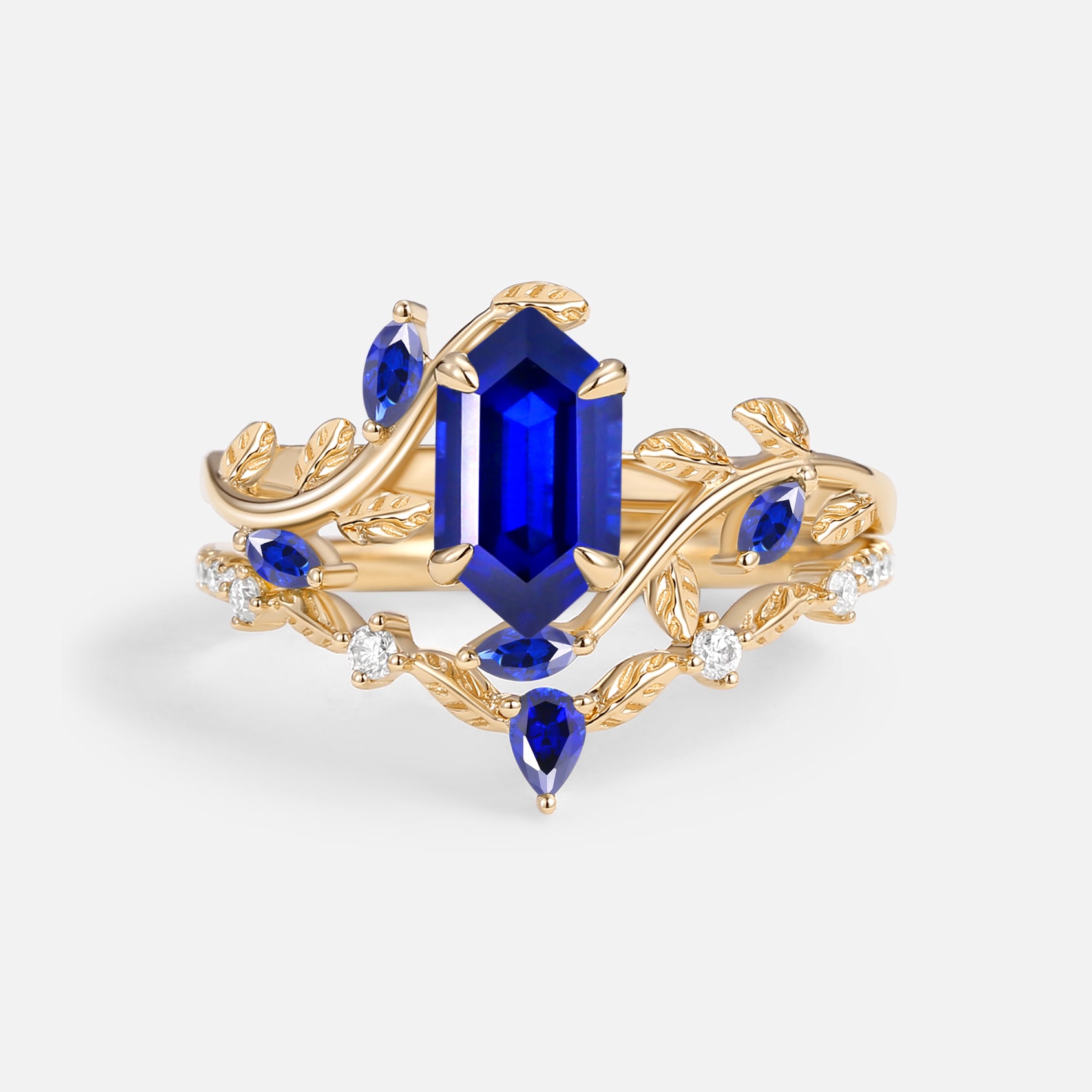 - 14k solid yellow gold engagement ring set