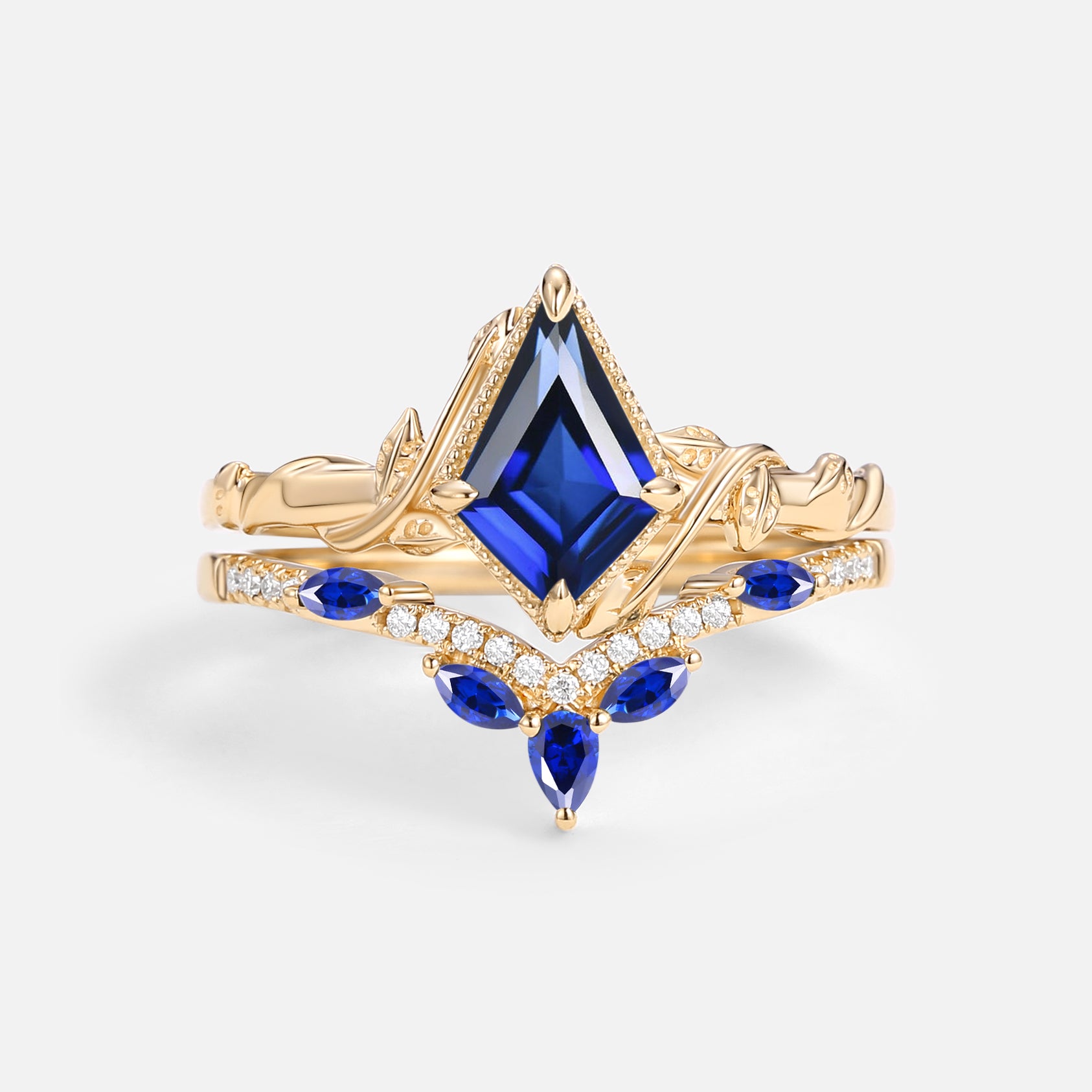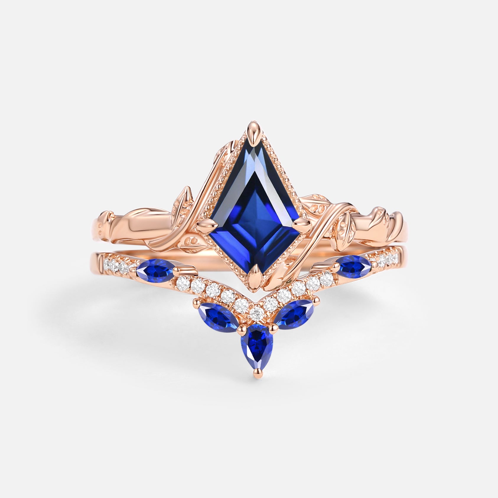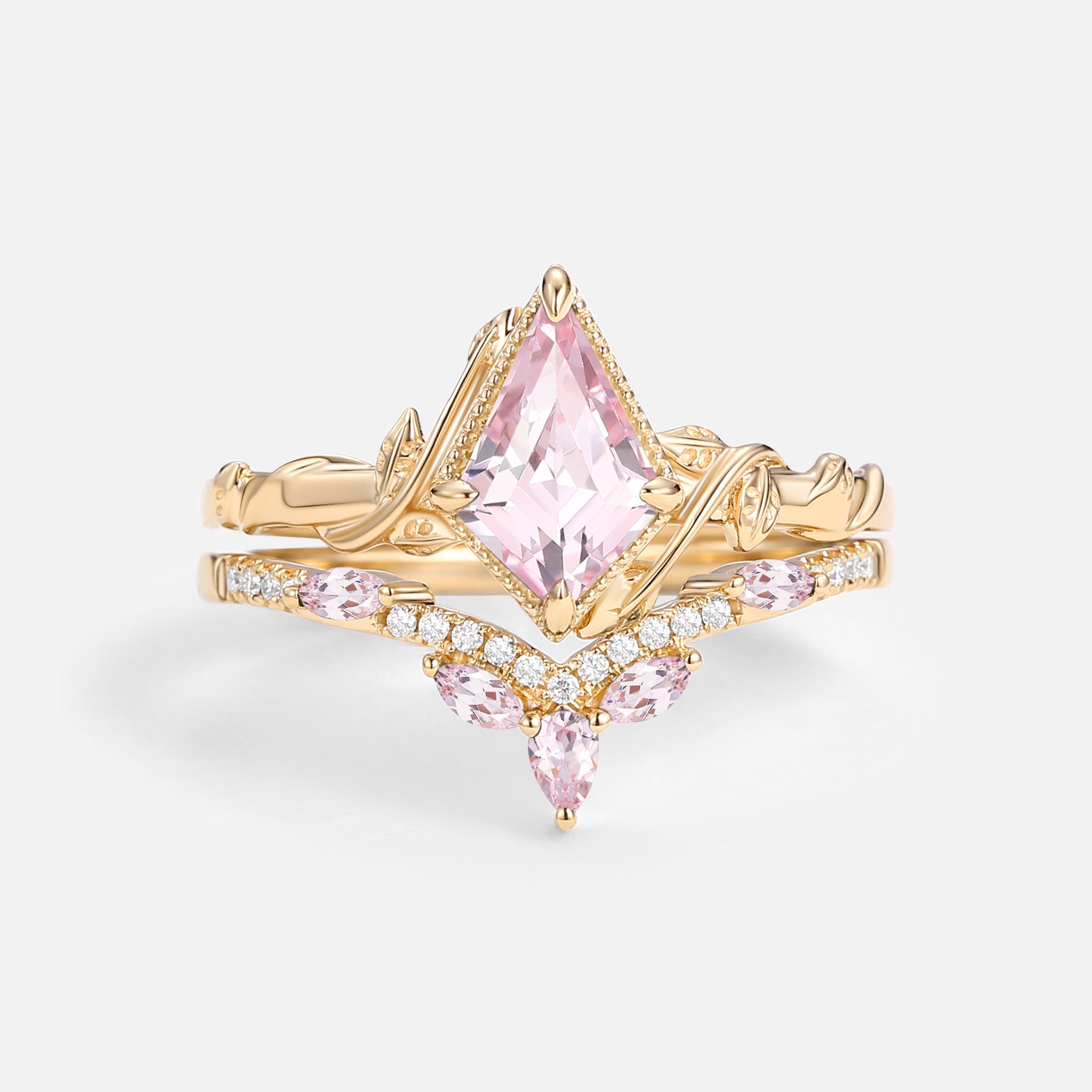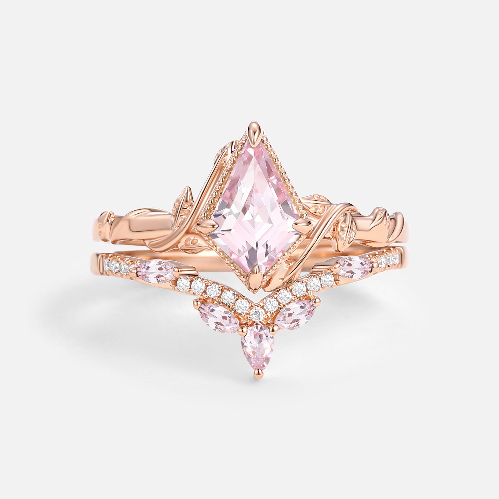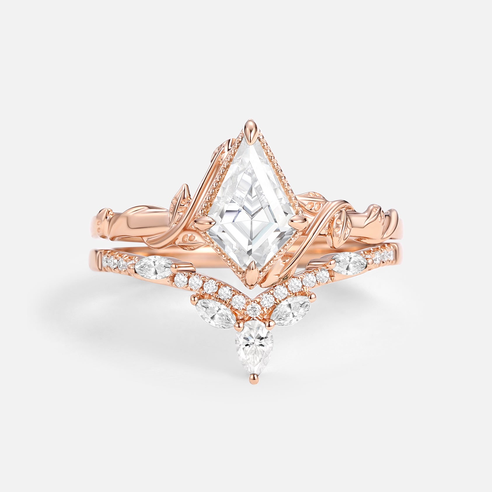 Kite Cut Moss Agate Leafy Engagement Ring Sets 2pcs - Lark
