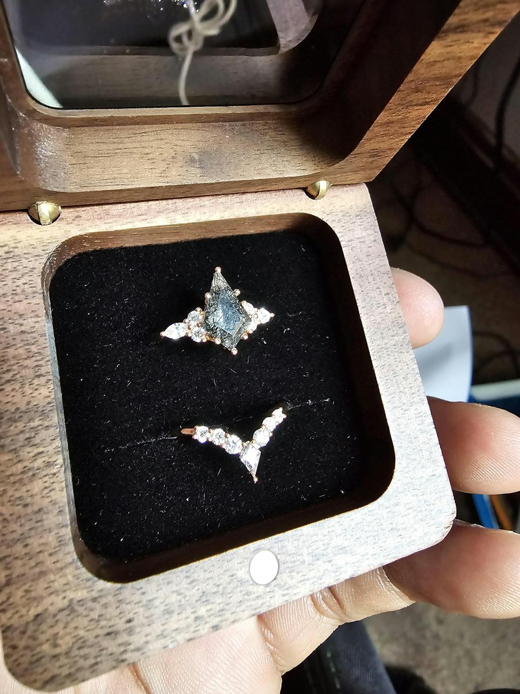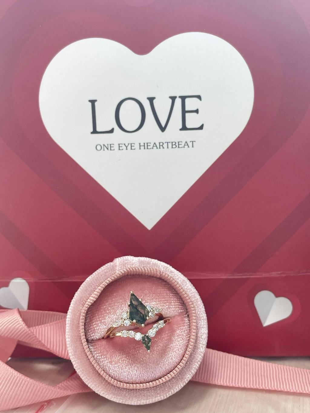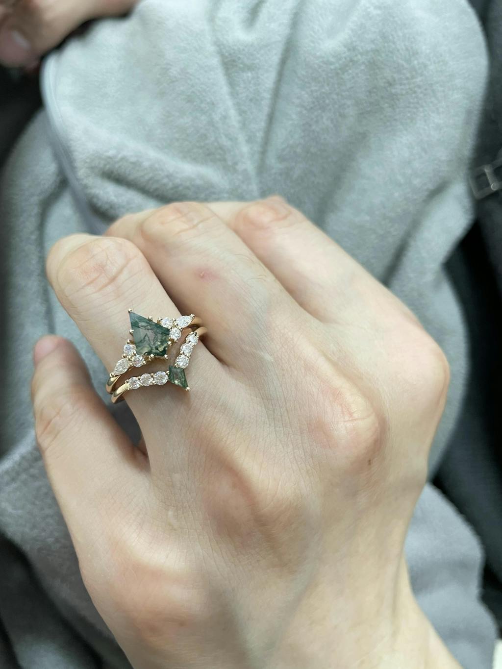 Twin Flames - Kite Cut Unique Moss Agate Engagement Ring Sets 2pcs - Zoey
