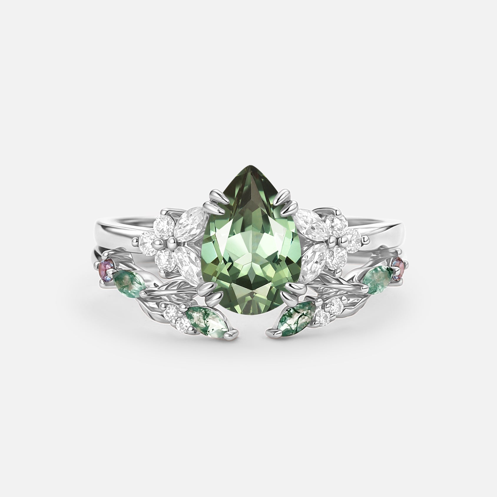 - Colorless Moissanite & Moss Agate & Lab Alexandrite Accents