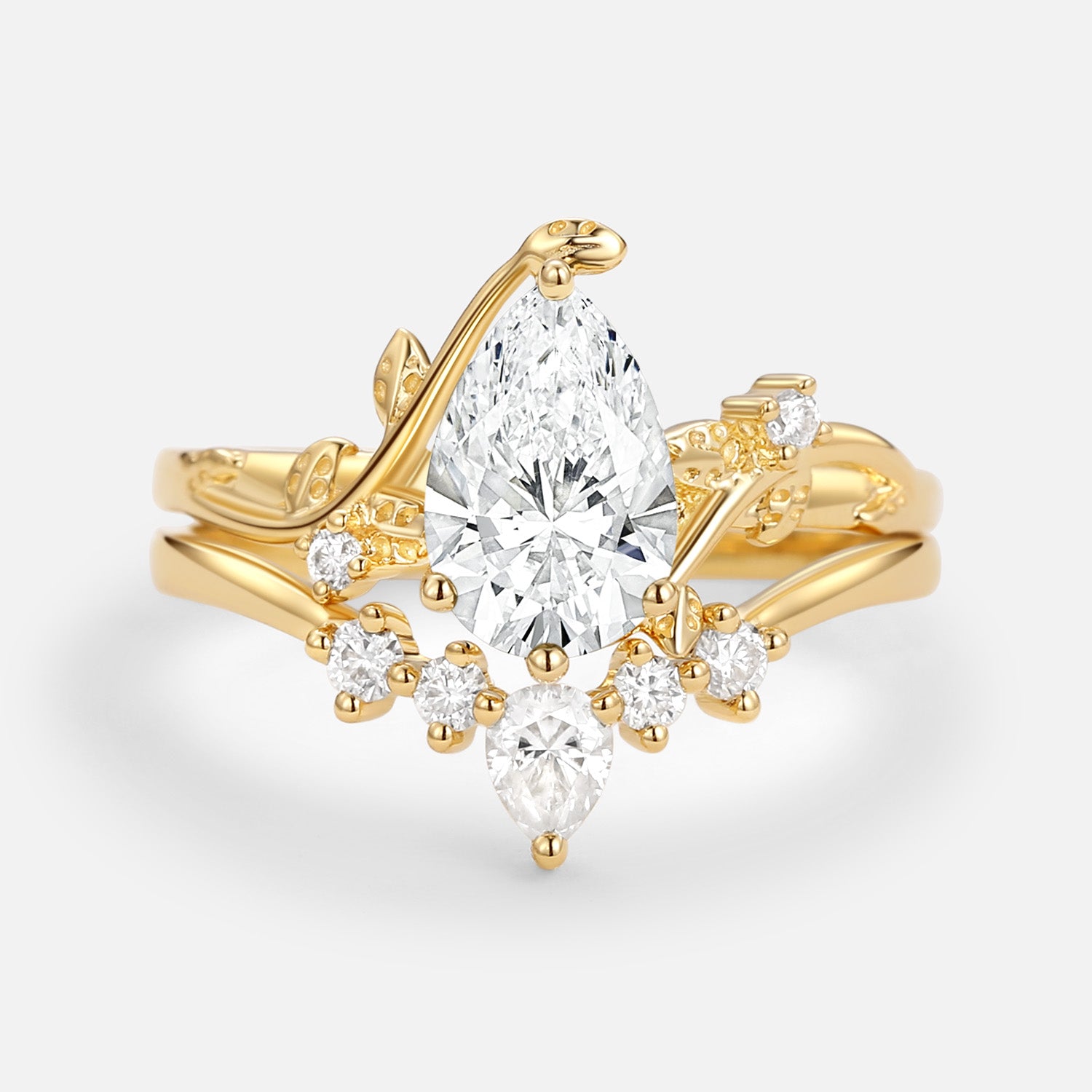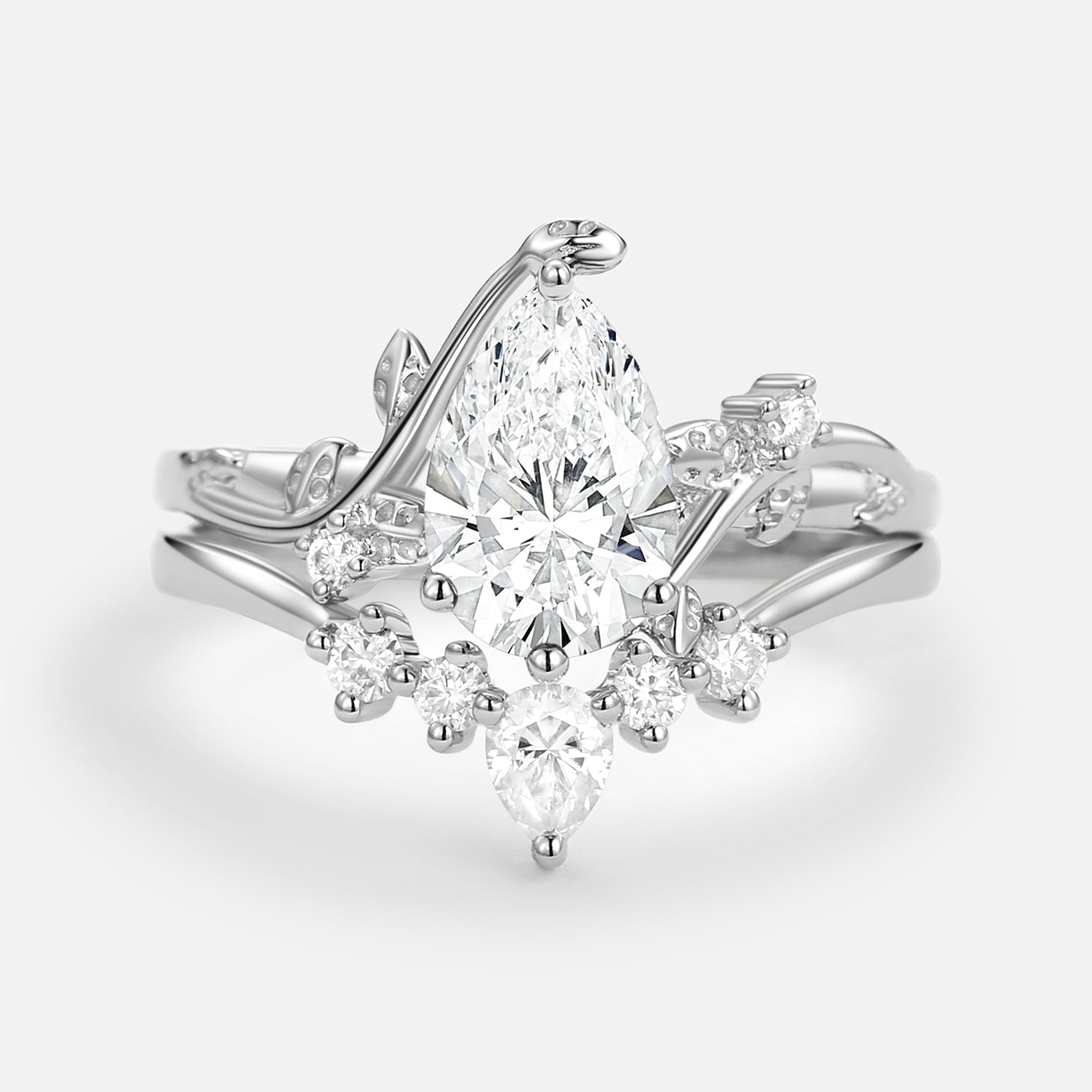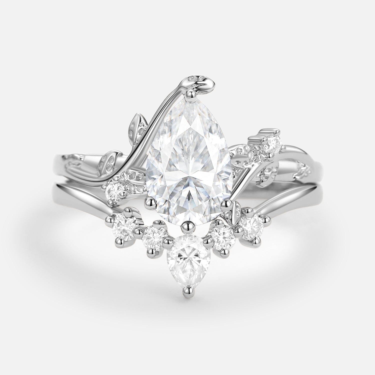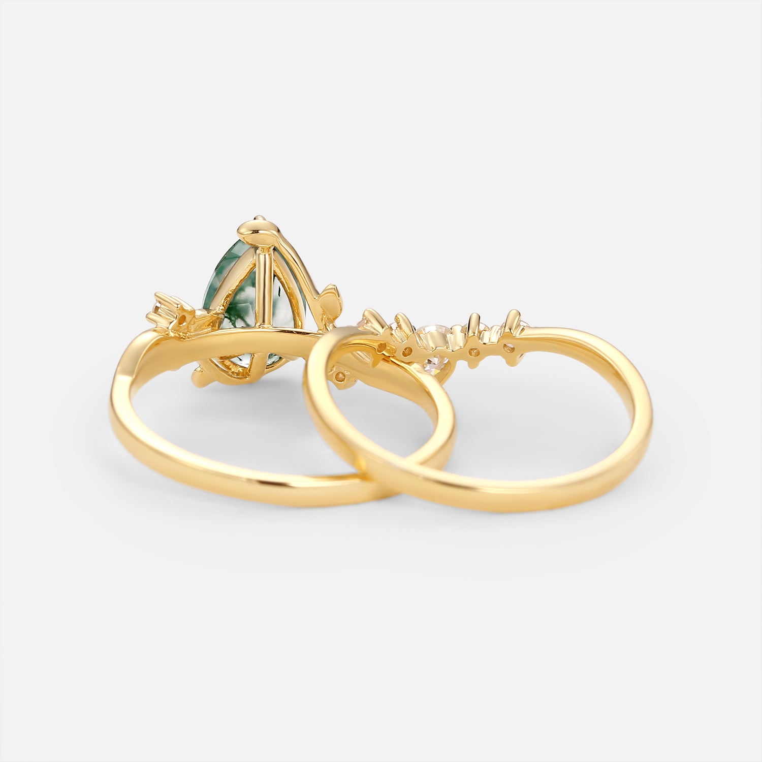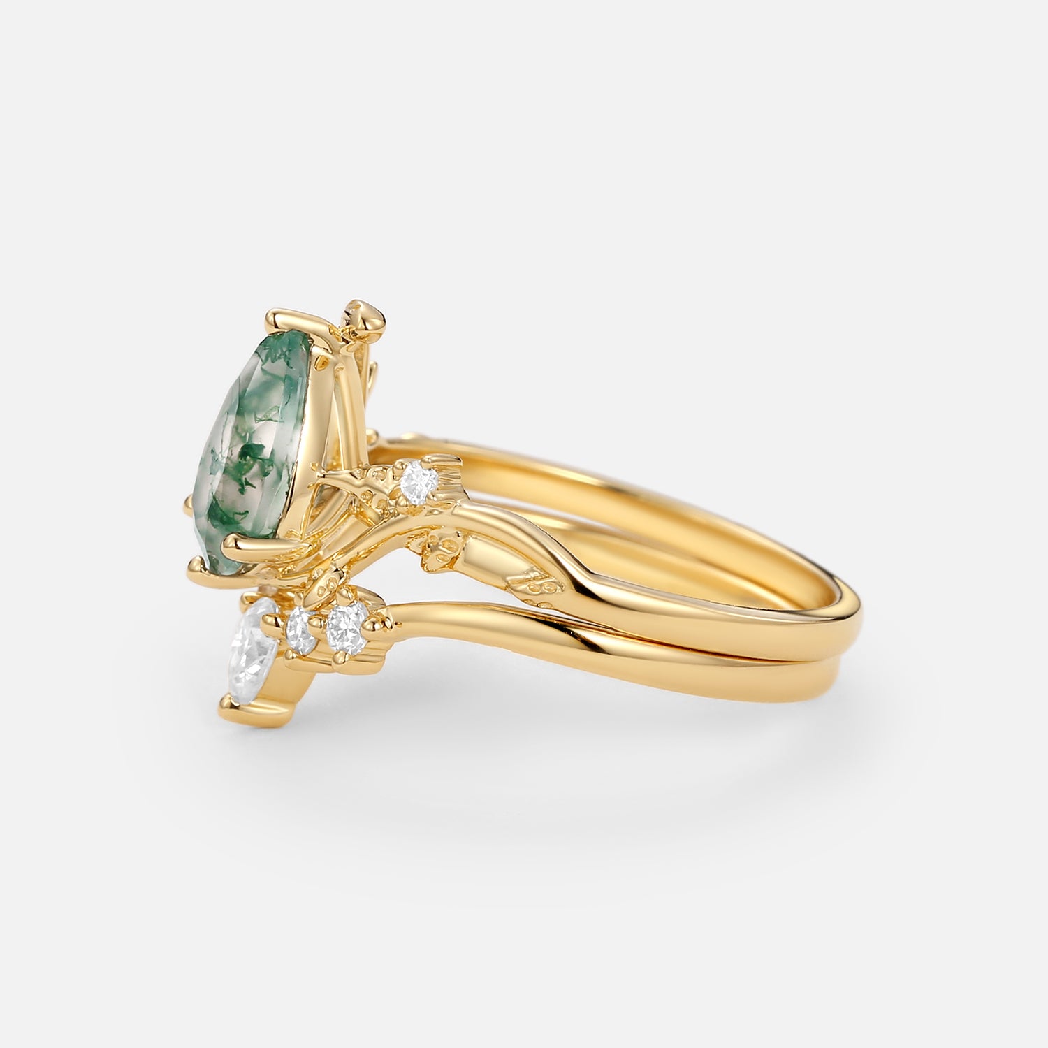 Unique Pear Shaped Moss Agate Leafy Bridal Ring Sets 2pcs - Willow