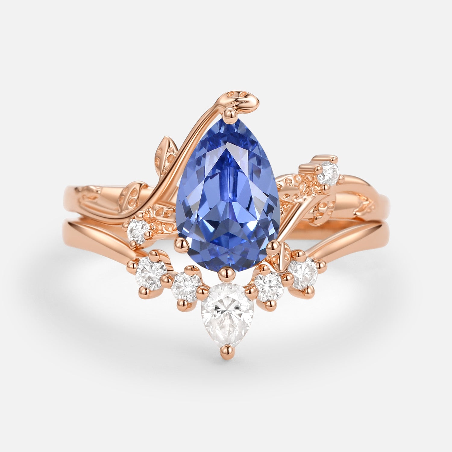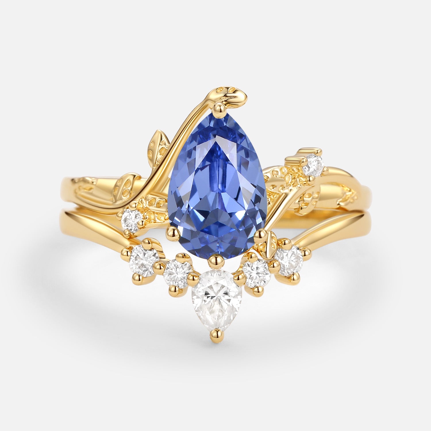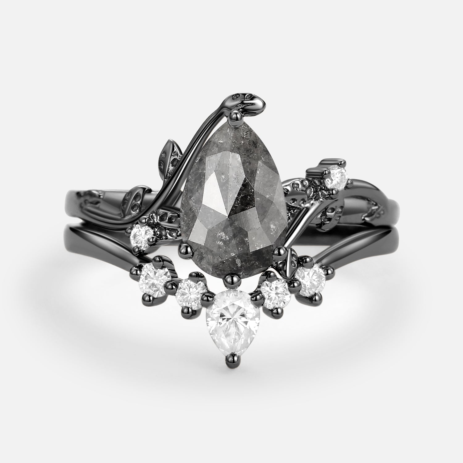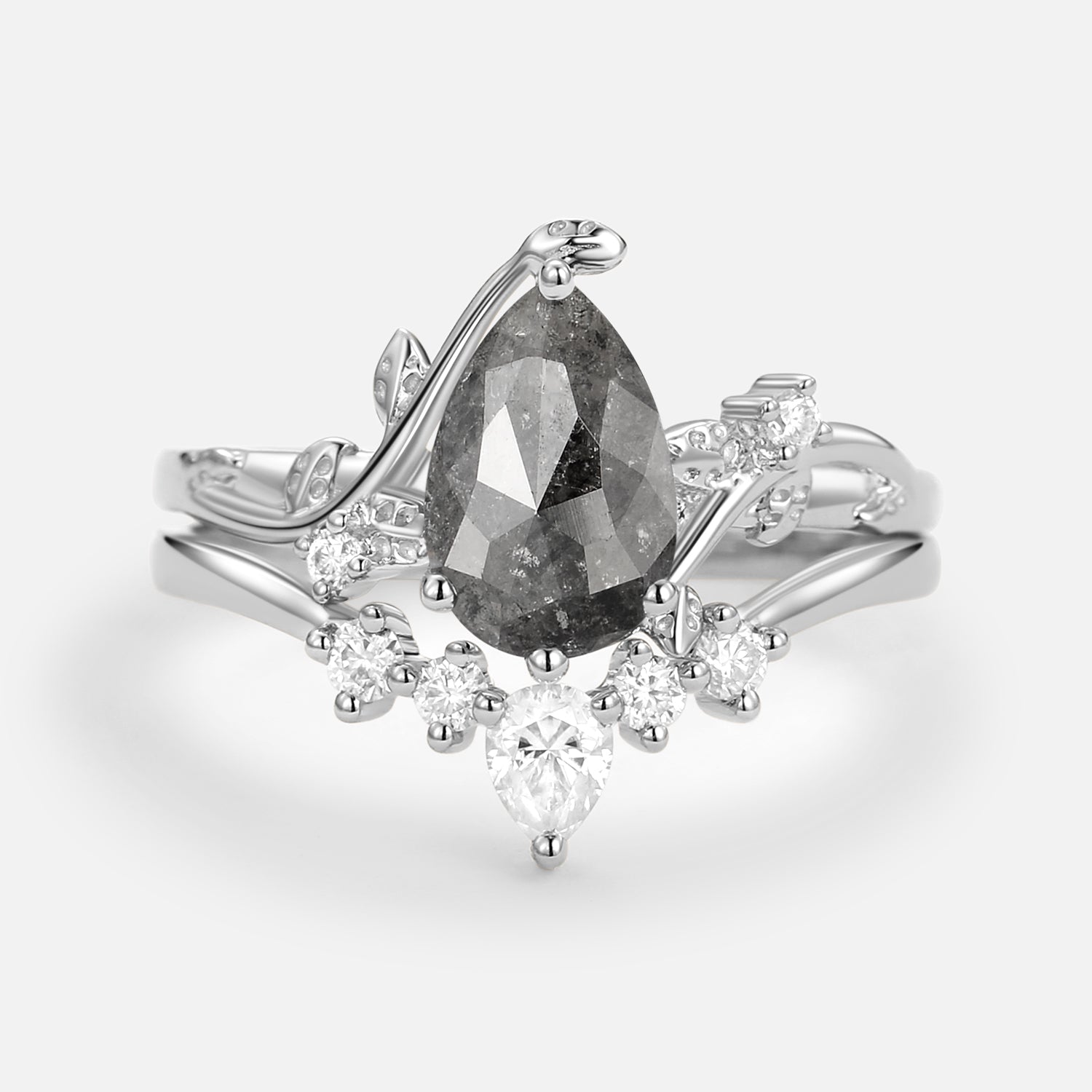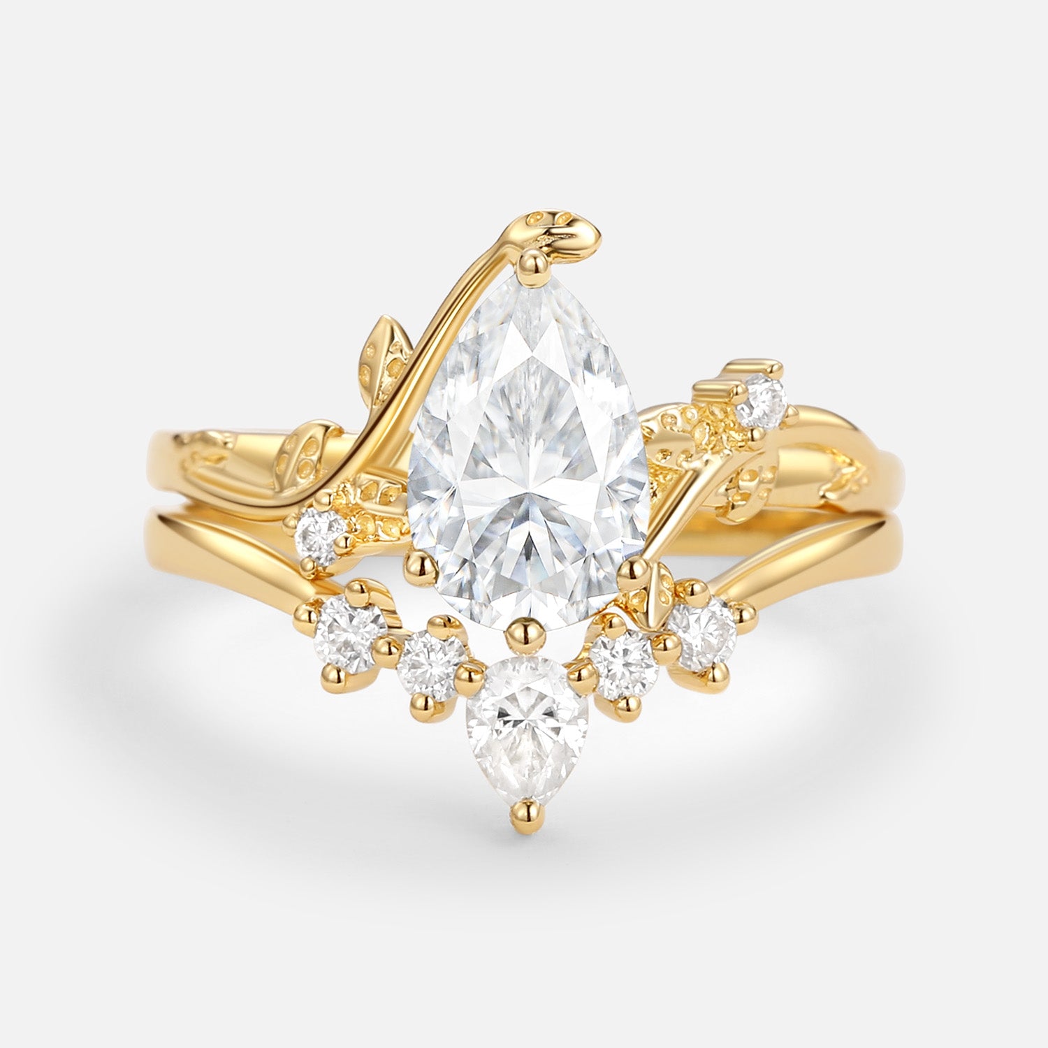 Unique Pear Shaped Moss Agate Leafy Bridal Ring Sets 2pcs - Willow